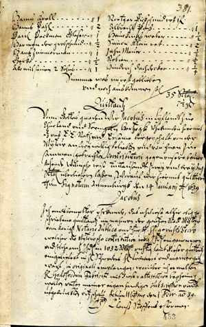 Duke William had borrowed money from residents of Libau/ Liepāja Wilhelm Farenhorst, Hans Stahlhut, Werner Frobese, Thomas Böring, Adolf Brass and Wilhelm Schwarz. The total debt was 4750 thalers in Hungarian guilders, state thalers, reales, silver groats and other coins. The duke promises to return the money during the coming winter, either in cash or in rye. However, the debt would only be paid by Duke James in 1643.