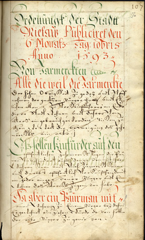 10. Public order or police regulations of Mitau/Jelgava town. Proclaimed 10 December 1593. Excerpt. LVVA, Collection 640, Inventory 3, File 627.