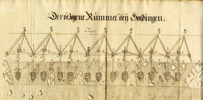 Although according to legend ‘catching fish in the air’ was invented by Duke James, this fishing method is presumably much older. According to Weigand, the ‘falls fishermen’ retrieved the fish that had fallen into the baskets three times a day and took them to the manor. About 80100 salmon and vimba bream could be caught in 24 hours. The German and Latvian pastors each were to receive 30 vimba bream from the first catch. The teacher was entitled to 15 fish, the sexton was to get 5 and each official of the manor was to be given 60 fish. The Dukes of Courland regarded fishing at the Windau/Venta Falls their privilege as rulers, i.e. a monopoly.