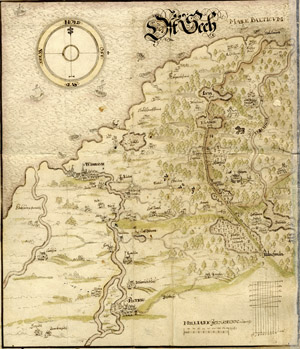 20. Windau/Ventspils and the surrounding area. Detail of a plan to regulate the boundaries of the manors of Pussen/Puze, Popen/Pope and Rothof/Ventspils muiža, drawn by the duke's surveyor T. Krause. 9 May 1640. LVVA, Collection 1100, Inventory 1, File 70.