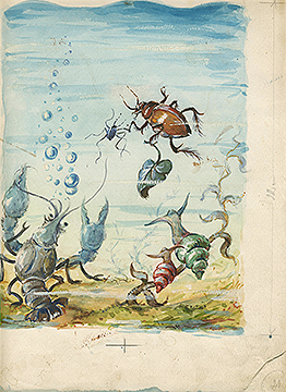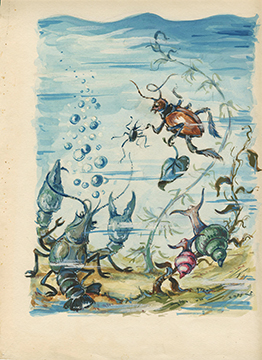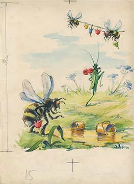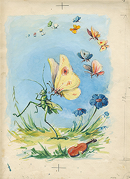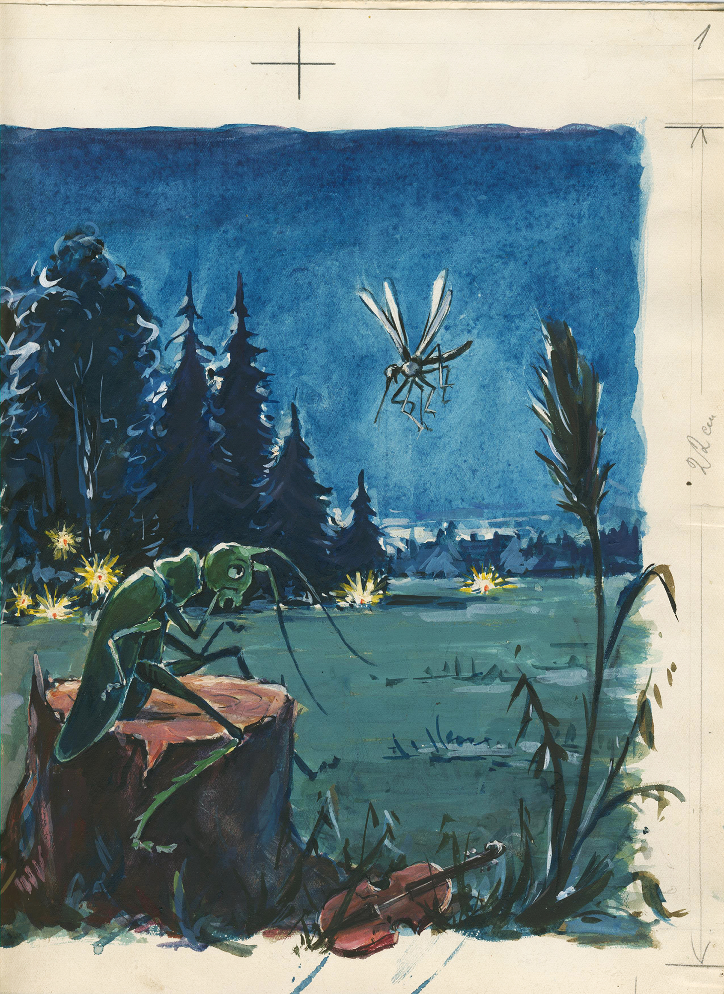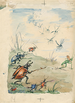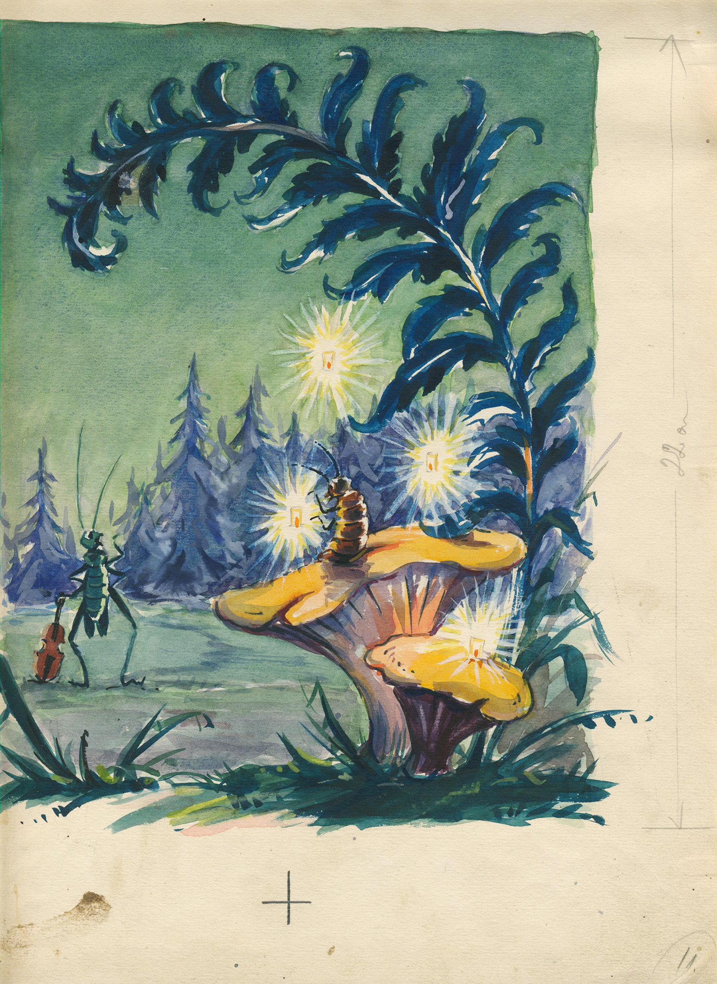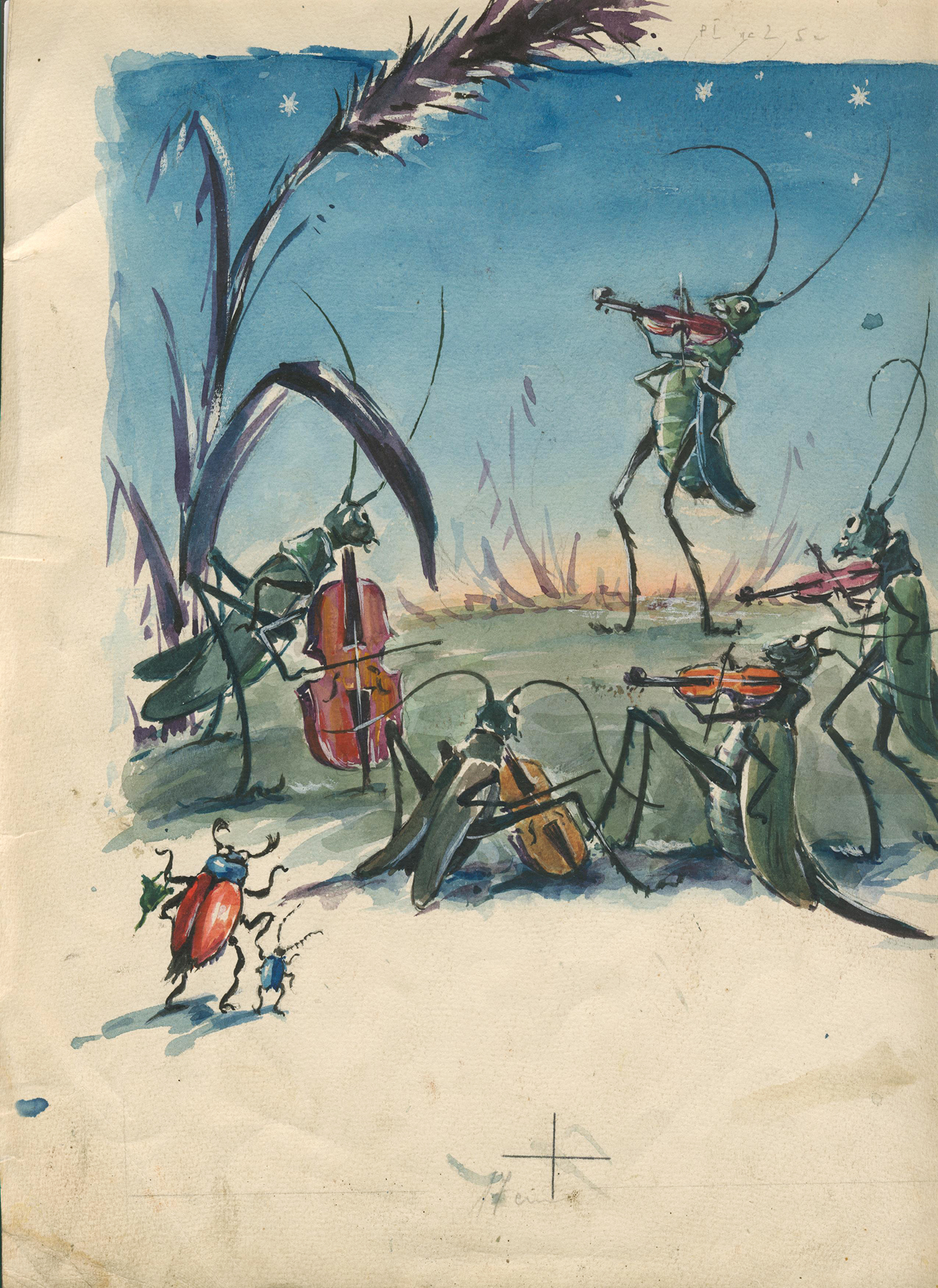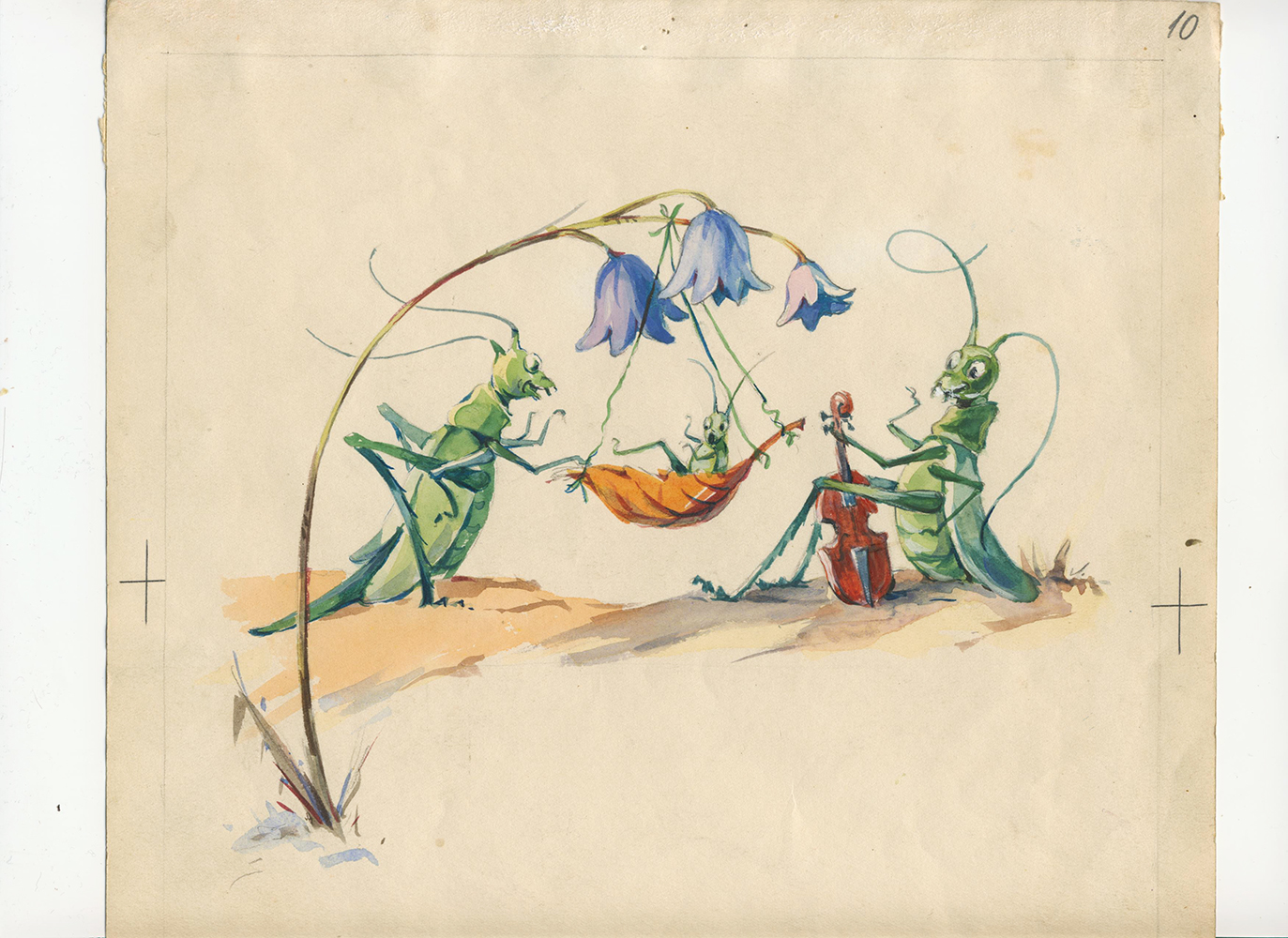 Publicējam nedaudzus M. Stārastes ilustrāciju oriģinālu fragmentus Dz. Rinkules-Zemzares grāmatai "Iedomīgais sienāzis", kas tapuši 1954. gadā akvareļa tehnikā. Minēto fondu dokumenti ir Latvijas Nacionālā arhīva dokumentārais mantojums, kas turpina priecēt ikvienu, kas to aplūko.