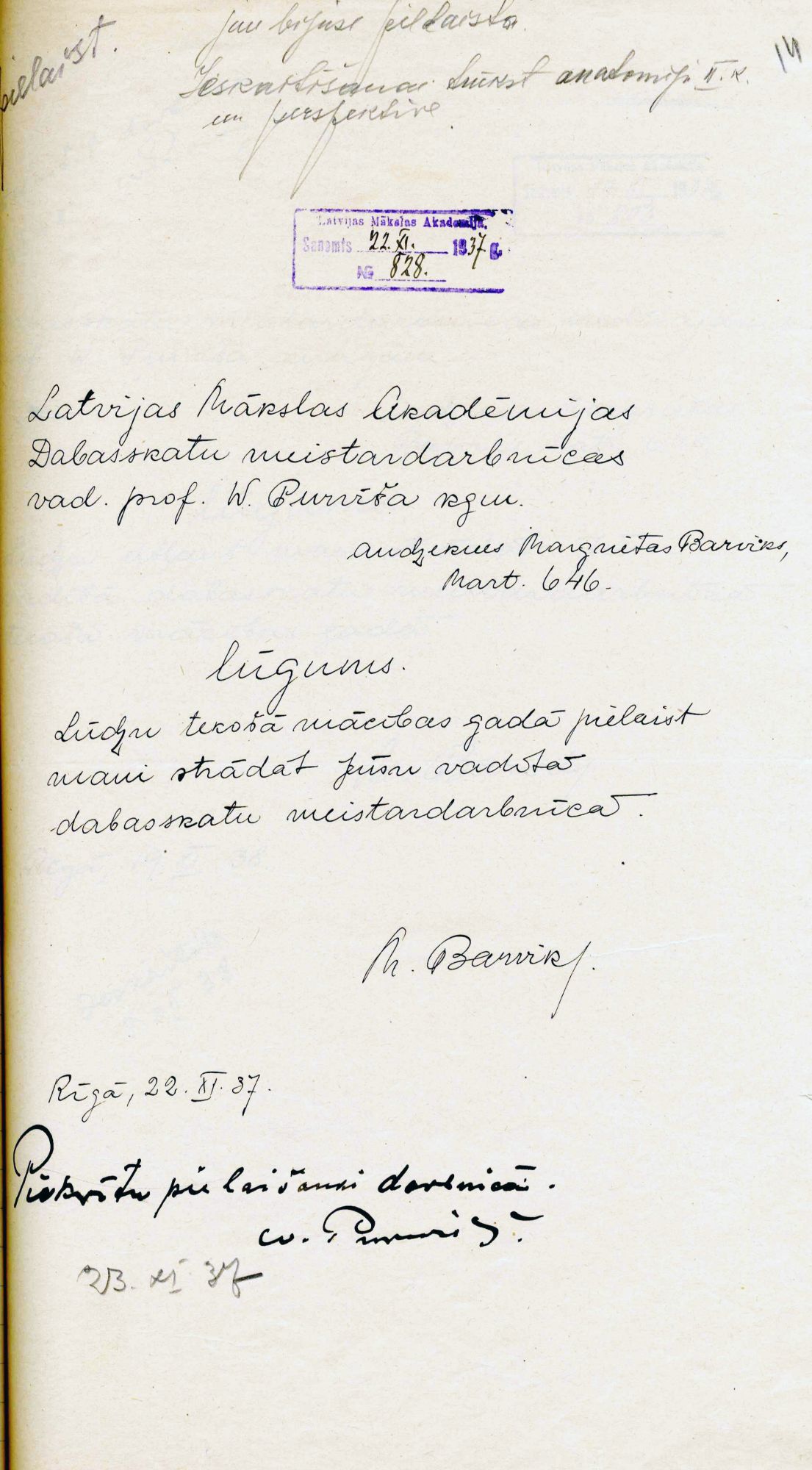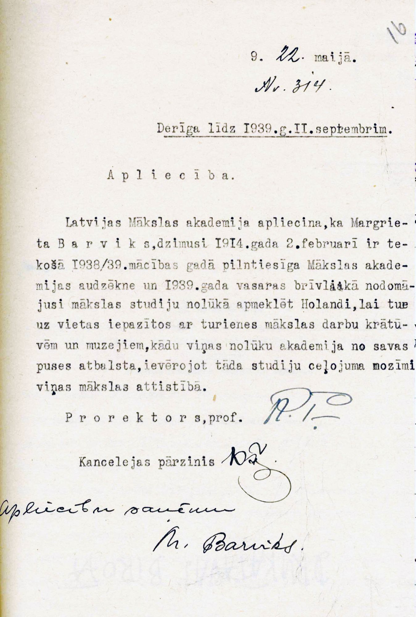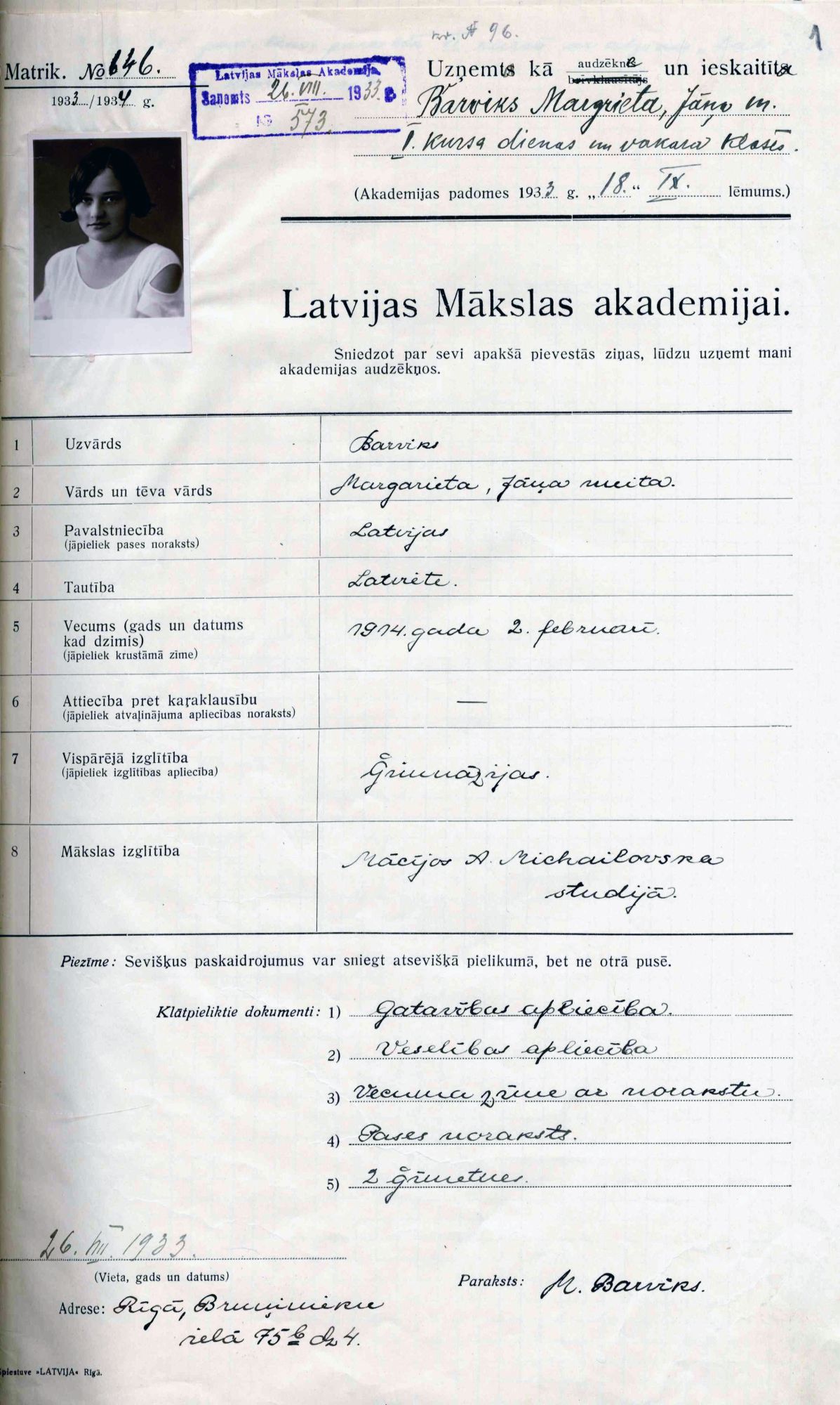 Latvijas Valsts arhīvā Latvijas Mākslas akadēmijas fondā glabājas LMA studentes Barviks (prec. Stāraste) Margrietas personas lieta (485. f., 1. apr., 52. l.), kurā atrodams Margrietas Barviks iesniegums uzņemt LMA un notariāli apstiprinātie dokumentu noraksti, izraksti, arī notariāli apstiprinātais izraksts no Vladimiras Sv. Jāņa evaņģēliski luteriskajā baznīcā 1914. gadā kristīto saraksta un M. Stārastes studiju gaitas dokumenti.