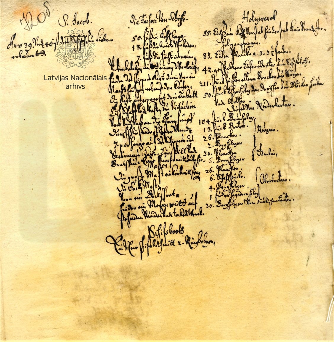 1. Inventories of the first ships built on the order of Duke James. 1639, 1640. LVVA, collection 554, inventory 1, file 849, pp. 72, 74.