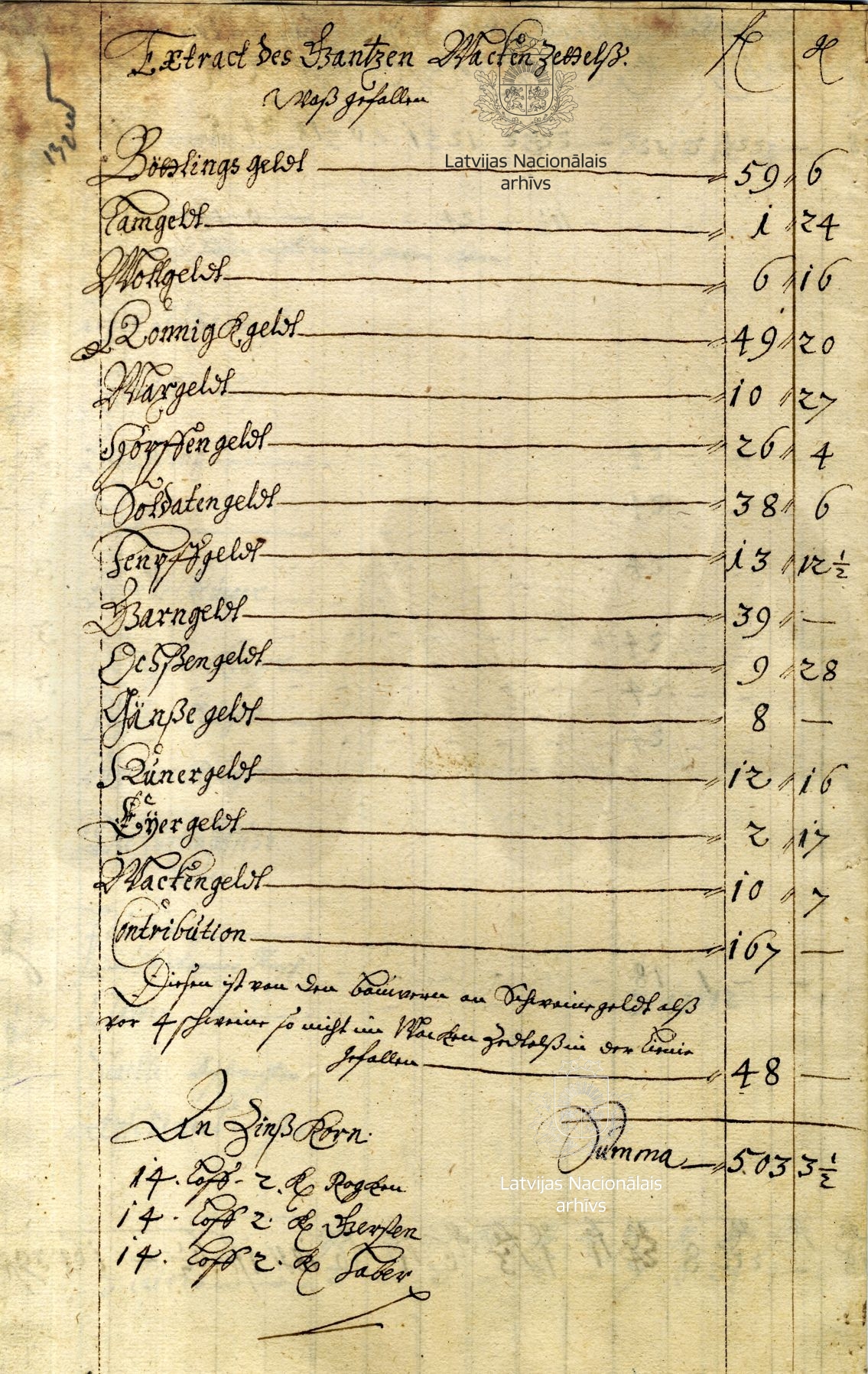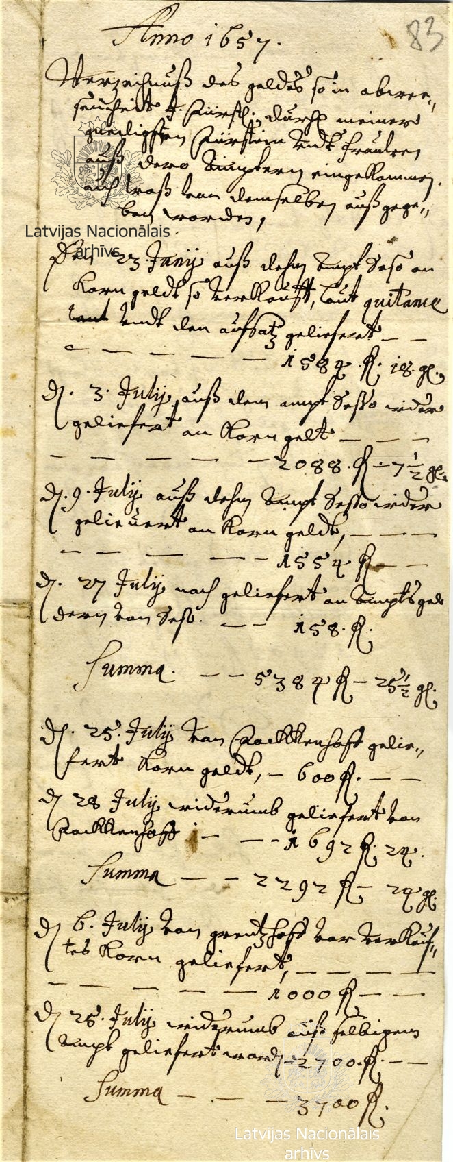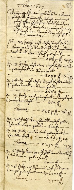 9. Notes on the finances of the duchess. 1657. LVVA, collection 554, inventory 3, file 1456, p. 83.