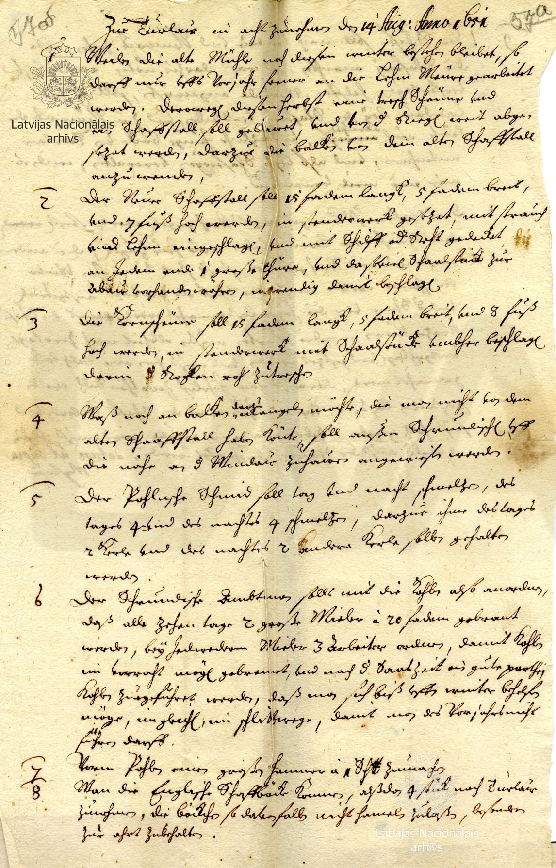 12. Instruction from Duke James to the manager of Turlau/Turlava estate. 14 August 1651. LVVA, collection 554, inventory 3, file 437, p. 57a.
