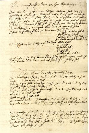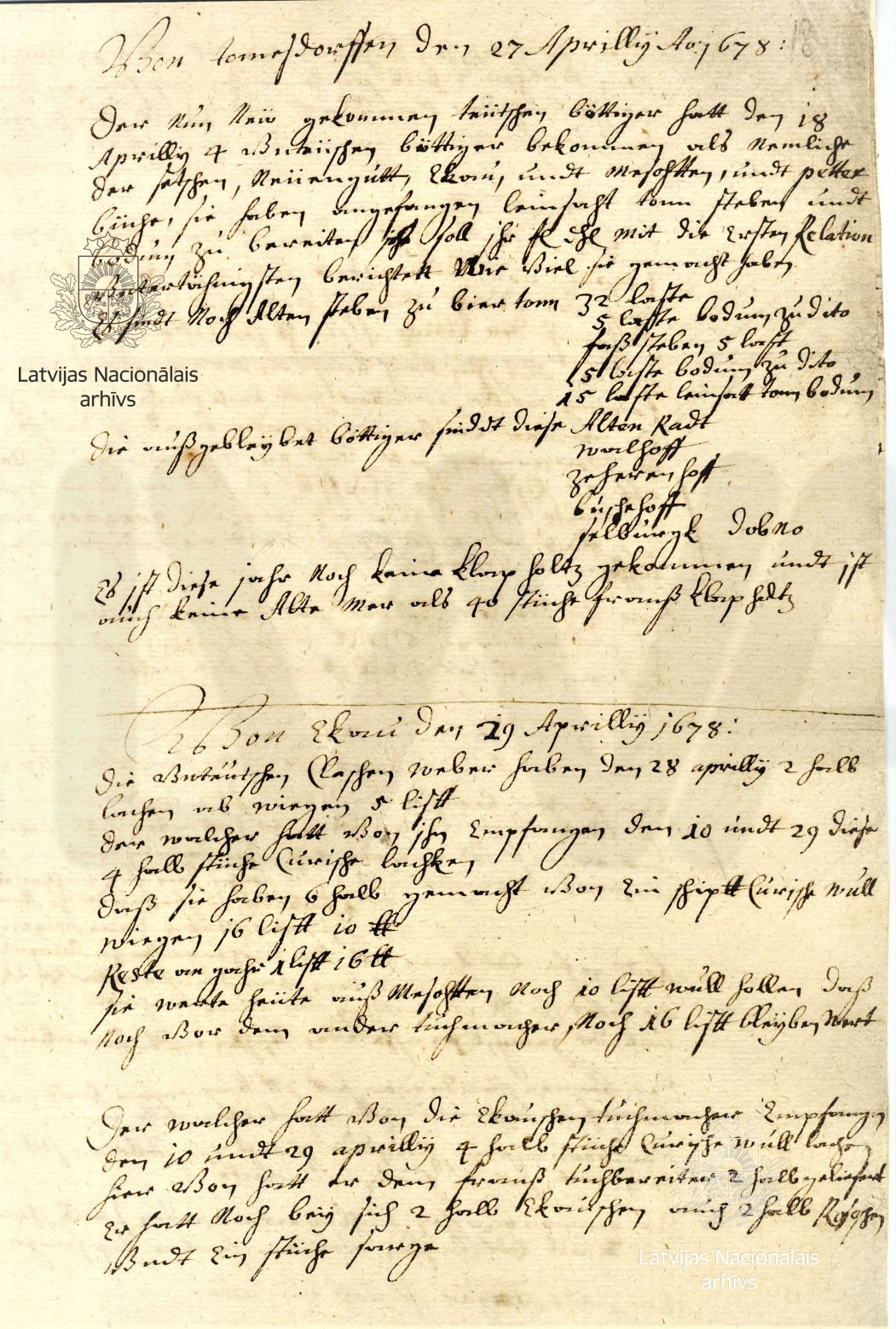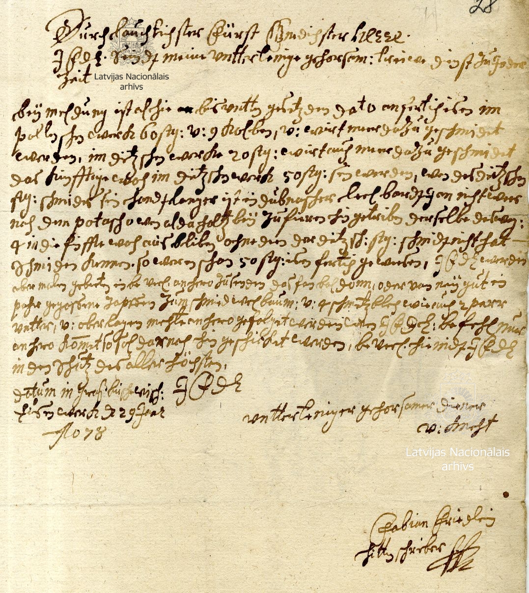 15. Report to the duke from Fabian Friedlein, manager of Grossbuschhof/Birži manufactory. Grossbuschhof/Birži, 29 January 1678. LVVA, collection 554, inventory 3, file 1694, p. 28.