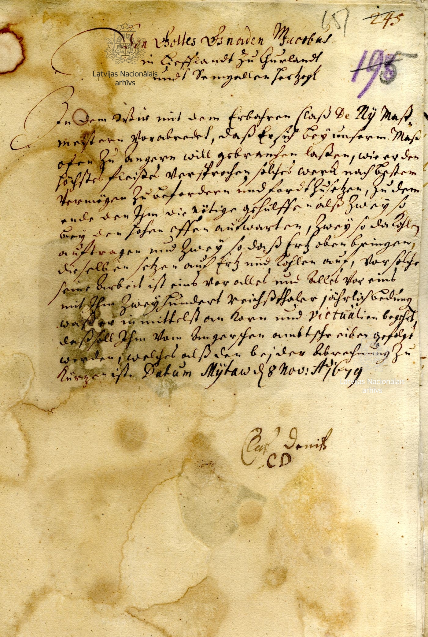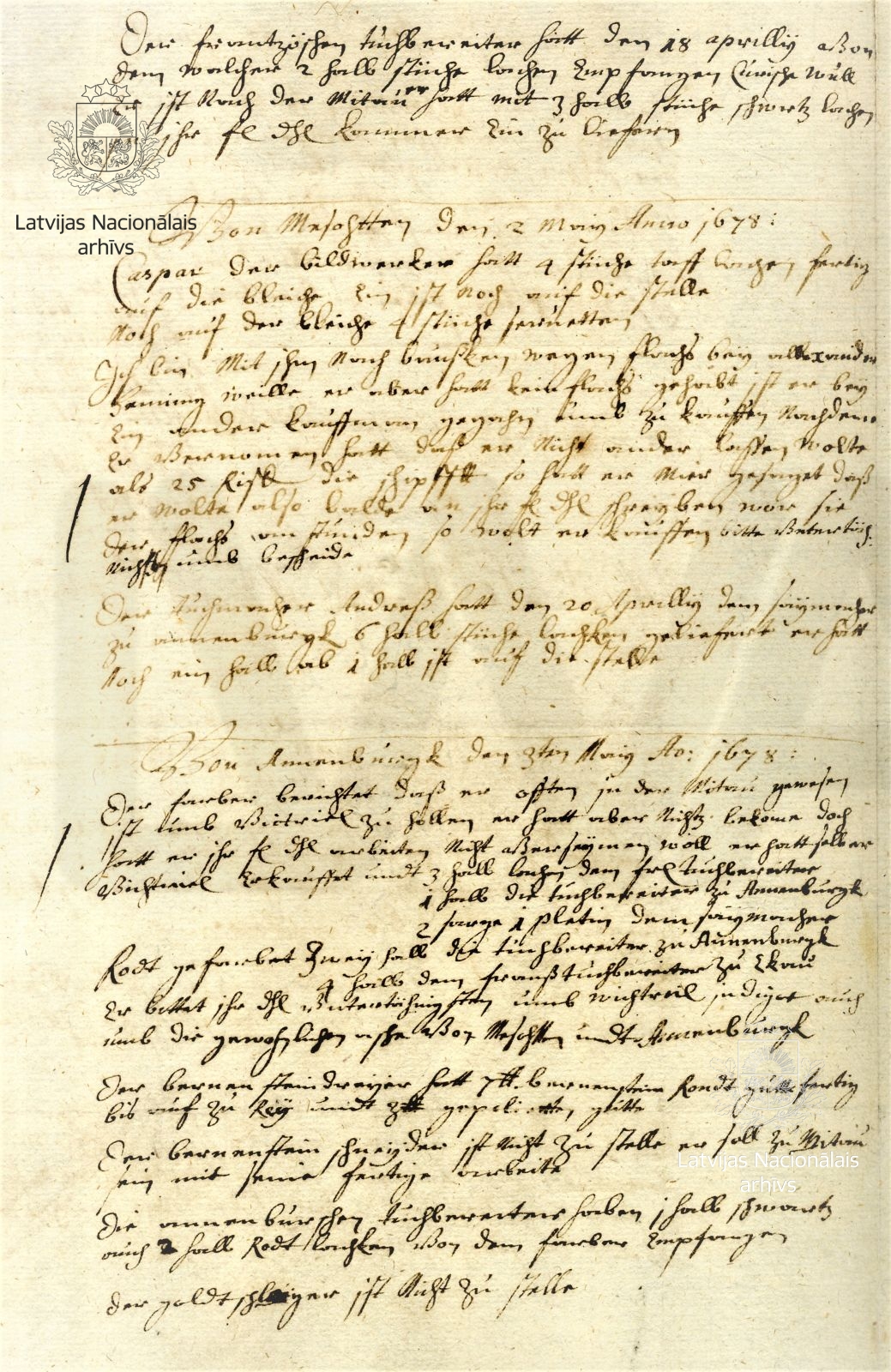 18. Agreement between Duke James and blast furnace master Claß De Ny. Mitau/Jelgava, 8 November 1679. LVVA, collection 554, inventory 1, file 2057, p. 151.