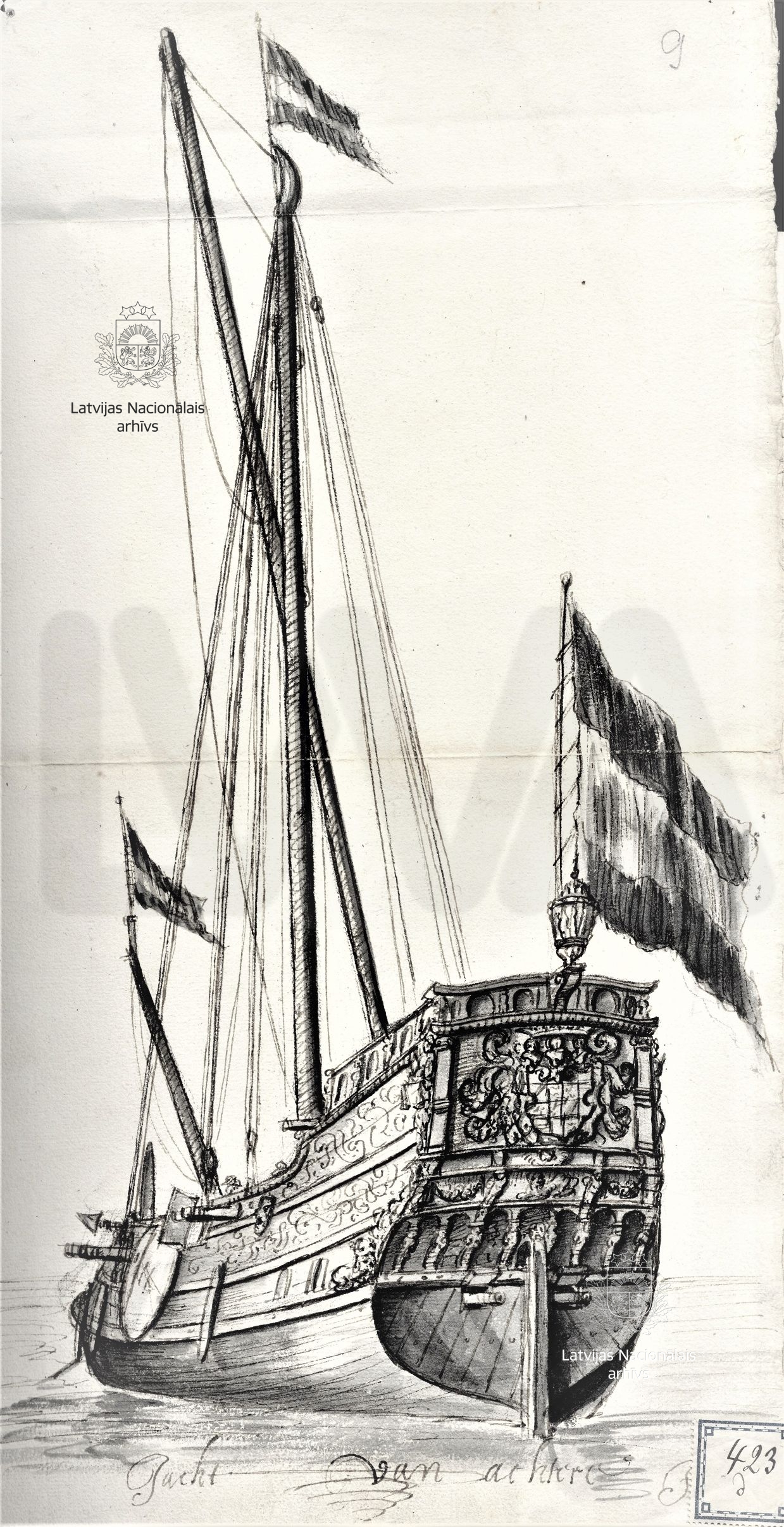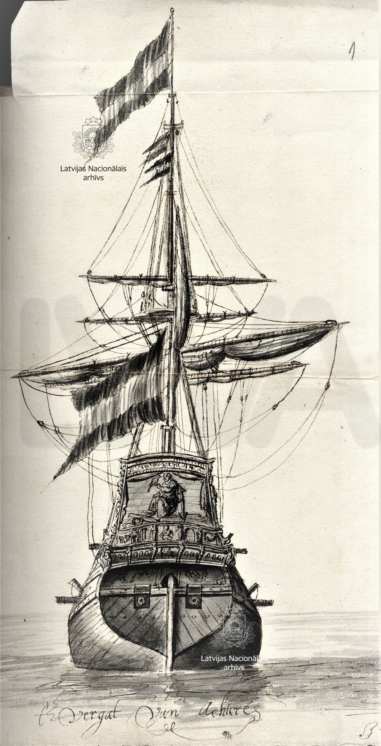 4. Sailing ships in the time of Duke James: a frigate and a yacht. Drawings by Johann Streck. First half of 17th century. LVVA, collection 554, inventory 1, file 850d.