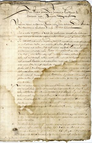 So as to restore the administration of the estates after the ravages of the Polish–Swedish War (1655–1660), Duke James issued a special code for his estate managers. This was based on the codes established in 1636 and 1649 and consisted of 125 articles. Certain of the articles provide a reflection of the realities of that particular time. For example, article 64 prohibited Germans from living in peasant homesteads without the duke’s permission; instead, they were to move to the towns, so that these might develop. In article 71, the duke stipulates that estate managers are not to return peasant fugitives to their previous owners without the duke’s agreement, even though this contradicted a decision of the diet.