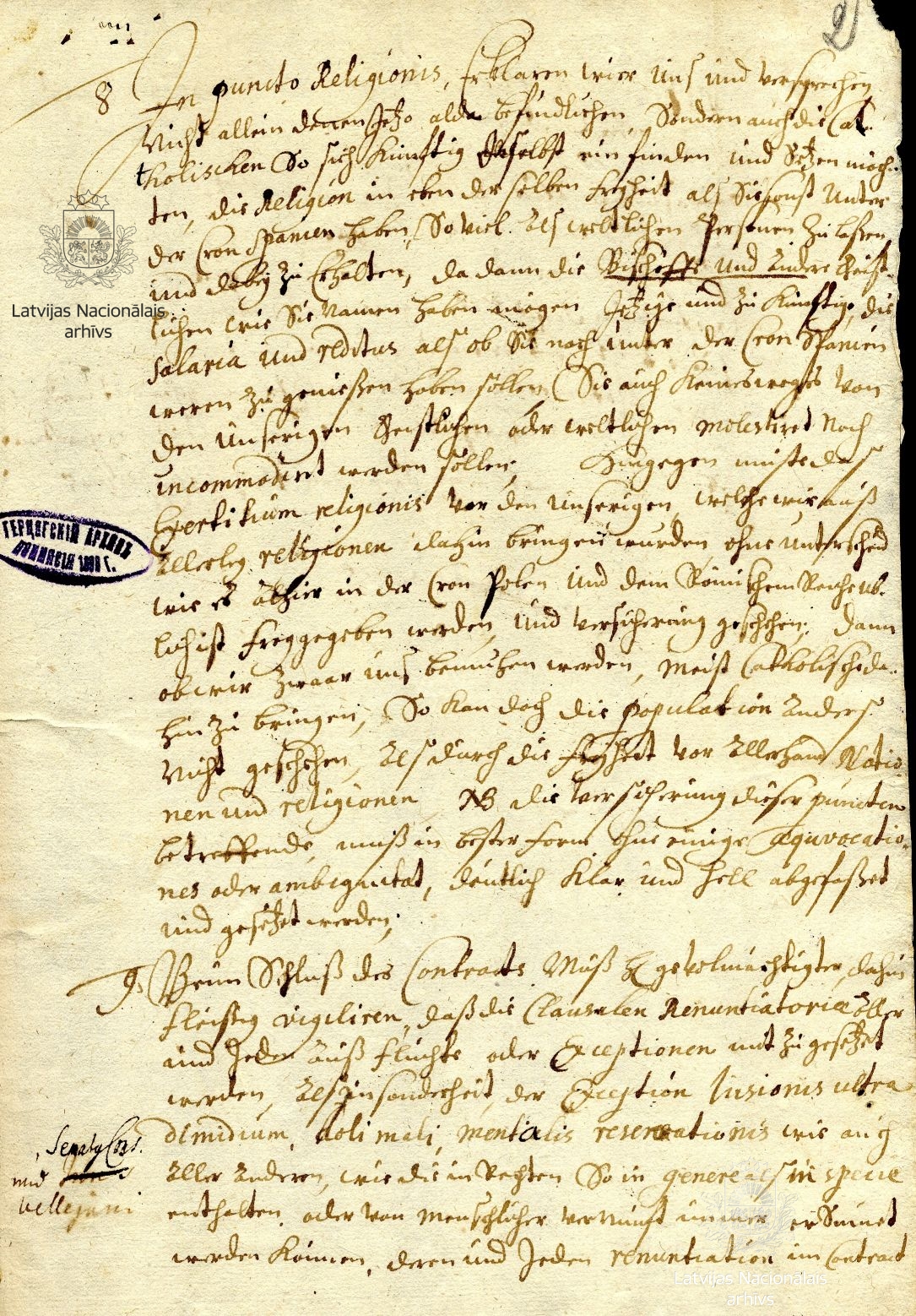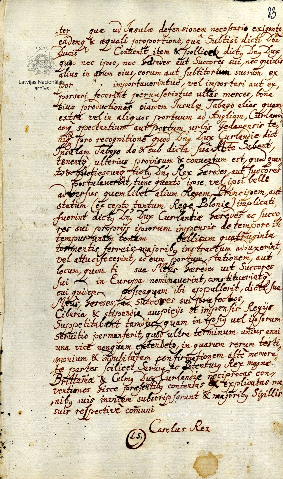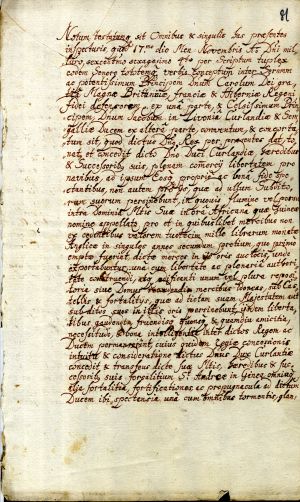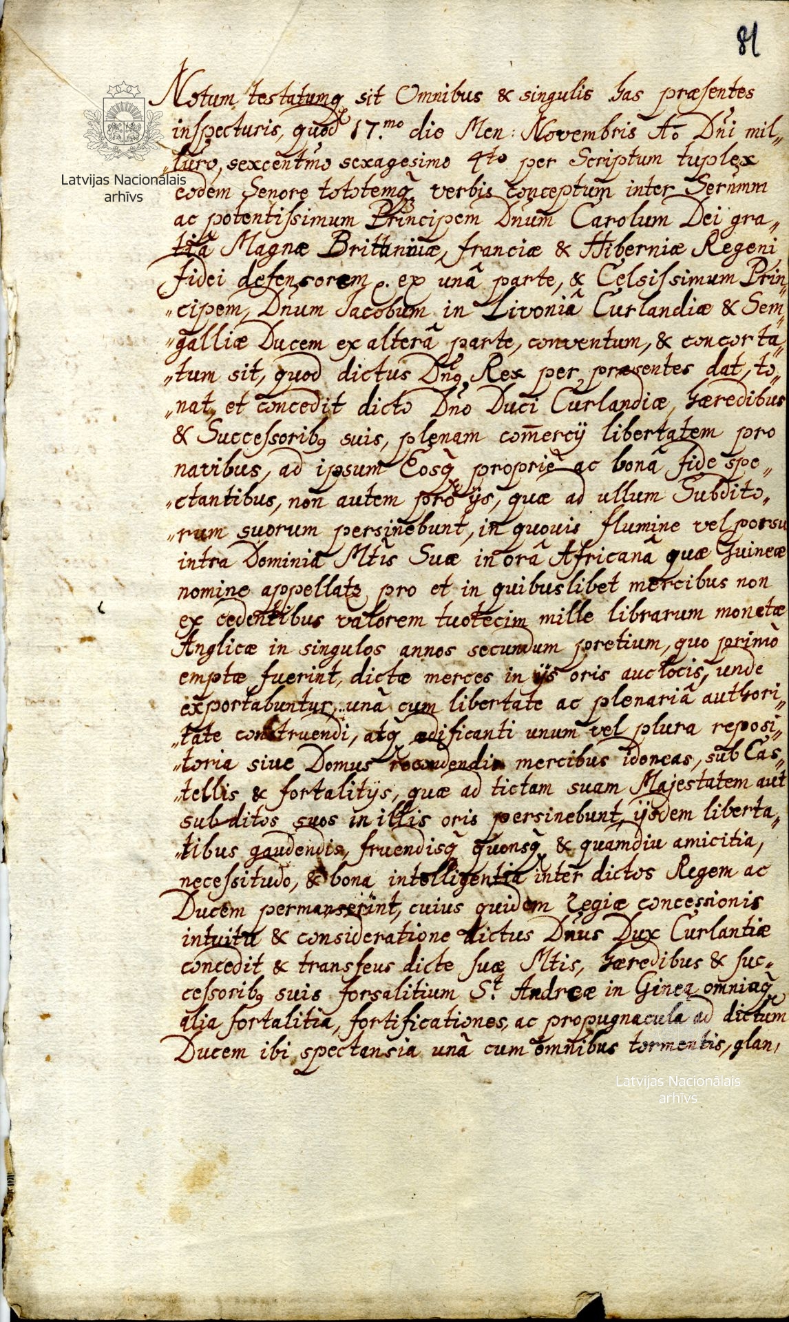 16. Agreement between Duke James and Charles II of England. [London], 17 November 1664 [old style]. Transcript. LVVA, collection 554, inventory 3, file 6, pp. 81, 83.