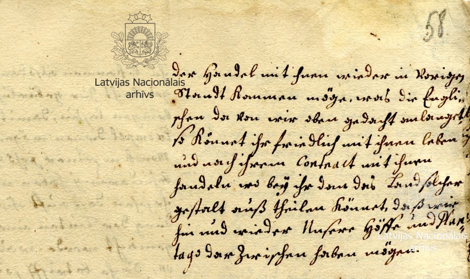 23. Letter from Duke James to Colonel Franz Monck. Mitau/Jelgava, 6 September 1681. Draft. LVVA, collection 554, inventory 3, file 449, pp. 57–58.