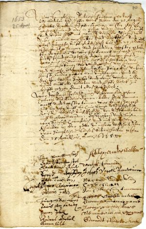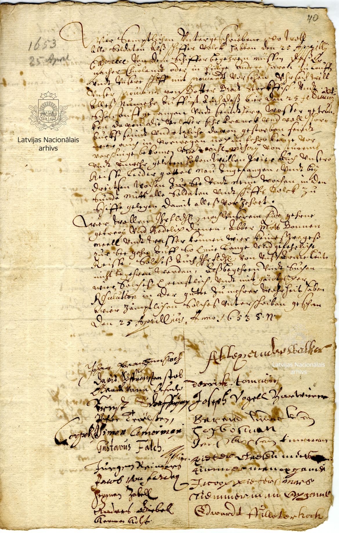 6. Submission to the duke from the crew and soldiers of the ship Patientia. [Faeroe Islands], 25 April 1653. LVVA, collection 554, inventory 2, file 2982, p. 40.