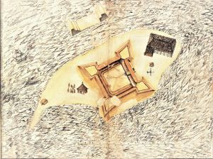 2. Duke James’s fort, which was to be built on St Andrew’s Island in the mouth of the River Gambia. 1651. Ink and watercolour. LVVA, collection 7363, inventory 3, file 111, p. 553.