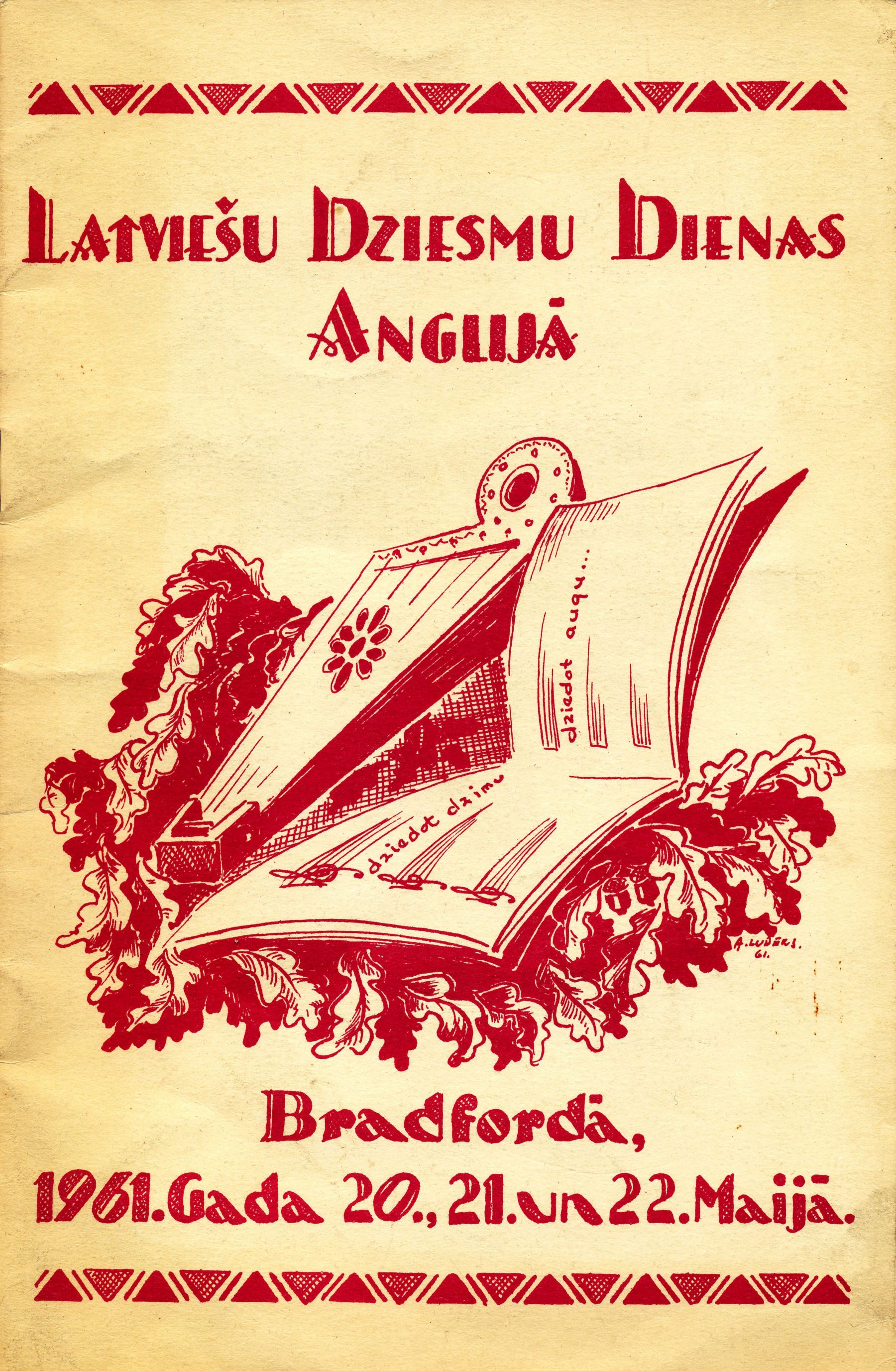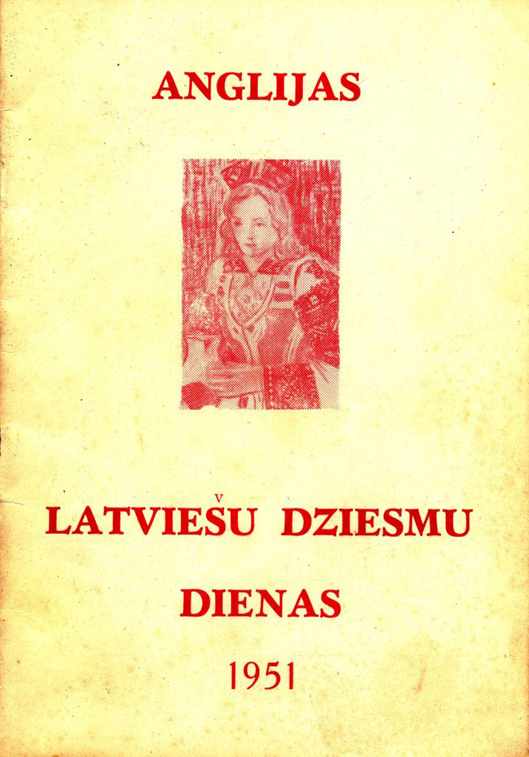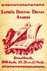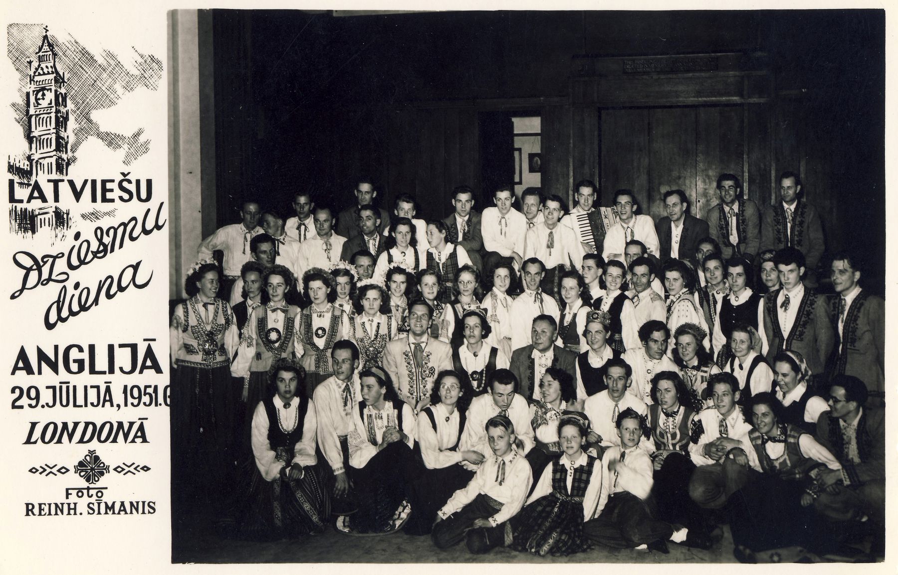 The most significant were the 1951 London Song Days, which were included in the Festival of Britain programme and saw the joint choir consisting of about 400 singers from mixed and men’s choirs performing at the Royal Albert Hall in front of an audience of 5000 people. In preparation for the event, the action committee announced a competition of new choir and solo songs, in which pieces by Tālivaldis Ķeniņš, Jānis Norvilis and Alberts Jērums were awarded and chosen to be performed at the festival. The Song Days featured celebratory services, an exhibition of Valdemārs Tone’s paintings at the Kensington Art Gallery, two theatre plays, folk costume competition, basketball games between French and English Latvians, etc.