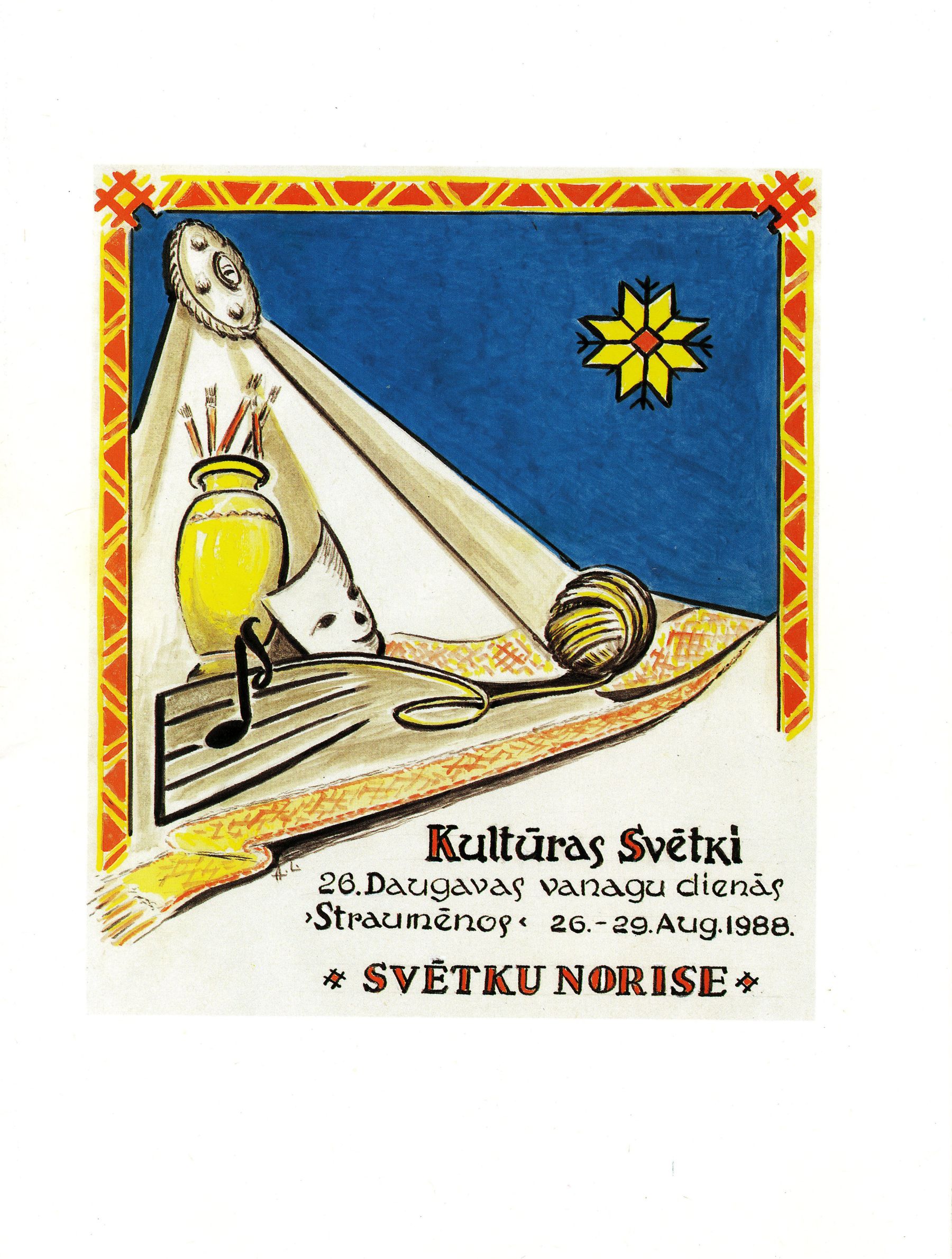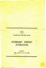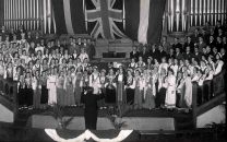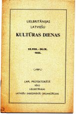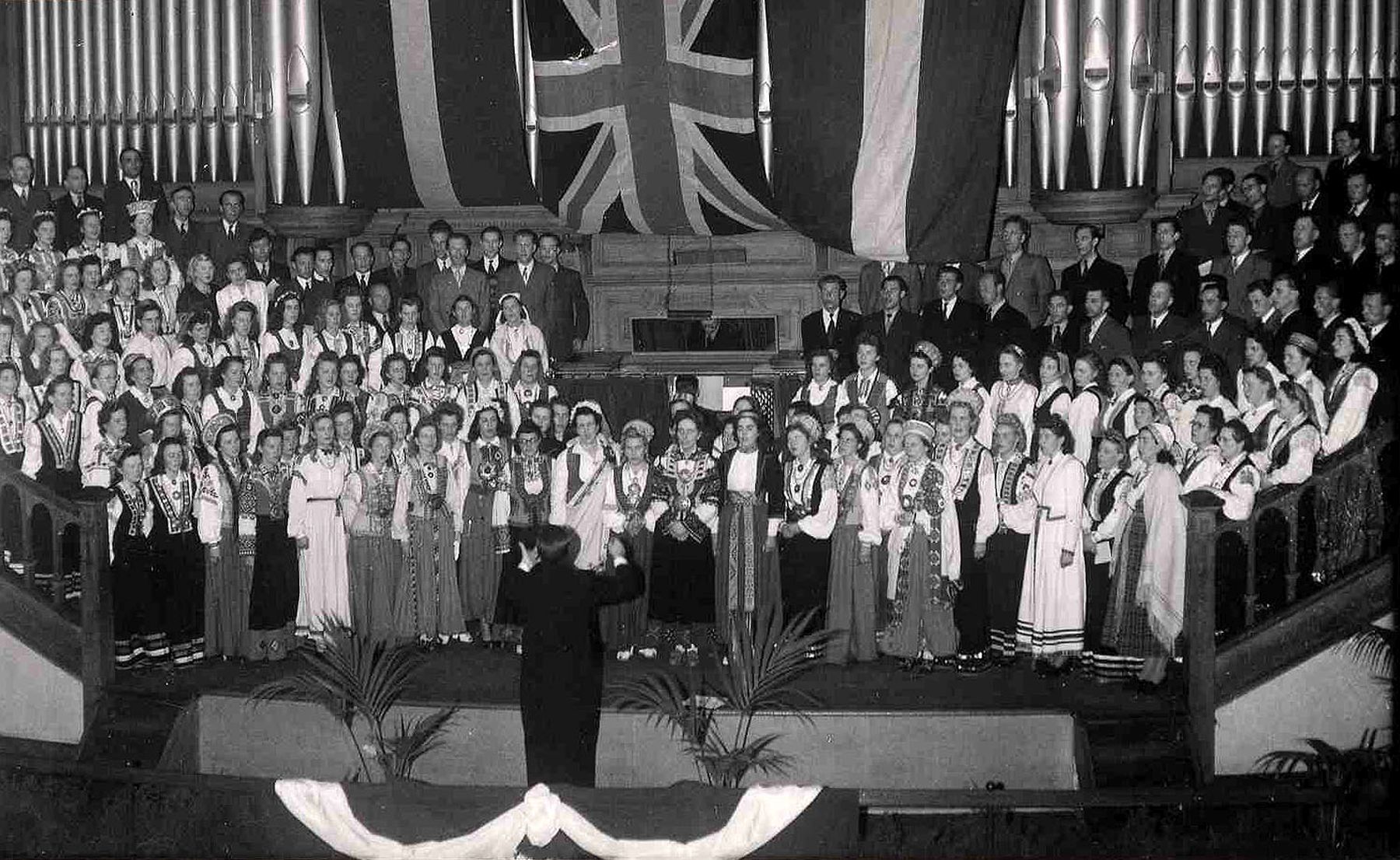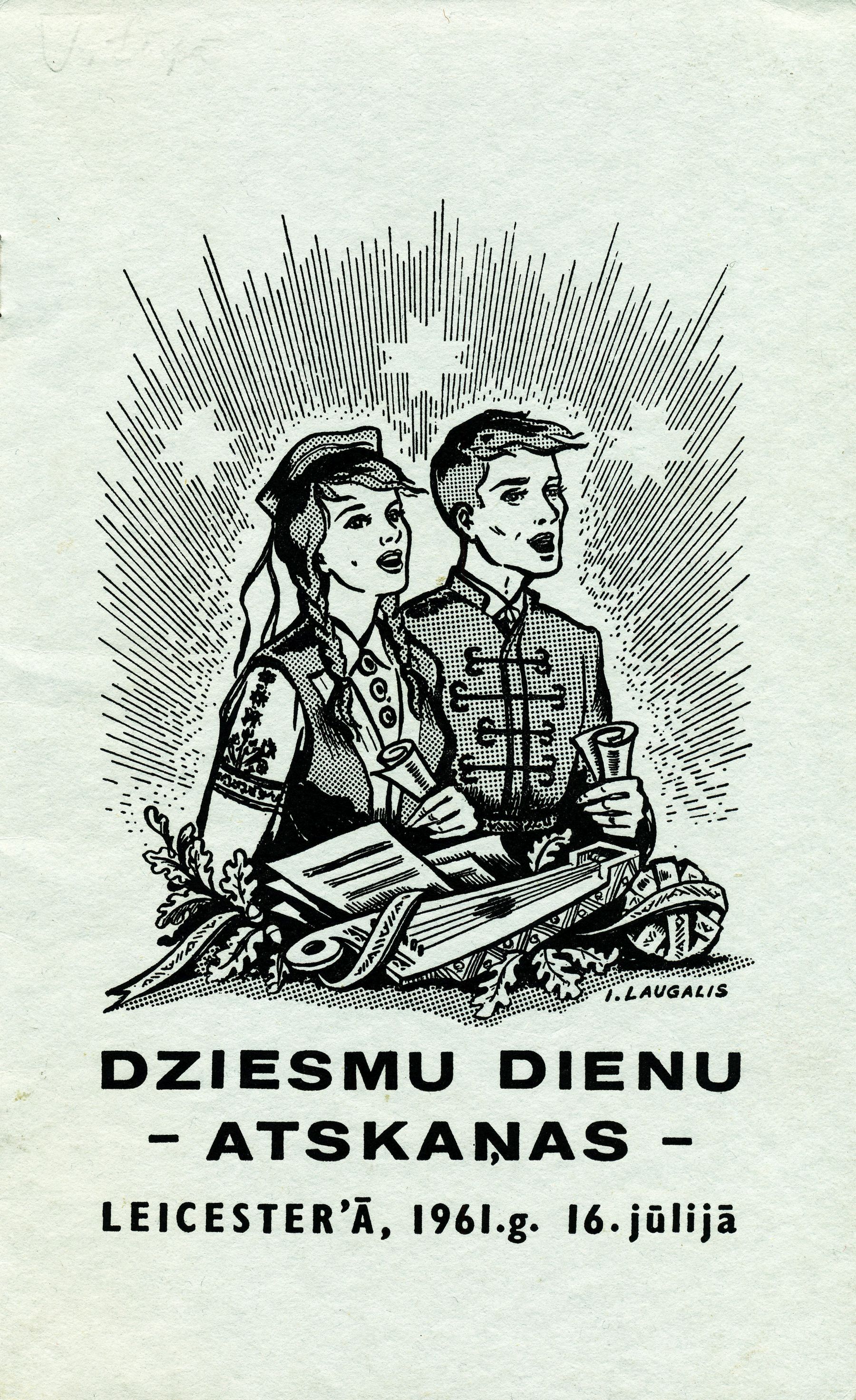 The most significant were the 1951 London Song Days, which were included in the Festival of Britain programme and saw the joint choir consisting of about 400 singers from mixed and men’s choirs performing at the Royal Albert Hall in front of an audience of 5000 people. In preparation for the event, the action committee announced a competition of new choir and solo songs, in which pieces by Tālivaldis Ķeniņš, Jānis Norvilis and Alberts Jērums were awarded and chosen to be performed at the festival. The Song Days featured celebratory services, an exhibition of Valdemārs Tone’s paintings at the Kensington Art Gallery, two theatre plays, folk costume competition, basketball games between French and English Latvians, etc.