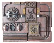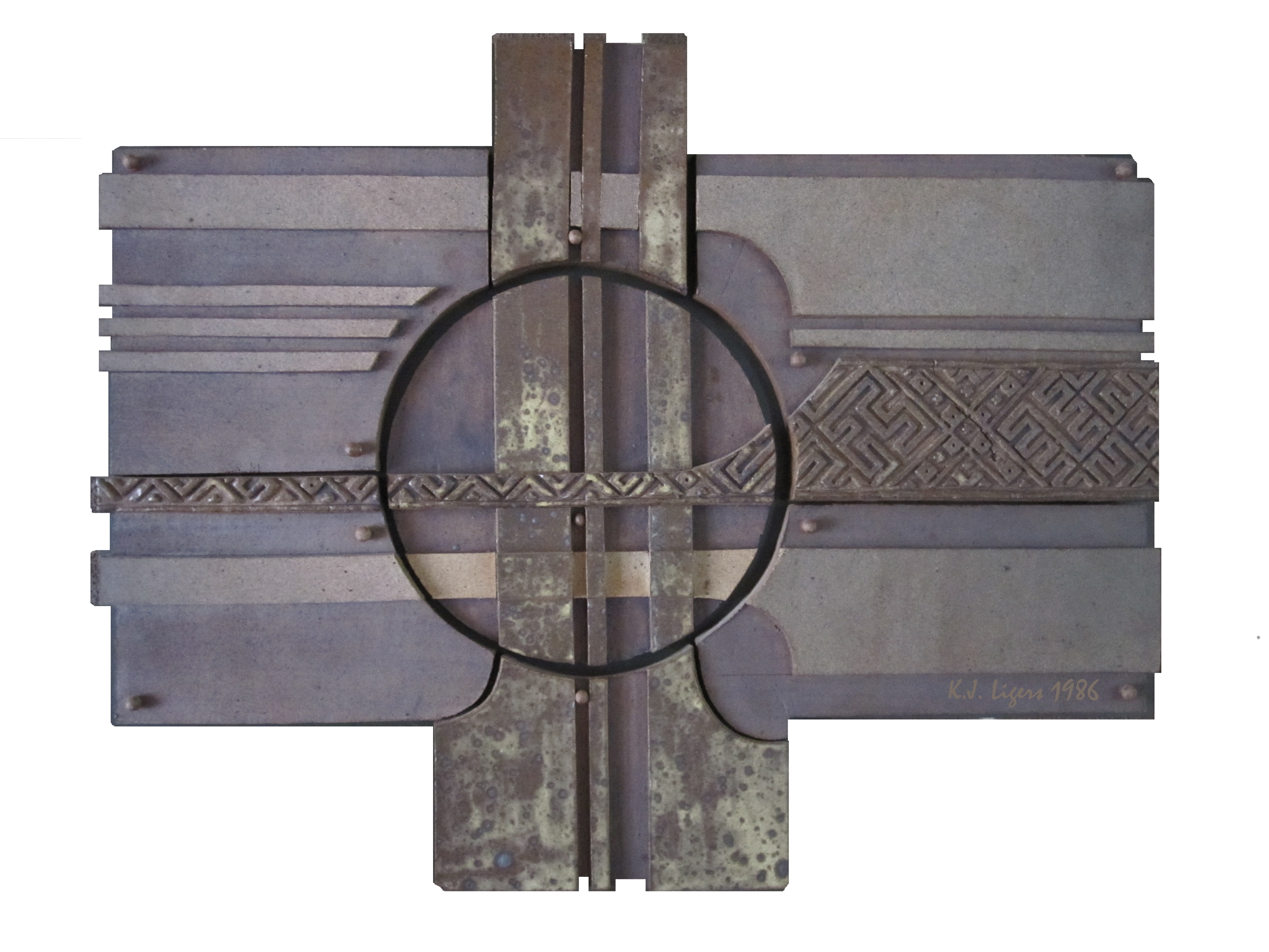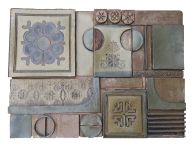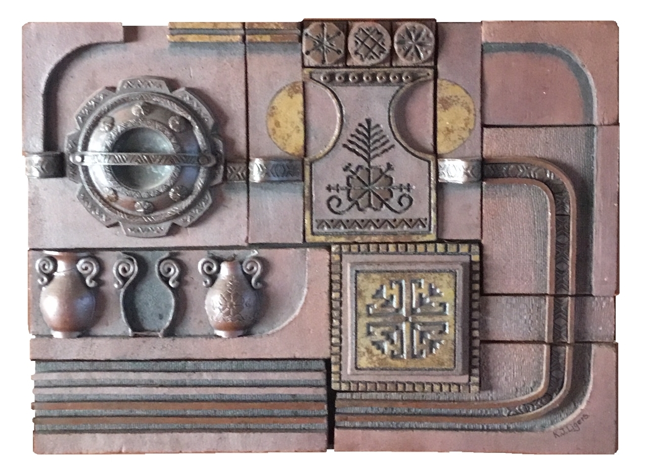 Painter and graphic artist Laimonis Mieriņš (1929-2011), as well as graphic artist Māra Sarkans (wife of Vitalijs Sarkans), who came from Australia, were active during the mentioned period. Her expressive drawings and abstract compositions were bold and convincing. Architect Krišs Ligers showed new interpretations of ceramics. His works can be characterized by clarity of form, simplified arrangement of planes, reminiscent of architectural objects. K. Ligers uses ornaments familiar to Latvians in larger-format stone mass works, which in total form a well-thought-out story about eternal values. Andrejs Rītiņš, who works in various fields of art, should also be mentioned here.