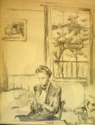 After imigrating, the painter Kārlis Grūbe started working at Drayton Parslow Hostel as an interpreter. He was engaged in painting only in his free time.
