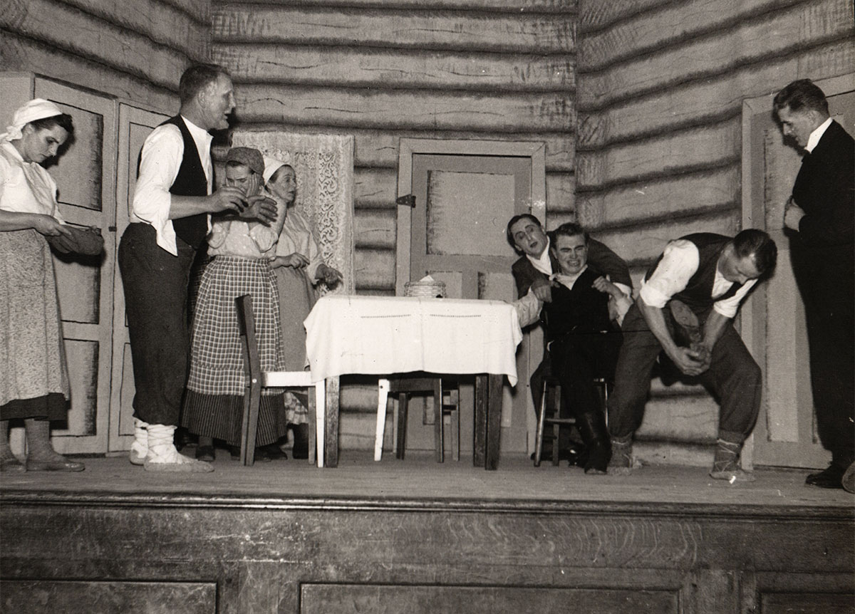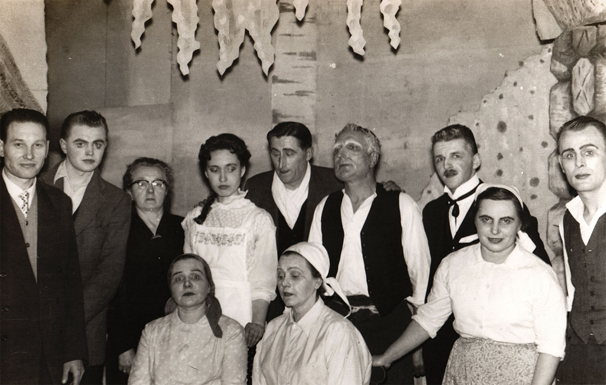 Pirmā teātra kopa nodibināta LBL paspārnē 1948. gadā. Pirmā izrāde – E. Zālītes lugas “Bīstamais vecums” iestudējums ‒ notika 1949. gada 26. martā. Lugu iestudēja Zelma Štūlmane. Ar šo izrādi kopa piedalījās pirmajās latviešu dziesmu dienās Londonā 1949. gadā. Viens no vērienīgākajiem iestudējumiem bija R. Blaumaņa “Skroderdienas Silmačos”, pirmizrāde notika 1951. gada 24. februārī.