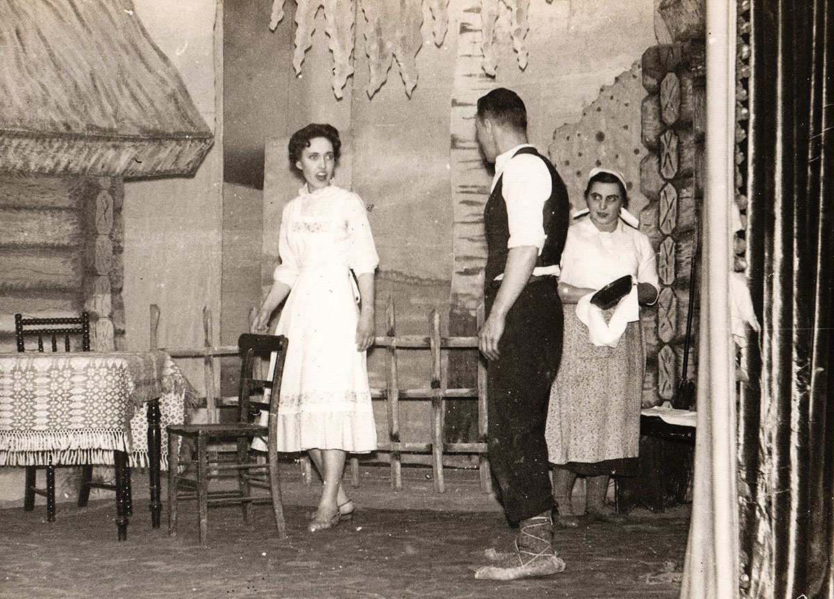 Pirmā teātra kopa nodibināta LBL paspārnē 1948. gadā. Pirmā izrāde – E. Zālītes lugas “Bīstamais vecums” iestudējums ‒ notika 1949. gada 26. martā. Lugu iestudēja Zelma Štūlmane. Ar šo izrādi kopa piedalījās pirmajās latviešu dziesmu dienās Londonā 1949. gadā. Viens no vērienīgākajiem iestudējumiem bija R. Blaumaņa “Skroderdienas Silmačos”, pirmizrāde notika 1951. gada 24. februārī.
