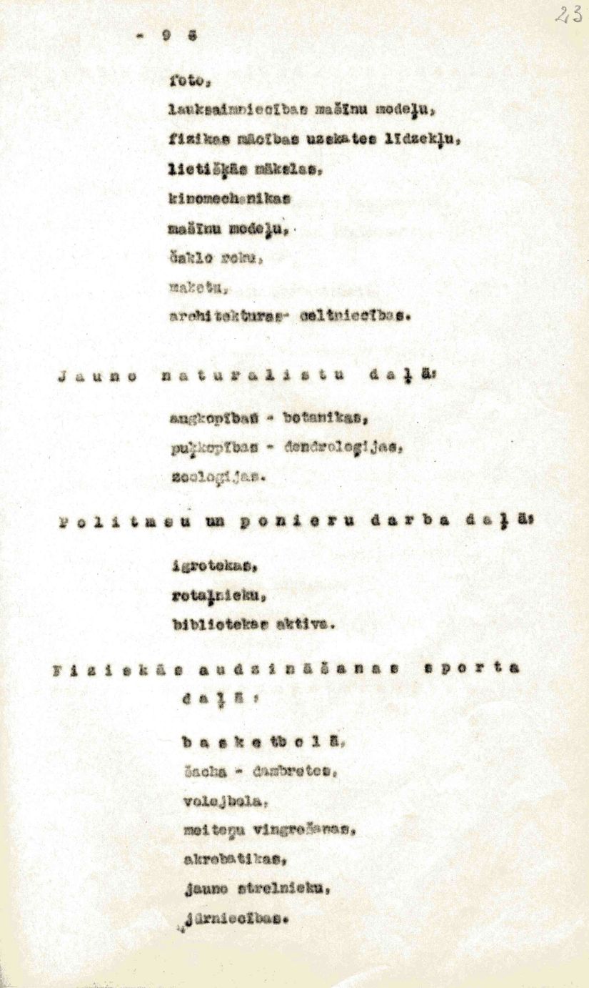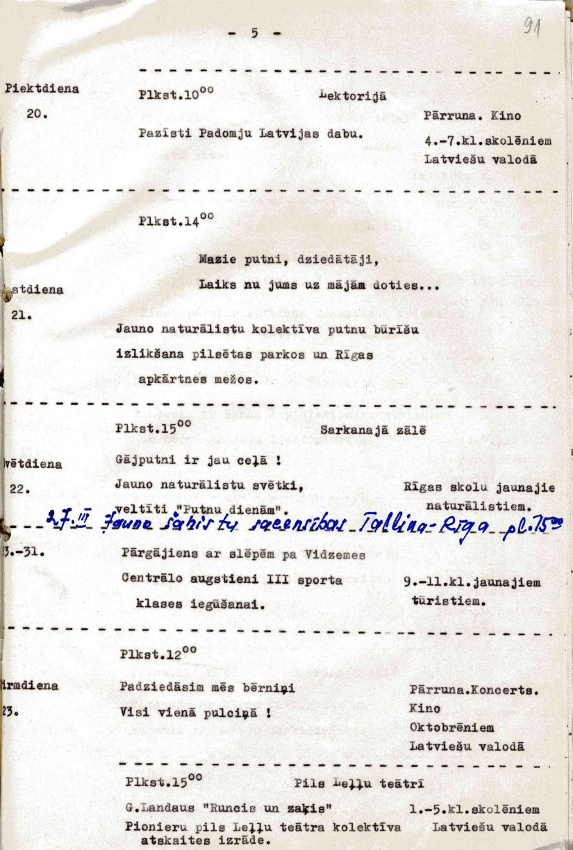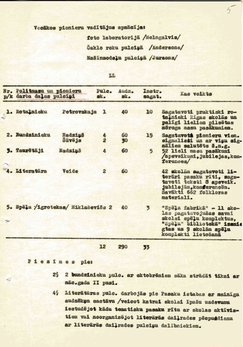 | Rīgas Pionieru pils darba plāns 1953./54. mācību gadam.