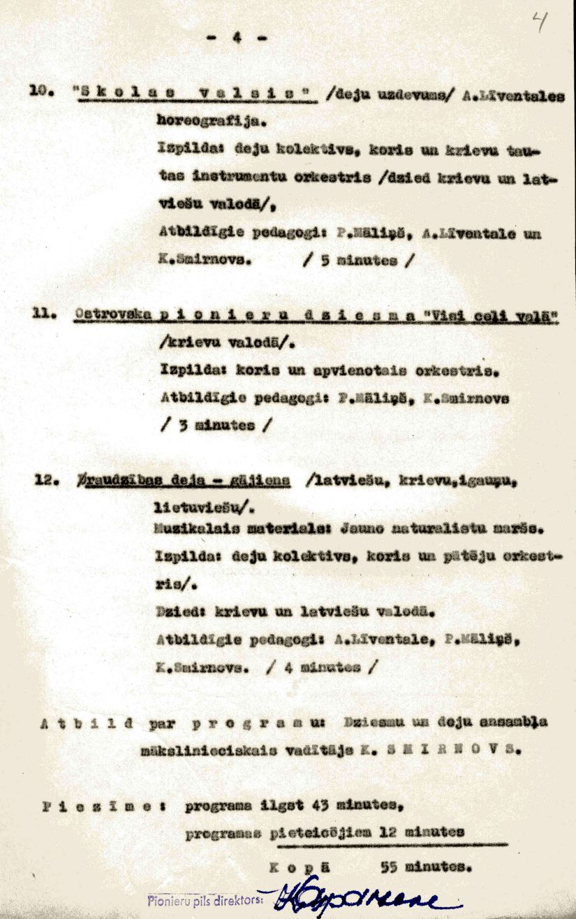 V. Pētersone Pionieru pils direktores amatā bija no 1952. gada maija līdz 1954. gada septembrim.