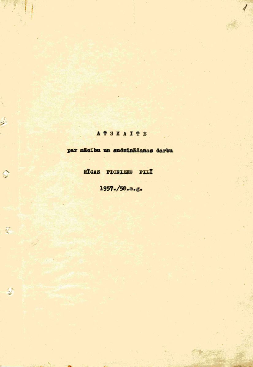 Rīgas Pionieru pils atskaite par mācību un audzināšanas darbu 1957./58. mācību gadam