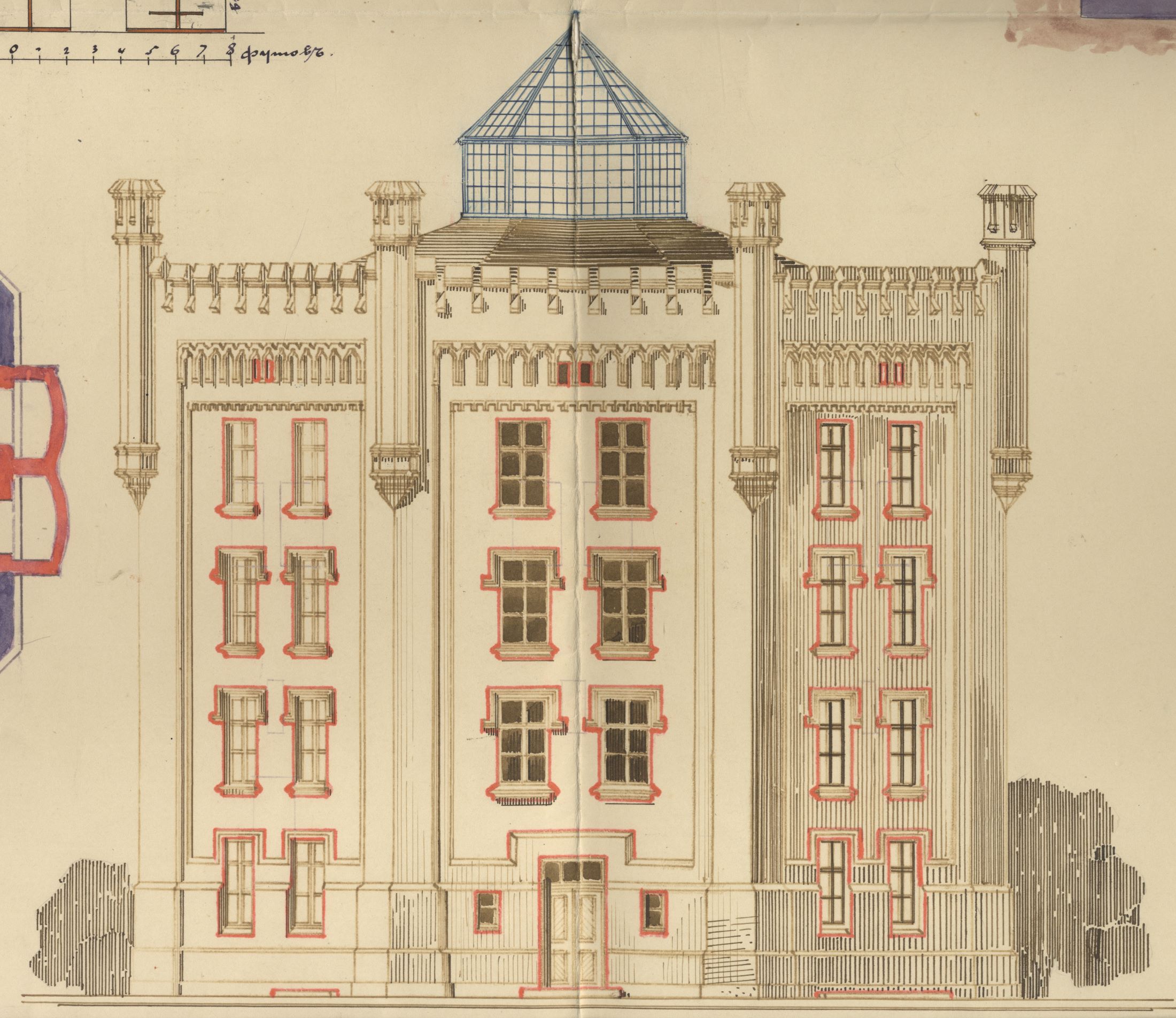 Doma muzeja un pilsētas arhīva Palasta ielā 4 fasādes projekts. 1888. gads. LNA_LVVA, F2761_3_785, 7. lp.