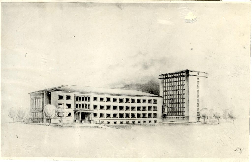 Arhitekta Leona Plauciņa diplomdarba "Rīgas pilsētas vēsturiskais arhīvs" fotoattēli. Ne agrāk par 1944. gadu. LNB Reto grāmatu un rokrakstu nodaļa, A285-68