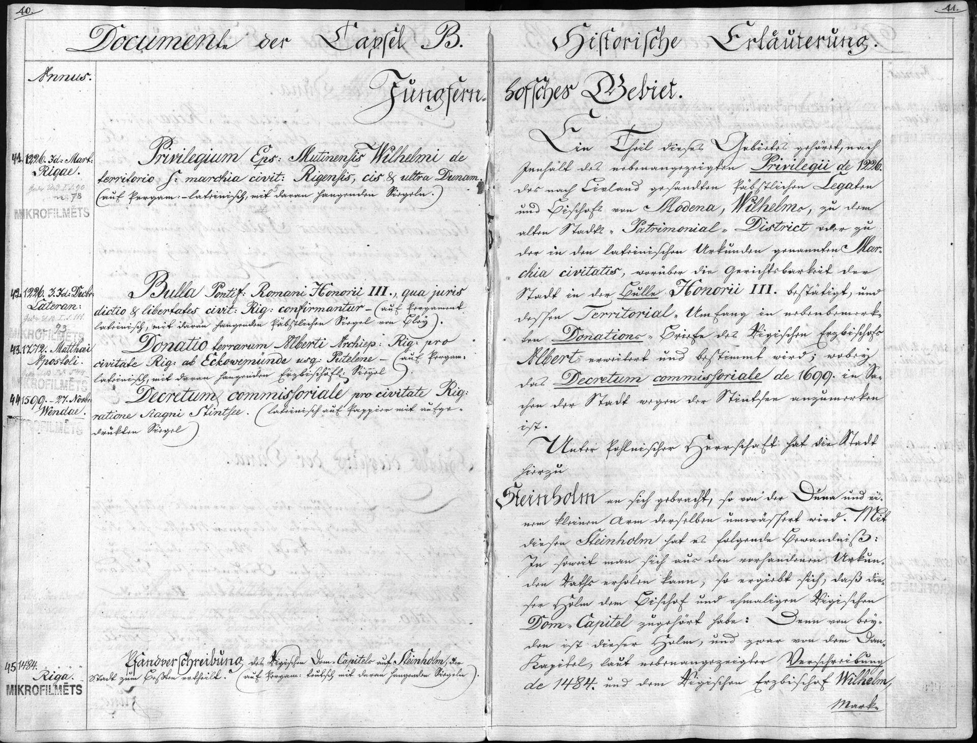 Augot interesei par vēsturi un ritot darbam pie Baltijas provinču tiesību kodifikācijas 19. gs. 30. un 40. gados, sekoja rātes arhīva dokumentu izpēte un kārtošana. Arhīva vērtīgāko daļu, tā saucamo ārējo arhīvu, pārvietoja no rātes kancelejas telpām uz rātes sēžu zāli, tomēr aizvien skaidrāk bija jūtama nepieciešamība pēc moderna pilsētas arhīva izveides.