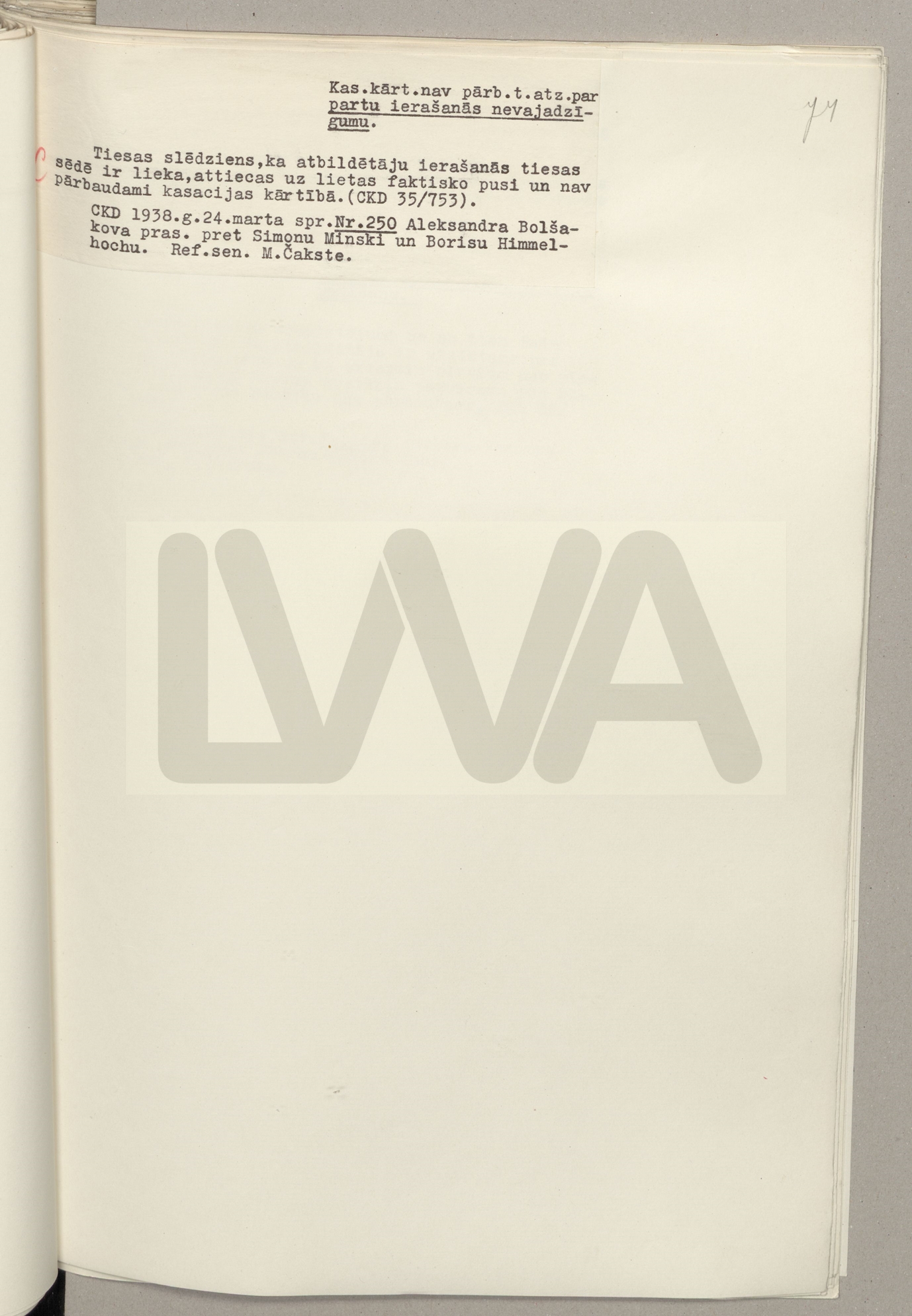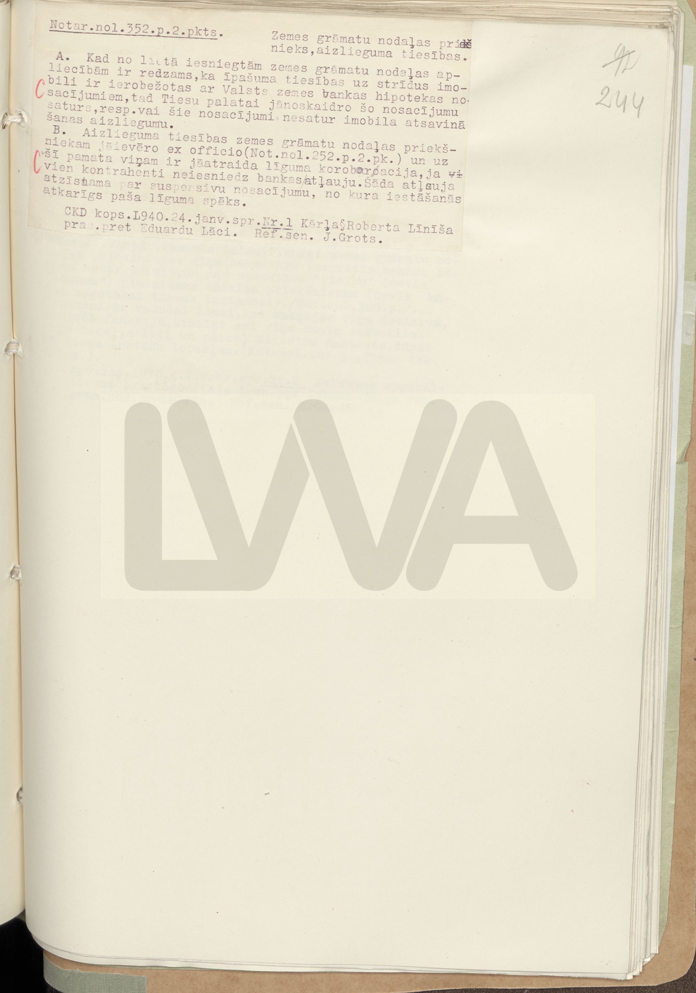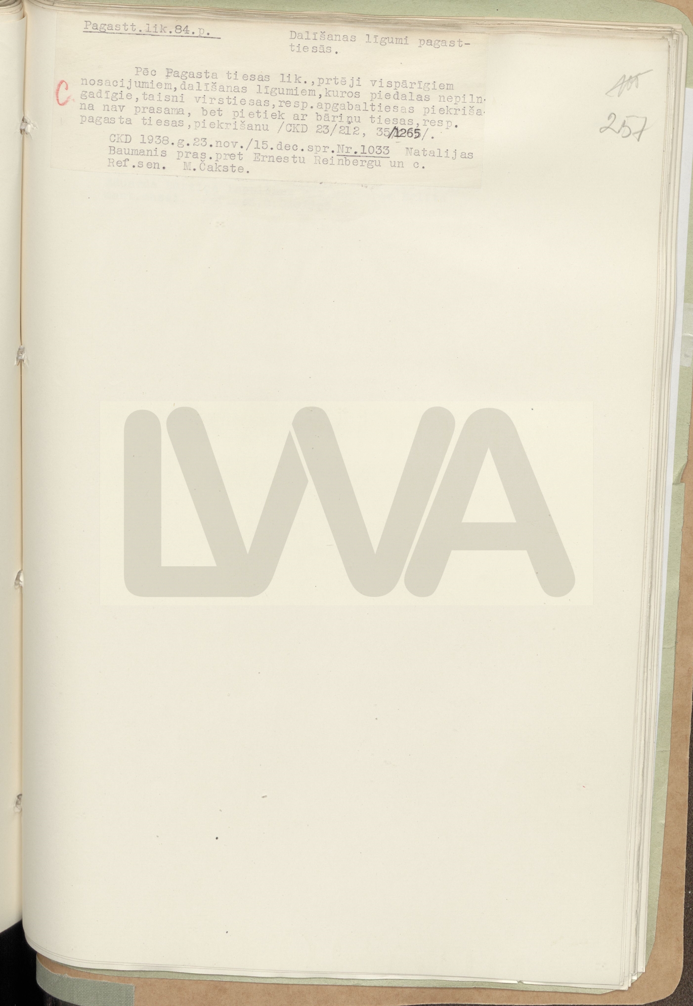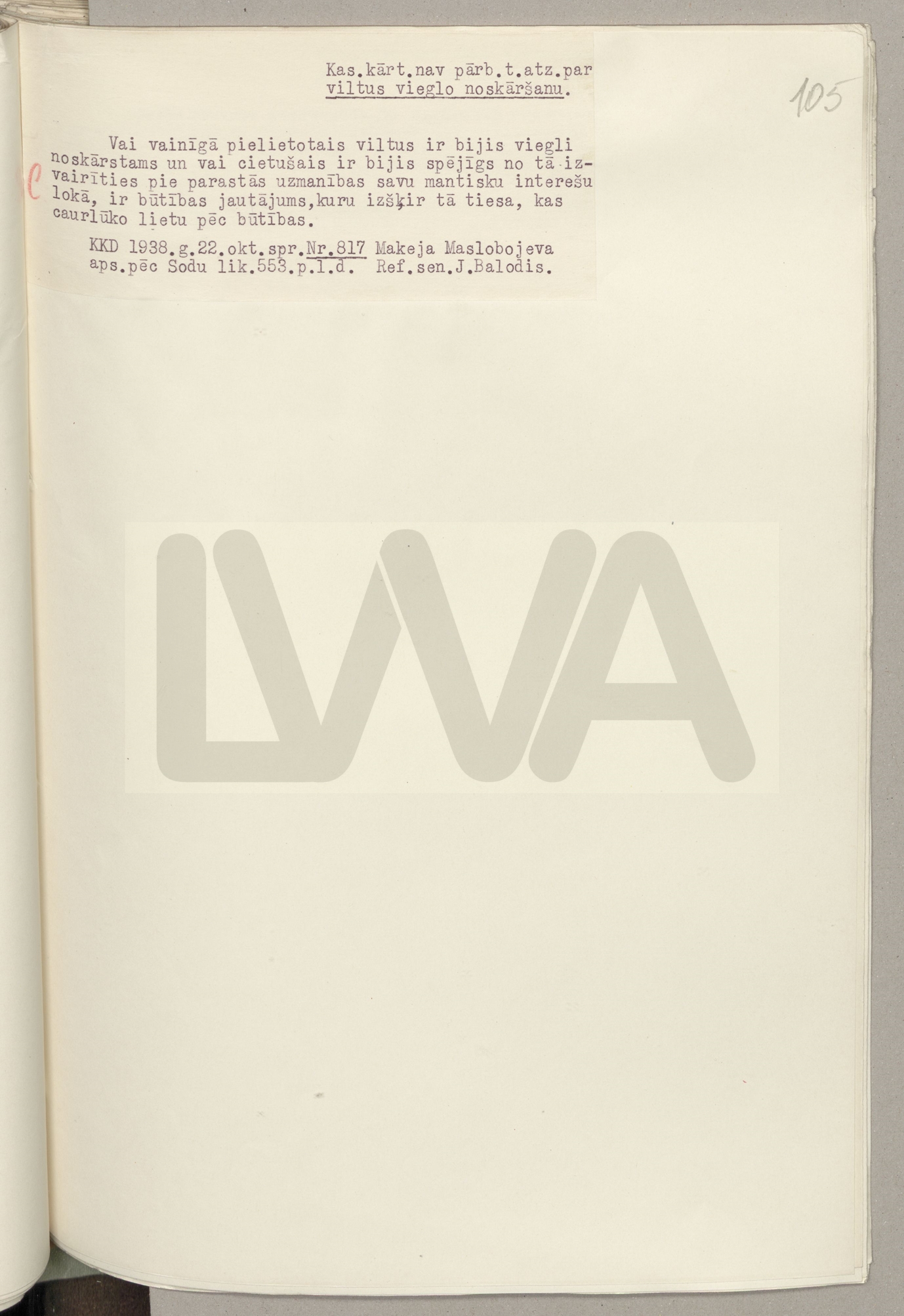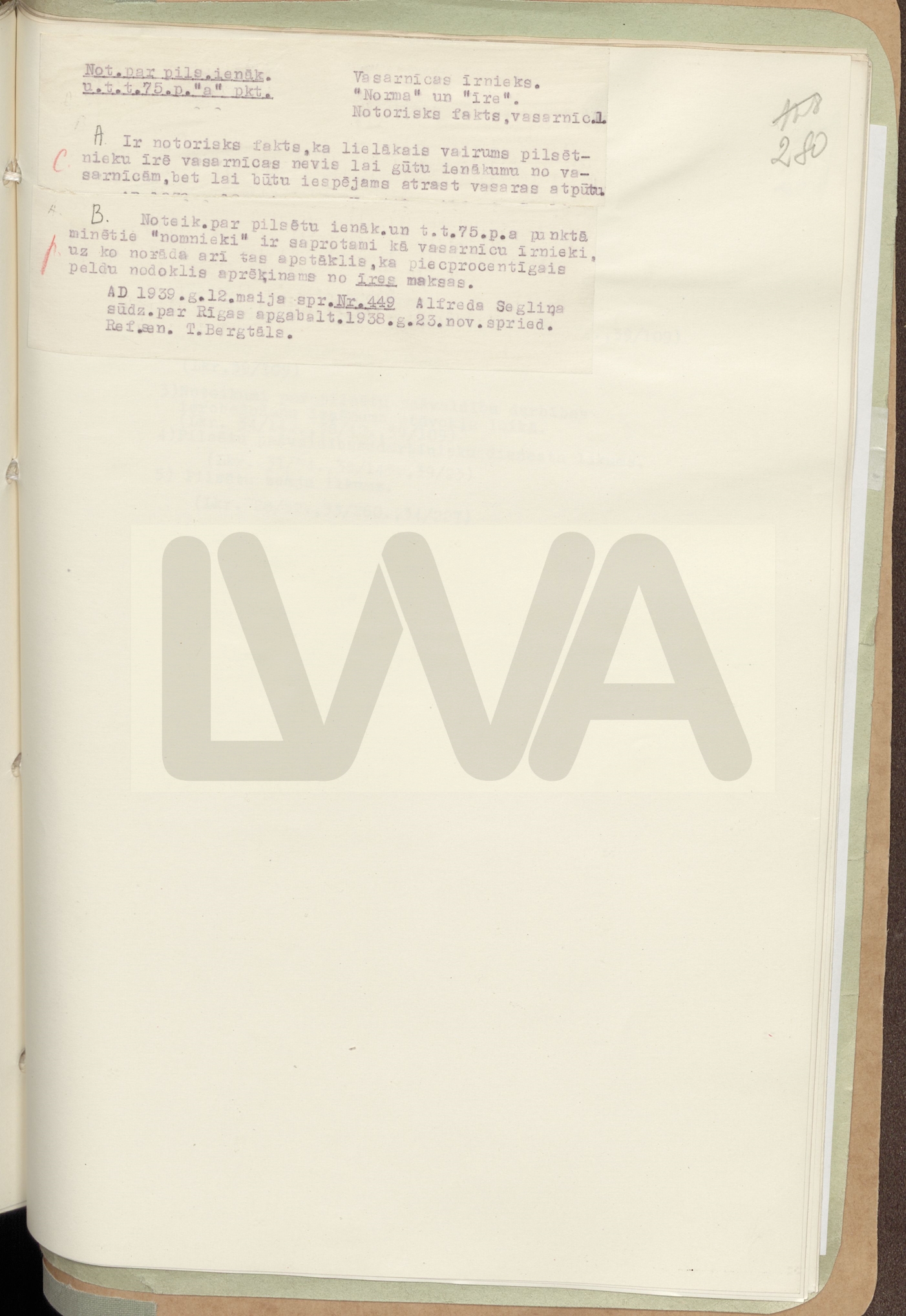Tēzes Civilprocesa likuma un citu likumu normu secībā (LVVA 1535. f. 8. apr. 40. lieta)