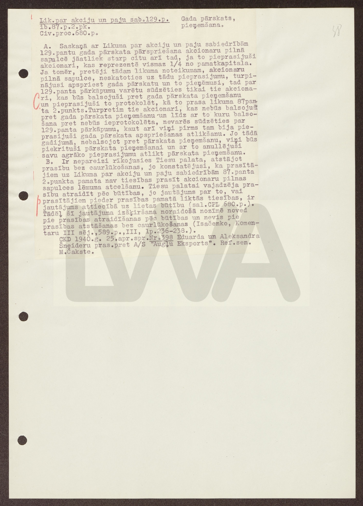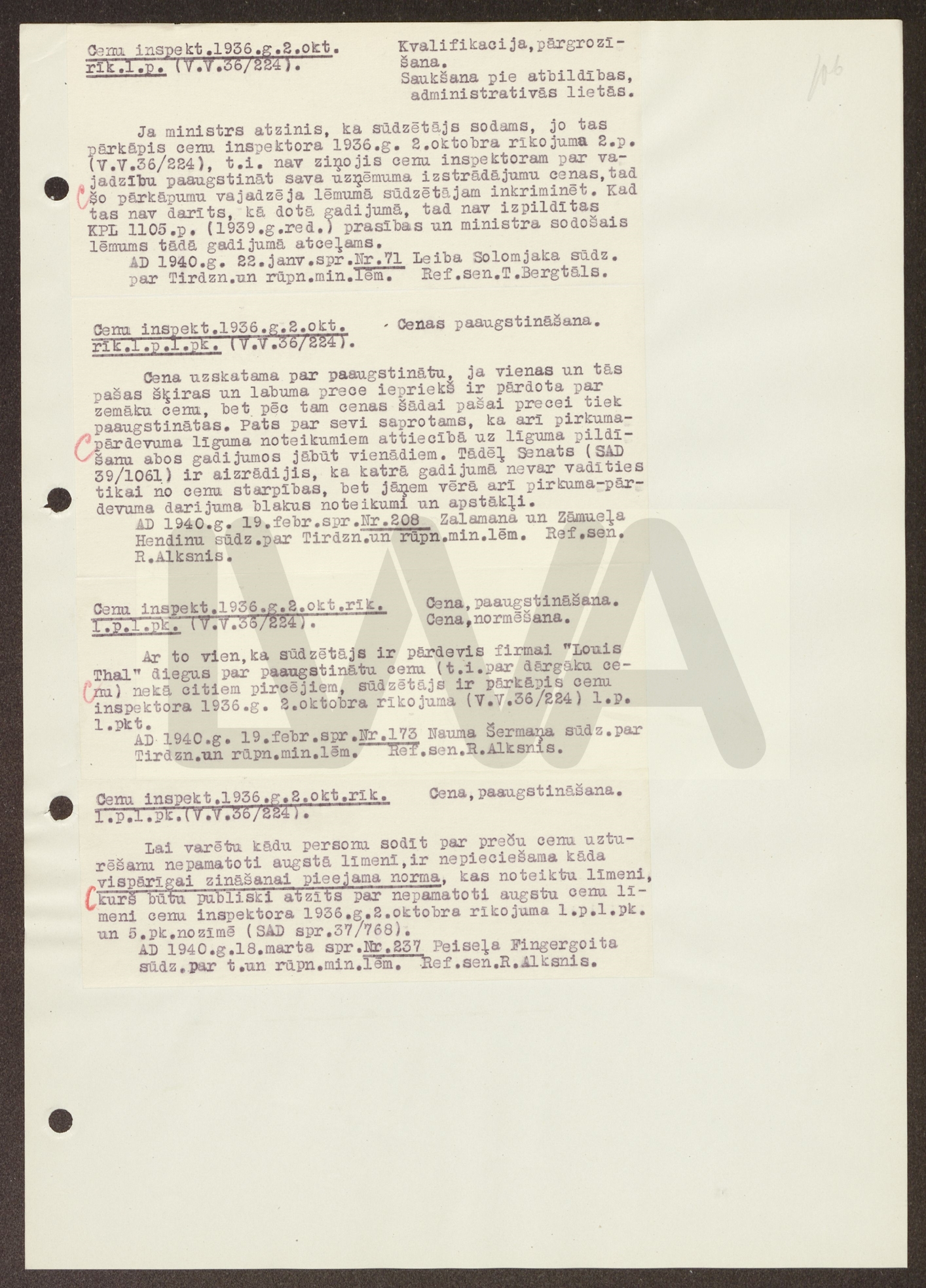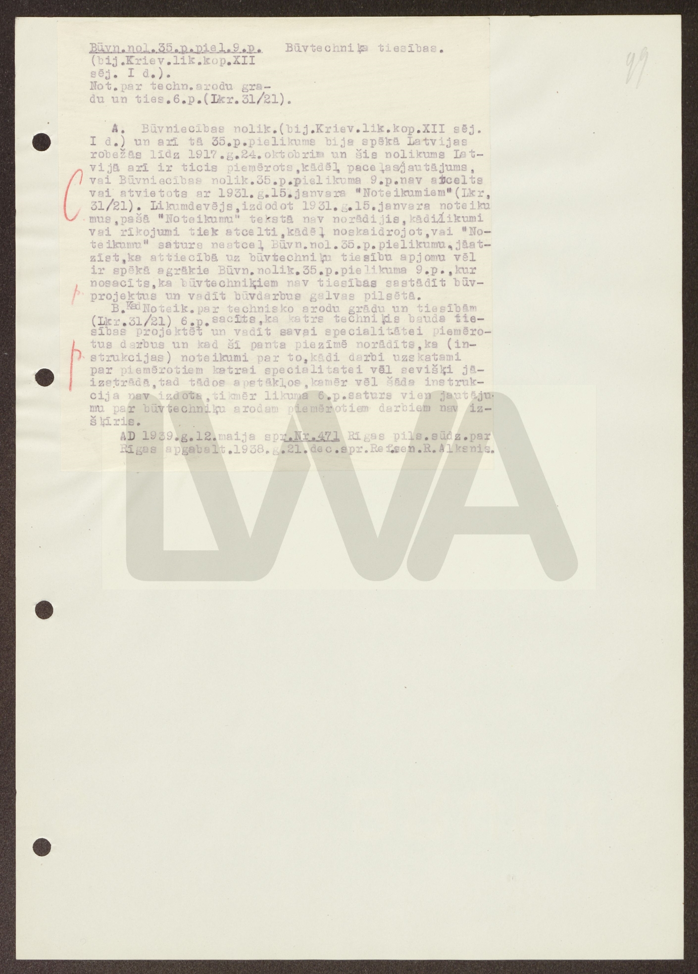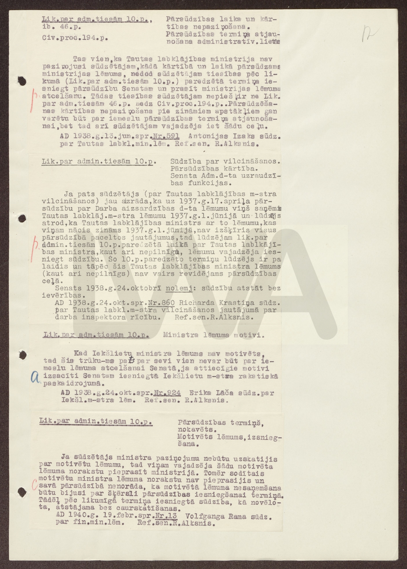 Tēzes no Administratīvā un Civilā departamenta spriedumiem dažādu likumu normu secībā (LVVA 1535. f. 9. apr. 43. lieta)