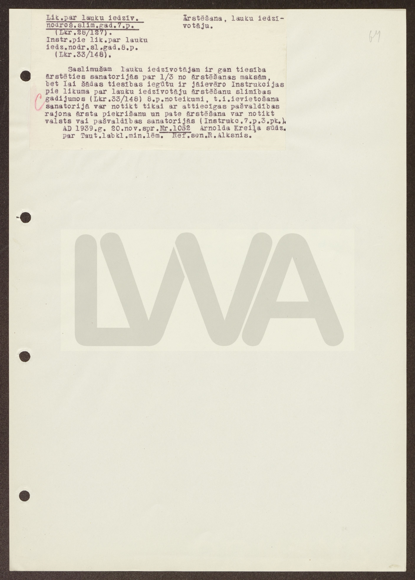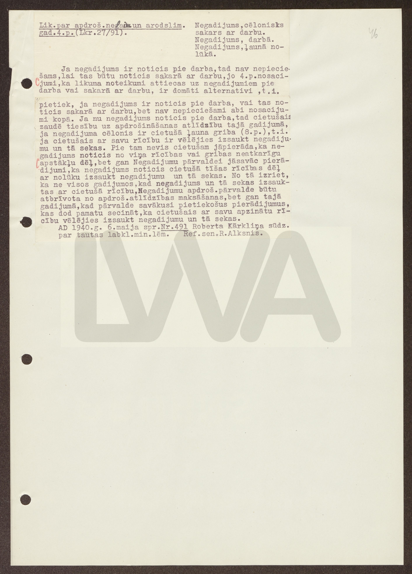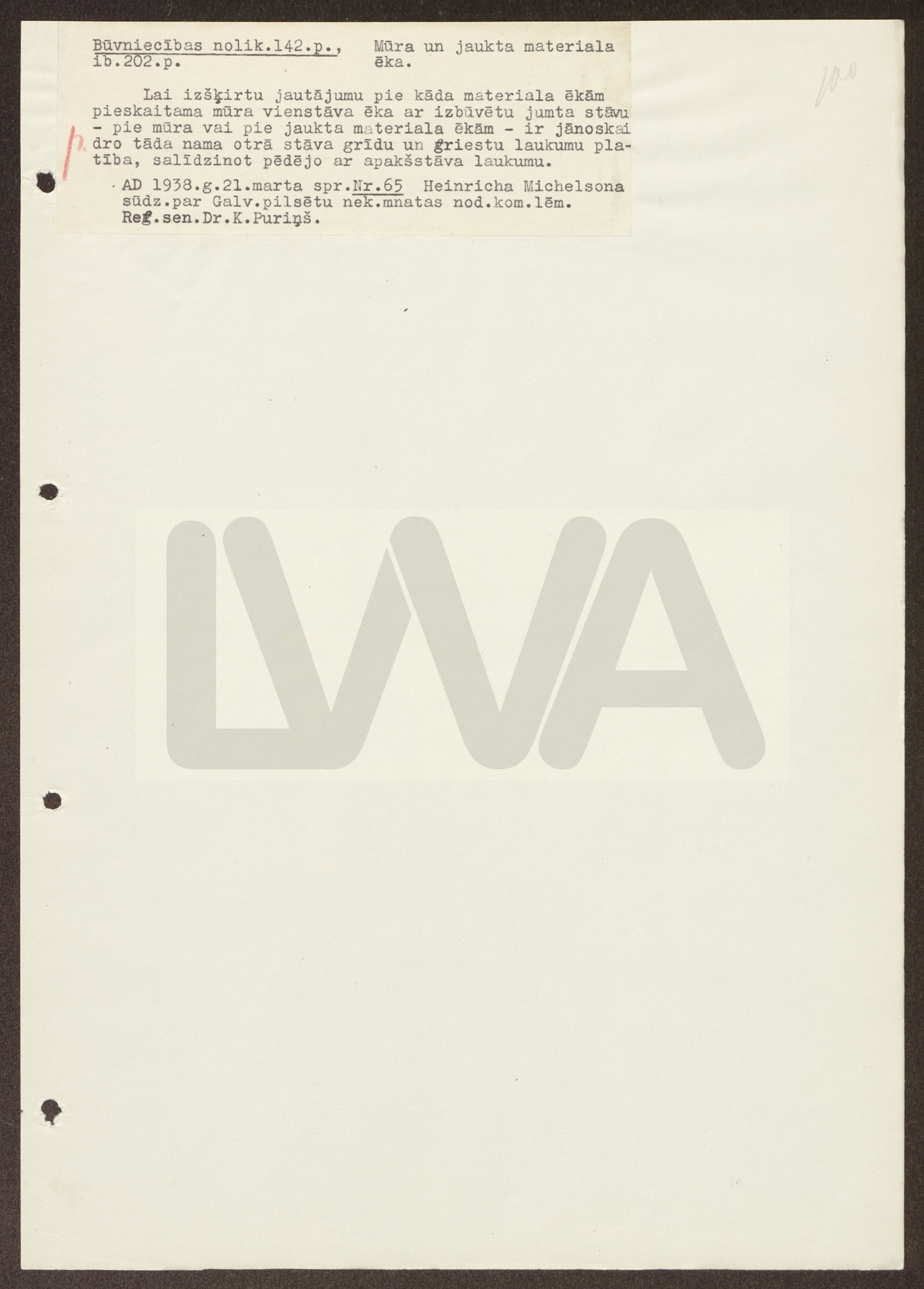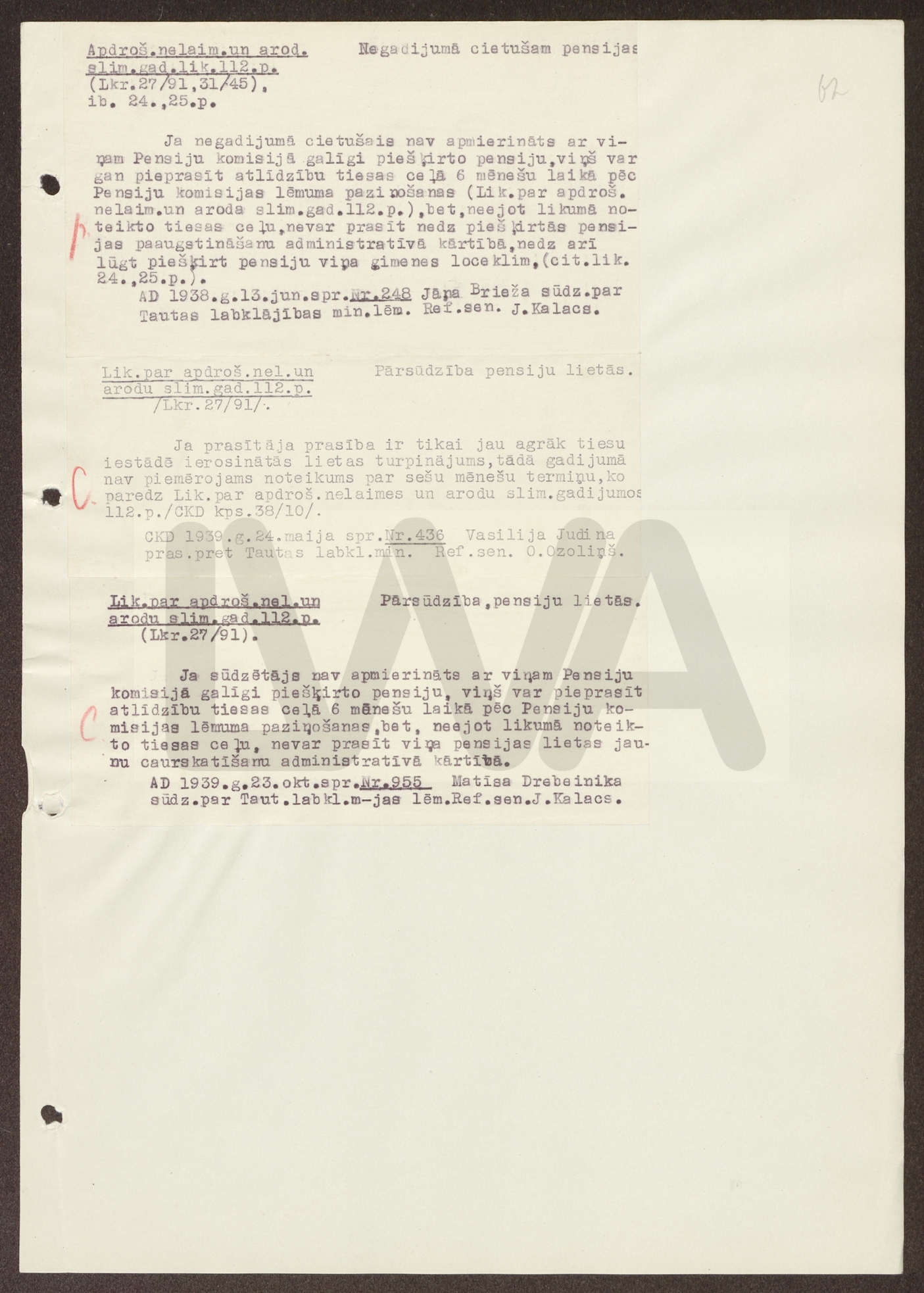Tēzes no Administratīvā un Civilā departamenta spriedumiem dažādu likumu normu secībā (LVVA 1535. f. 9. apr. 43. lieta)