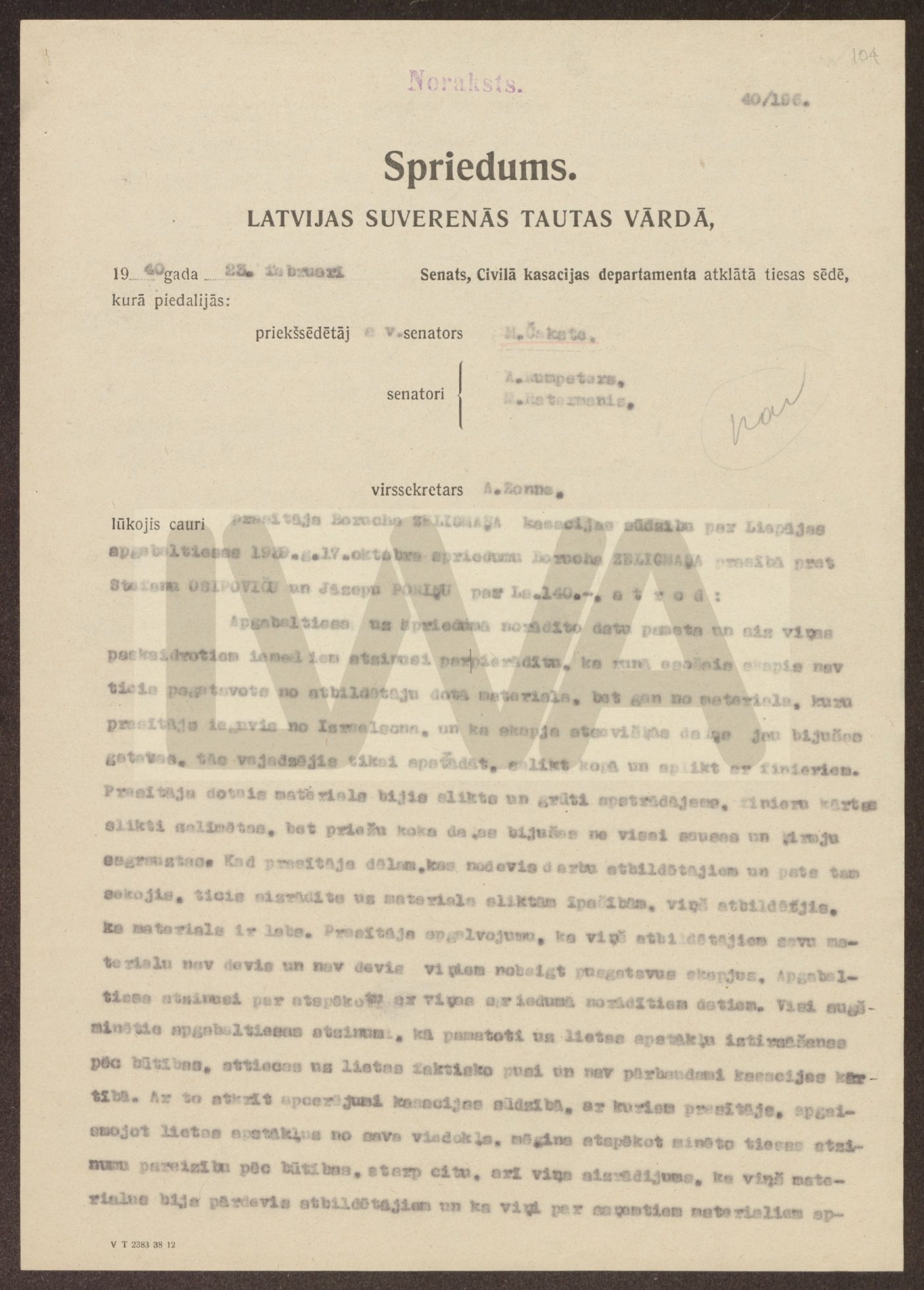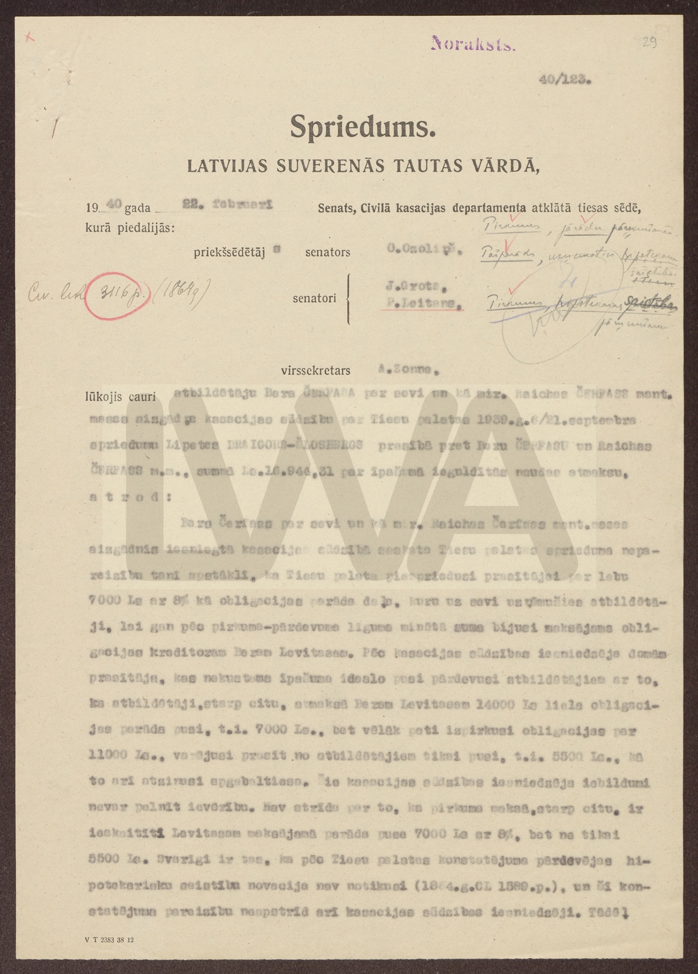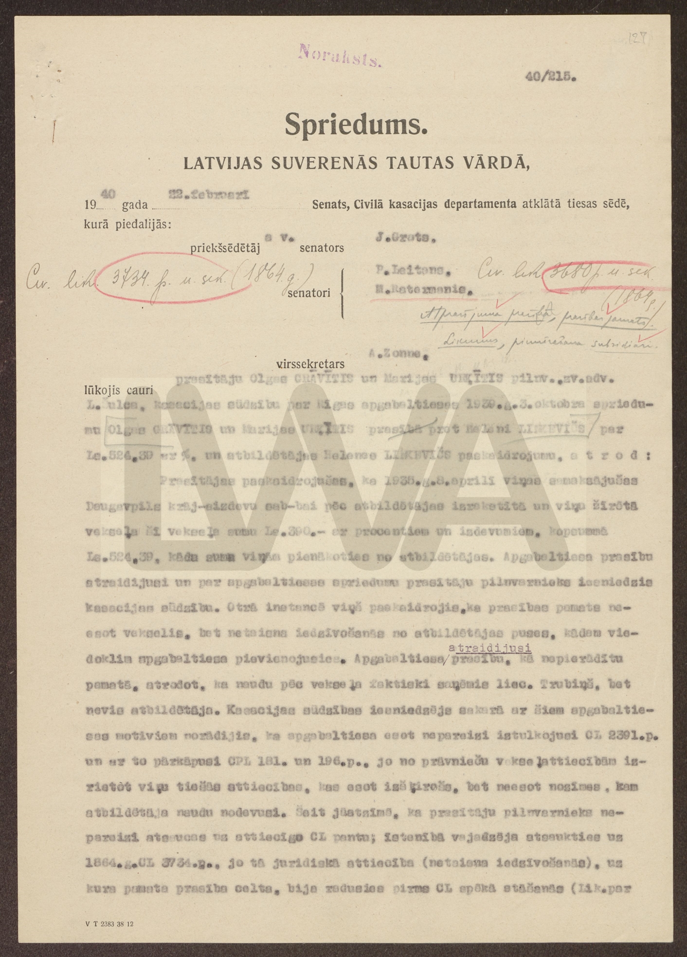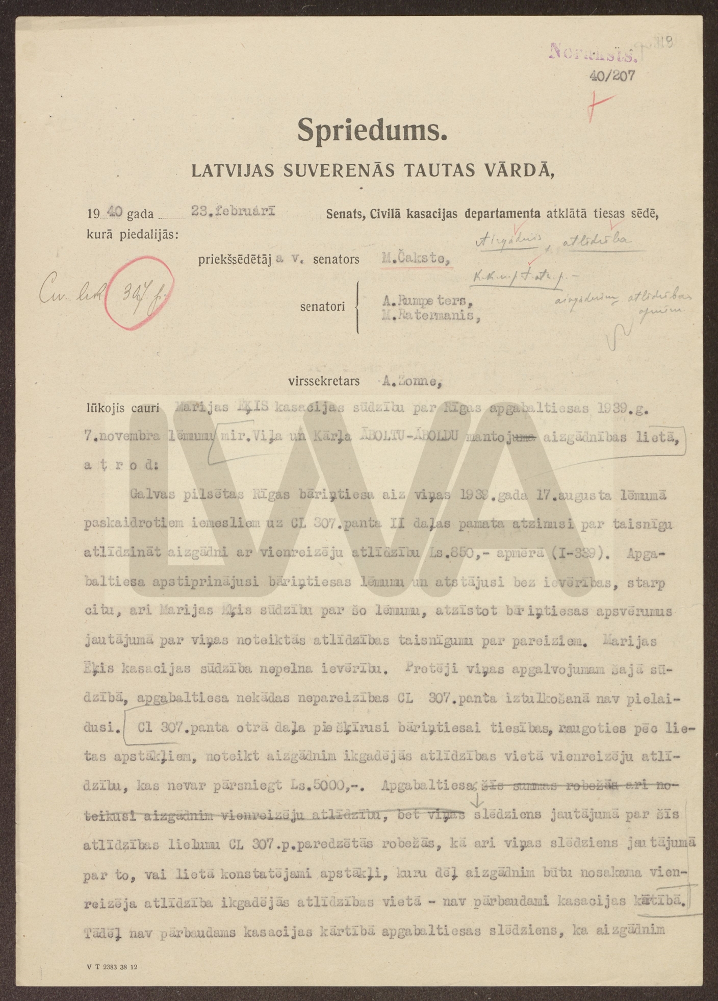 CKD spriedumi 1940.g. februāris (LVVA 1535. f. 8. apr. 32. lieta)