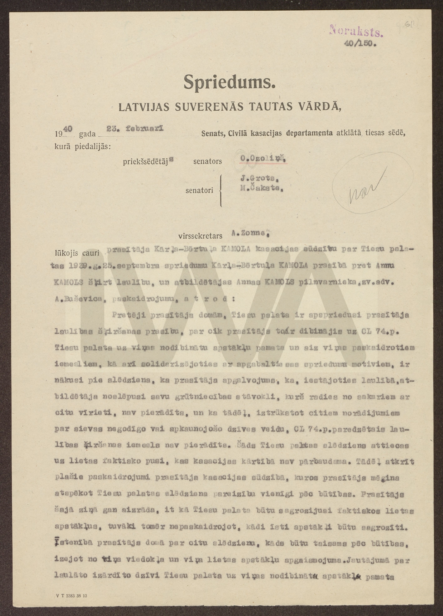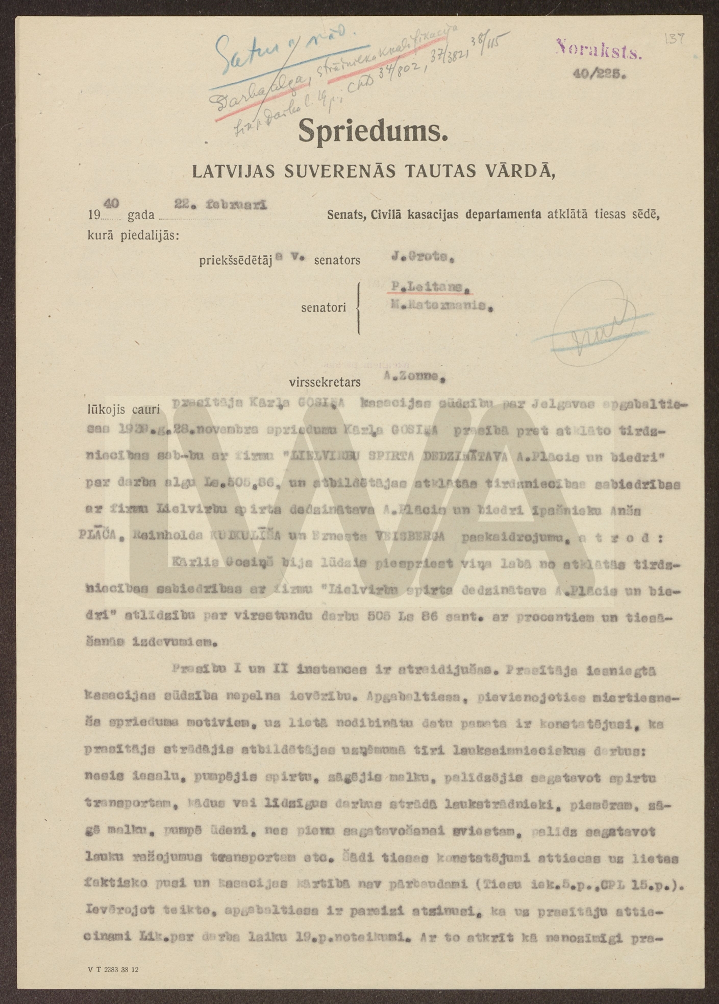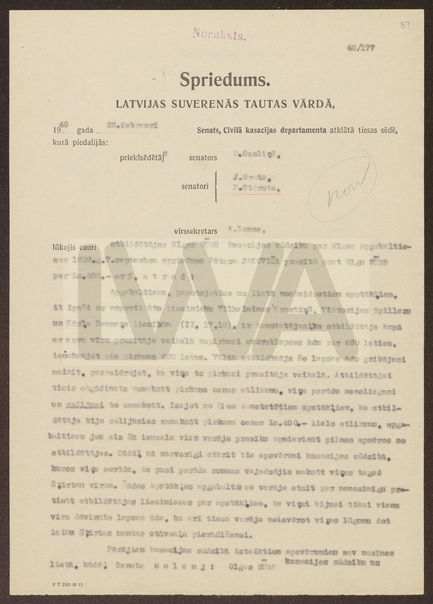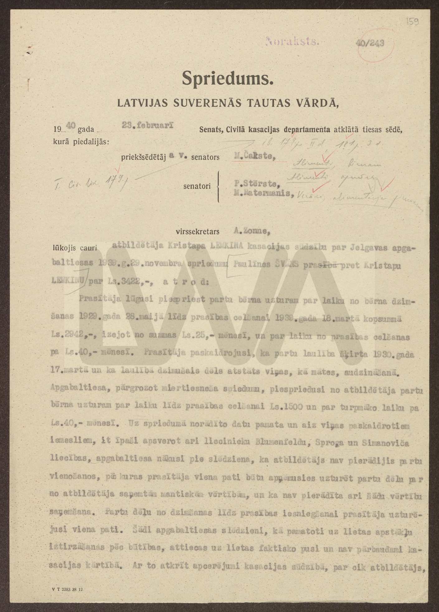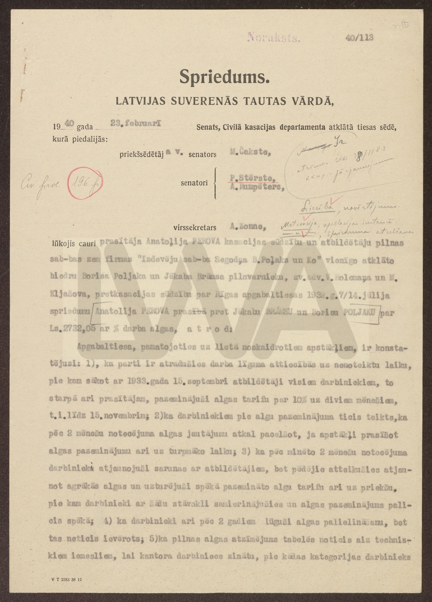 CKD spriedumi 1940.g. februāris (LVVA 1535. f. 8. apr. 32. lieta)