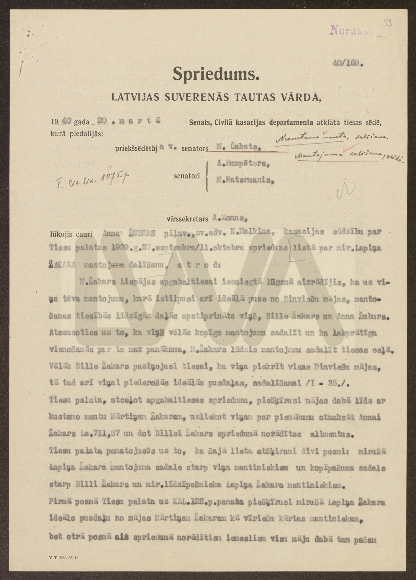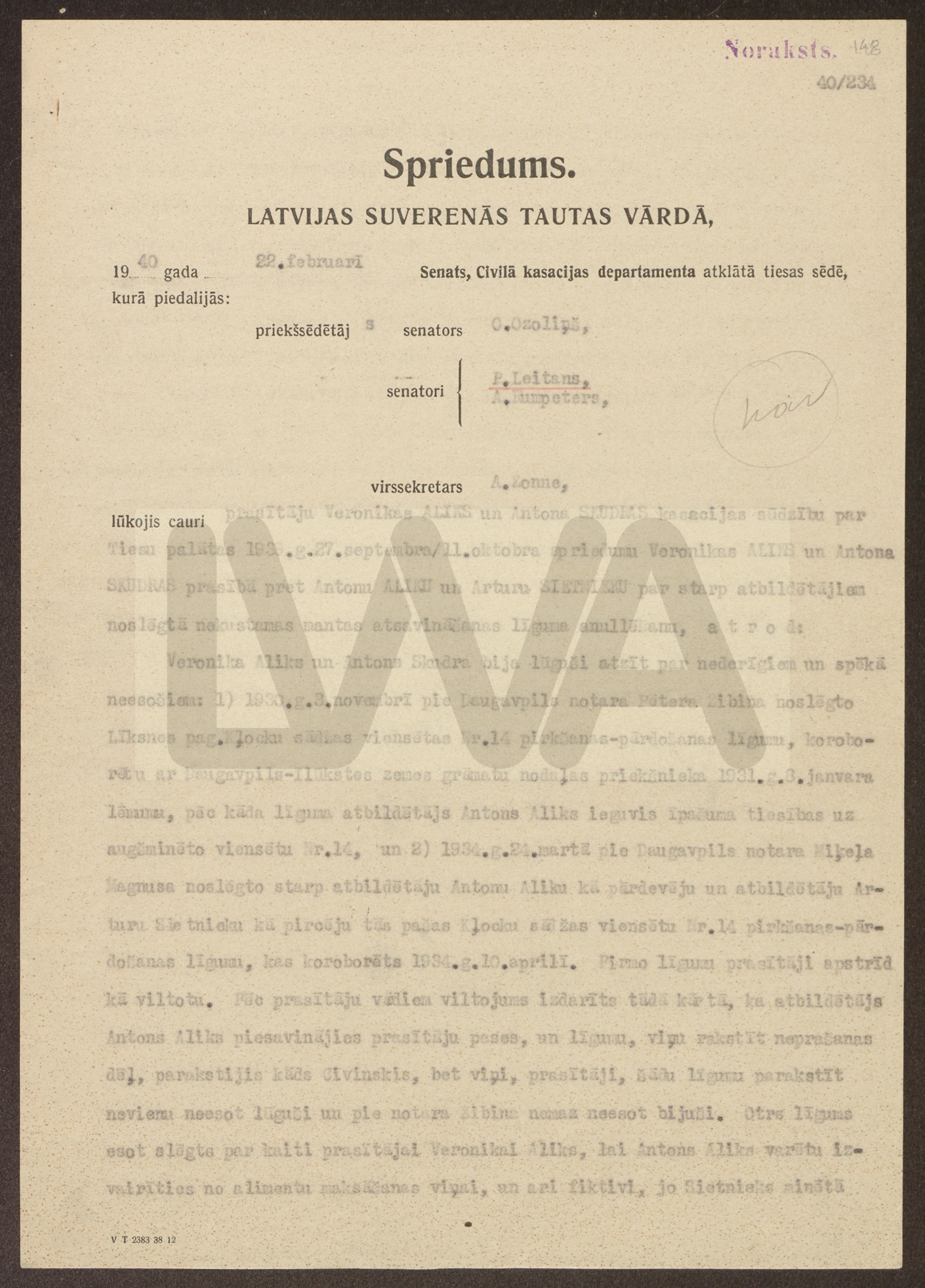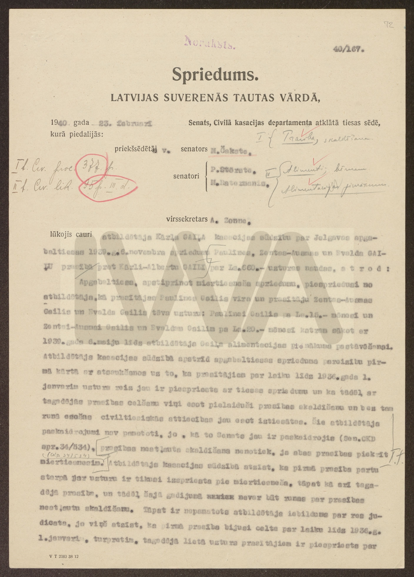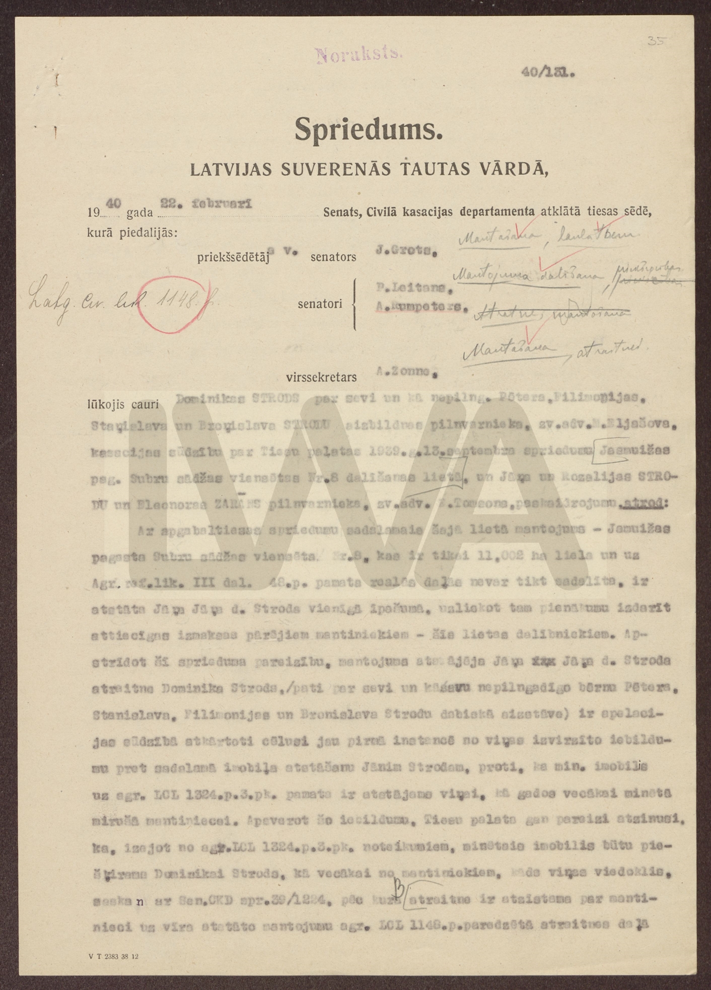 CKD spriedumi 1940.g. februāris (LVVA 1535. f. 8. apr. 32. lieta)