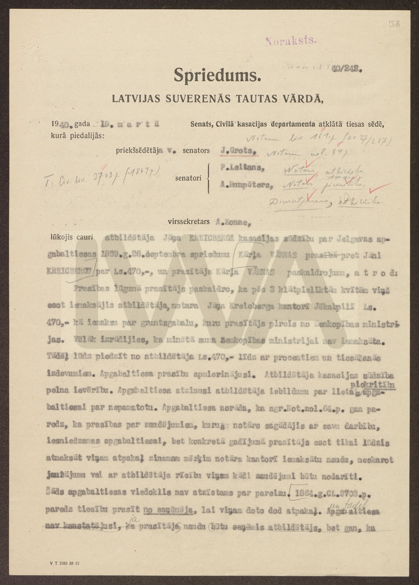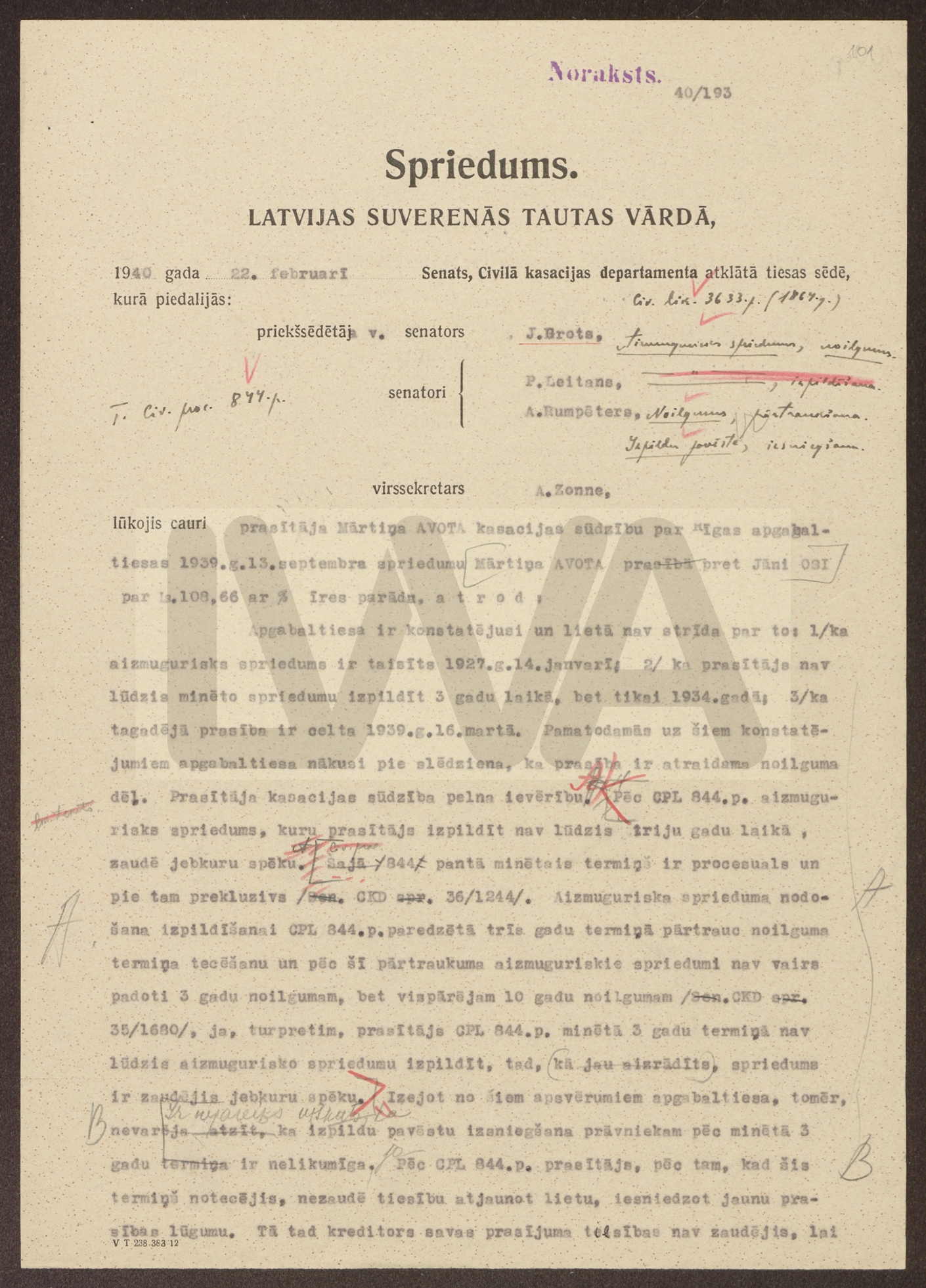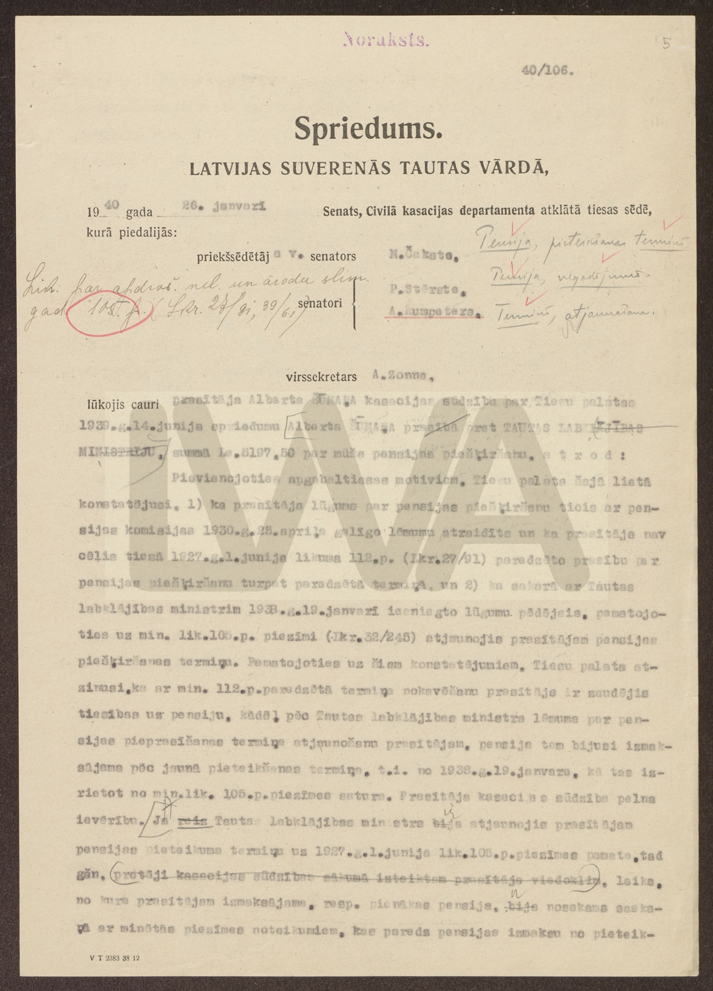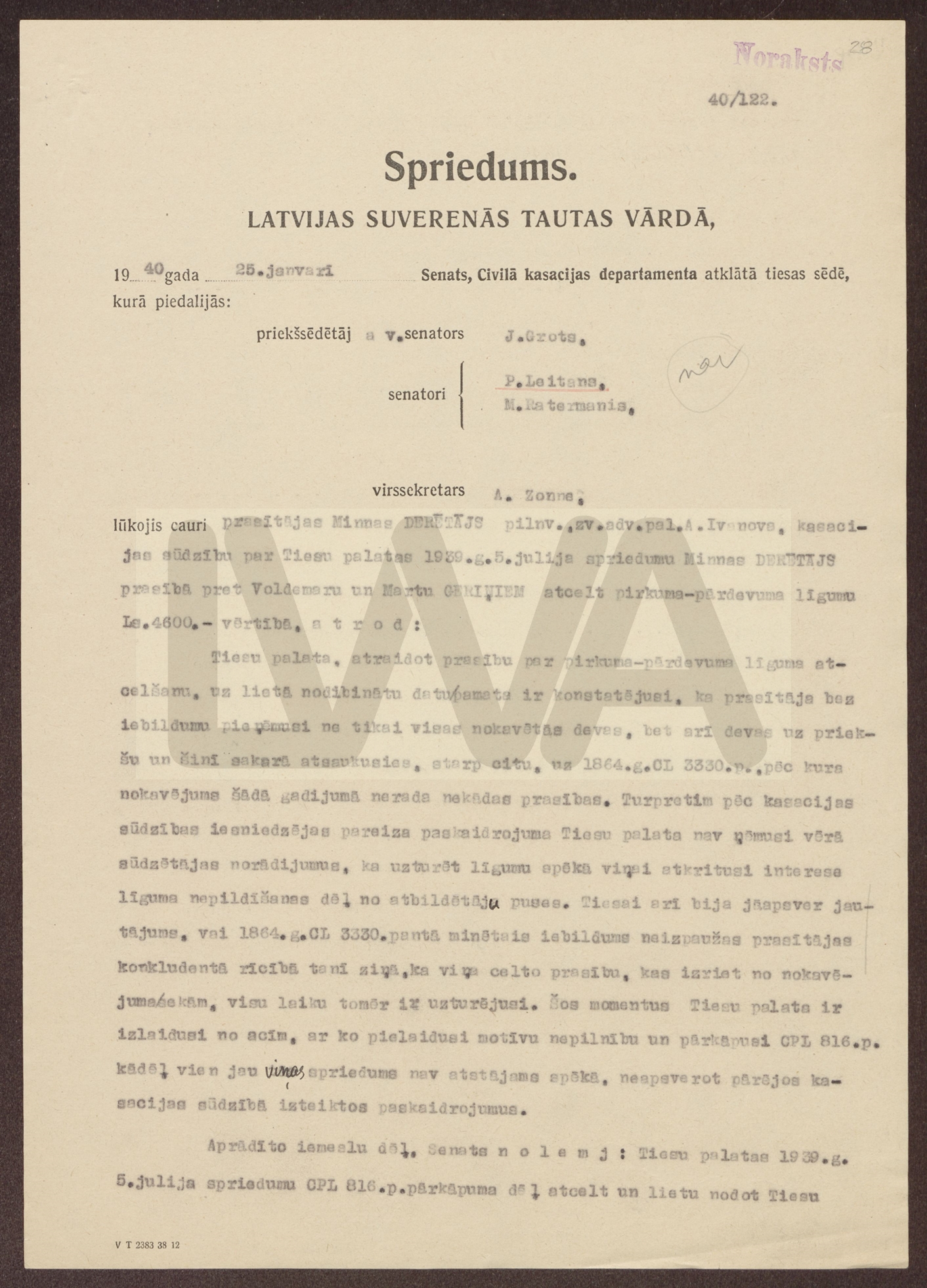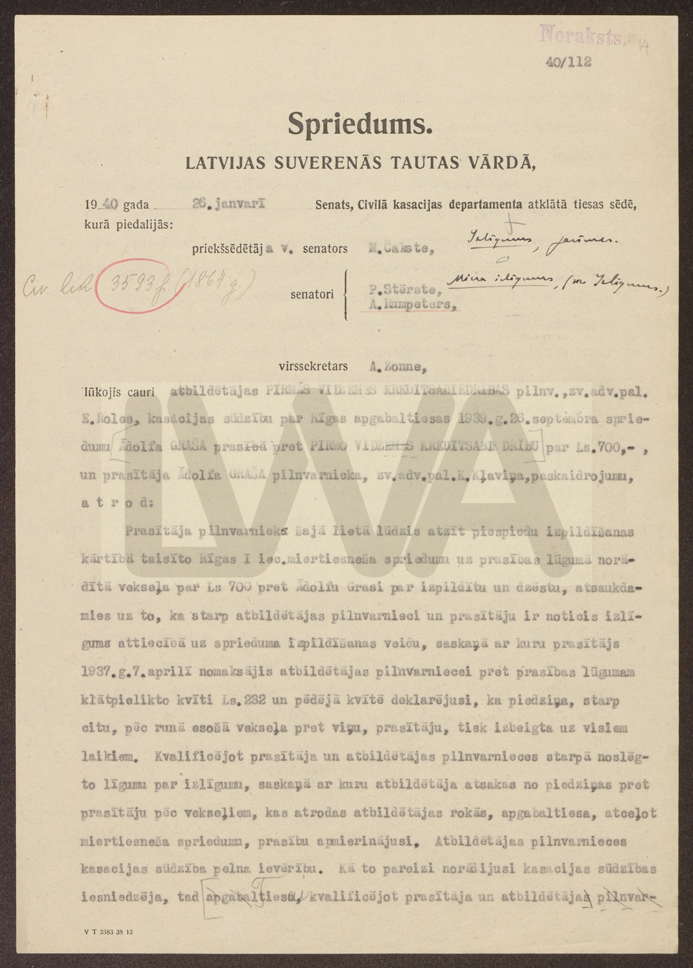 CKD spriedumi 1940.g. februāris (LVVA 1535. f. 8. apr. 32. lieta)