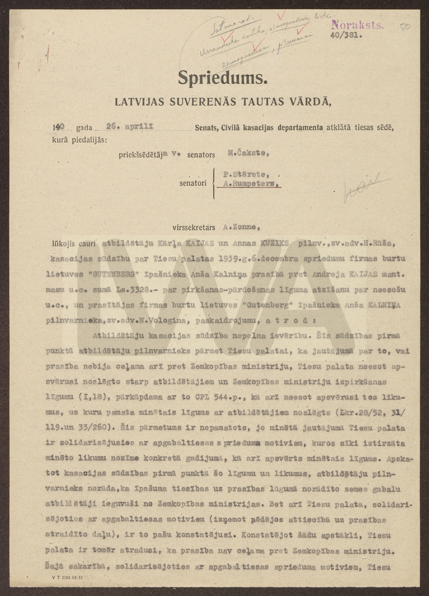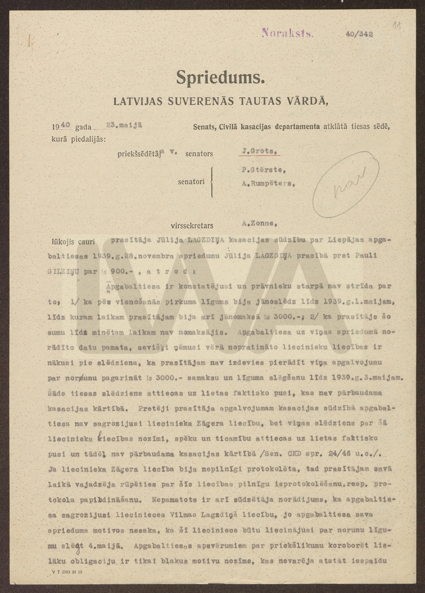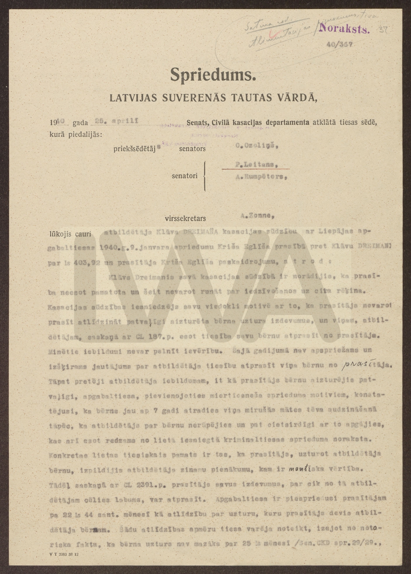 CKD spriedumi 1940.g. aprīlis (LVVA 1535. f. 8. apr. 34. lieta)