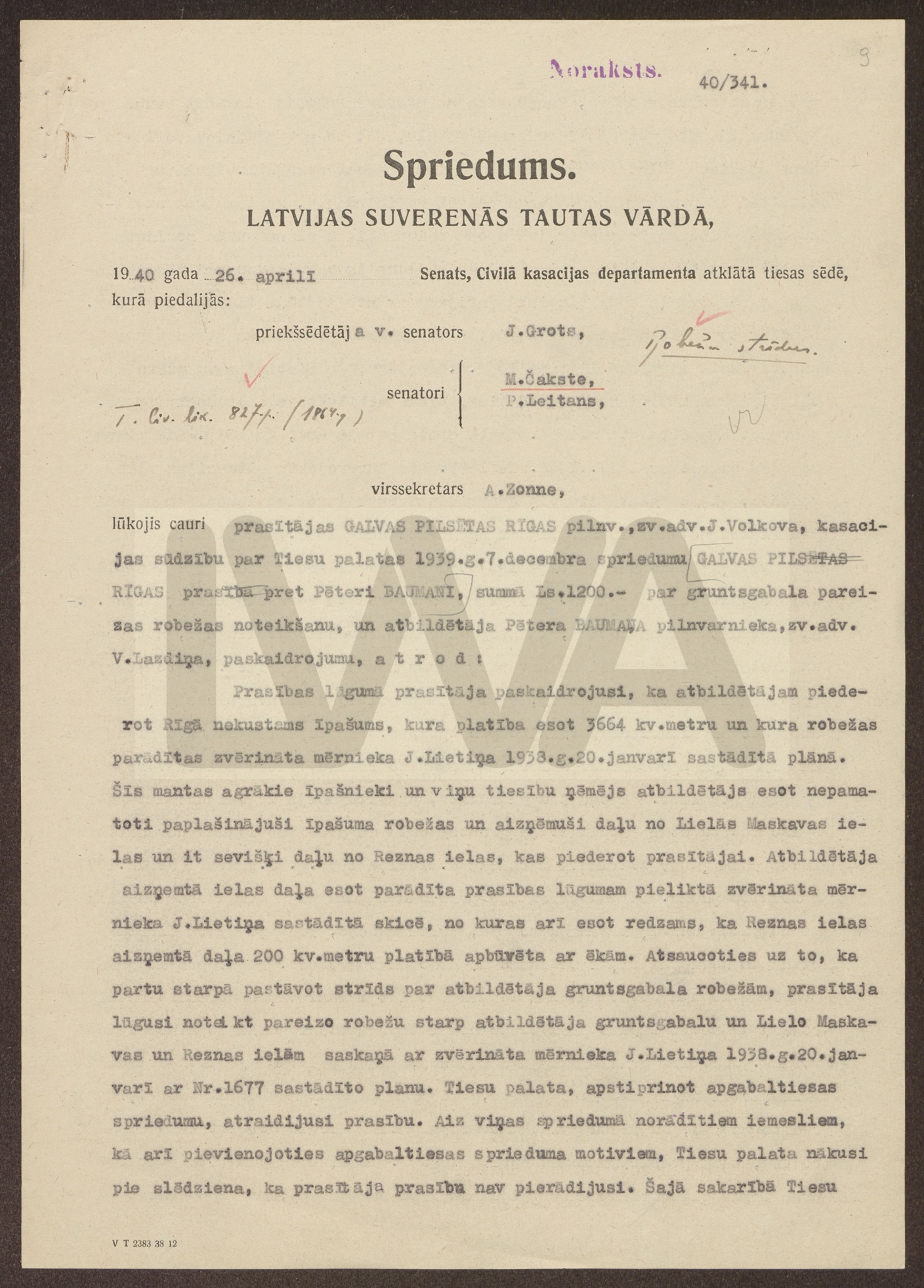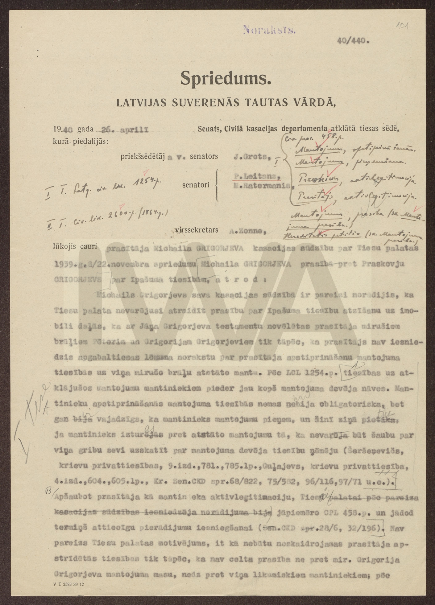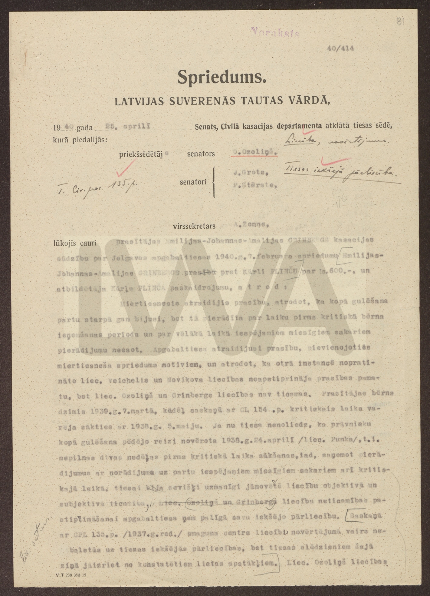 CKD spriedumi 1940.g. aprīlis (LVVA 1535. f. 8. apr. 34. lieta)