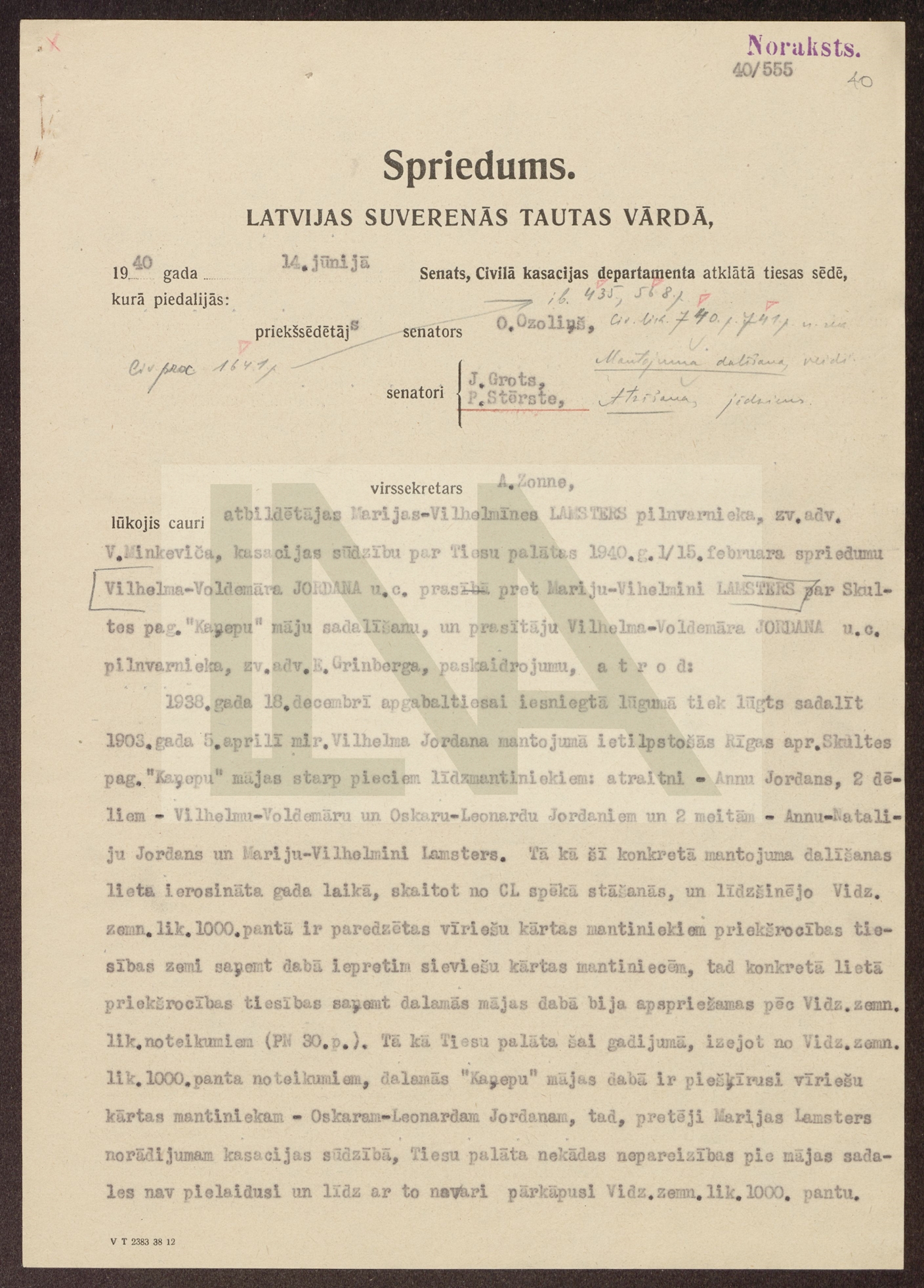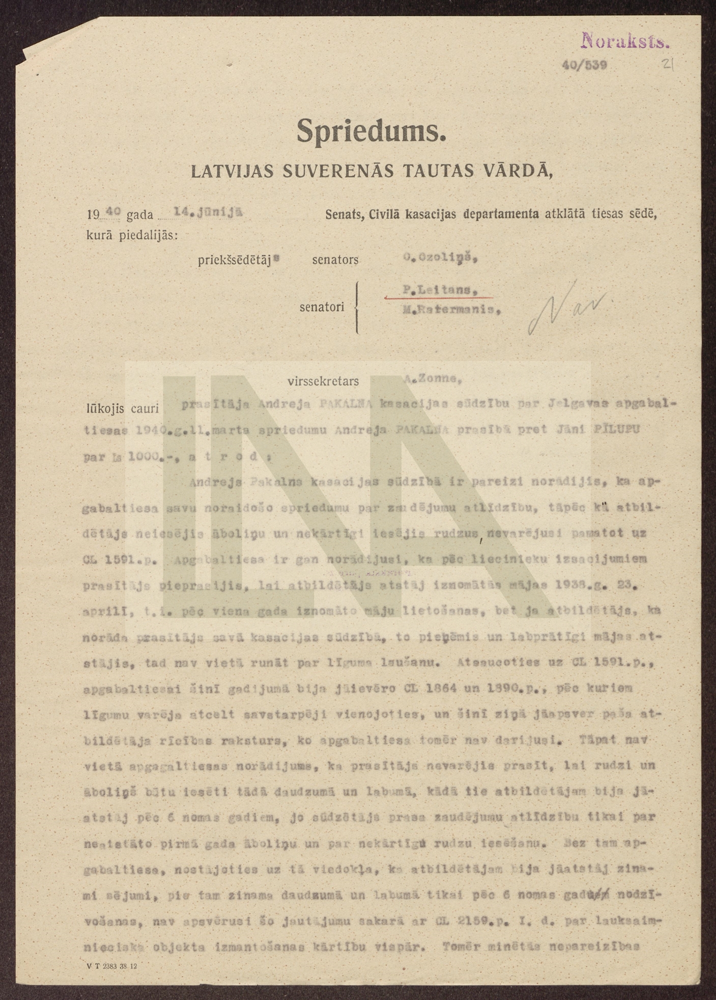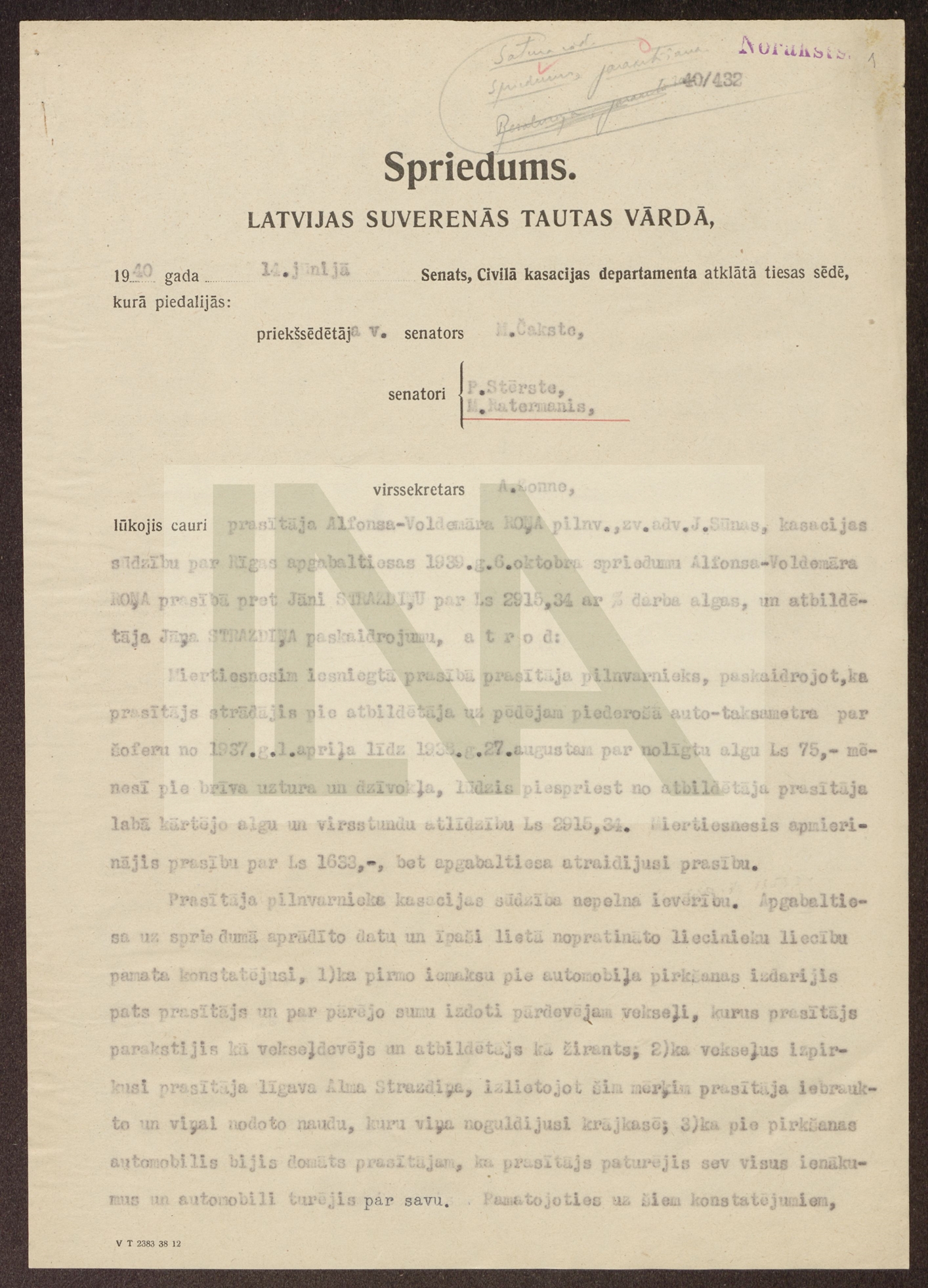 CKD spriedumi 1940.g. jūnijs (LVVA 1535. f. 8. apr. 36. lieta)
