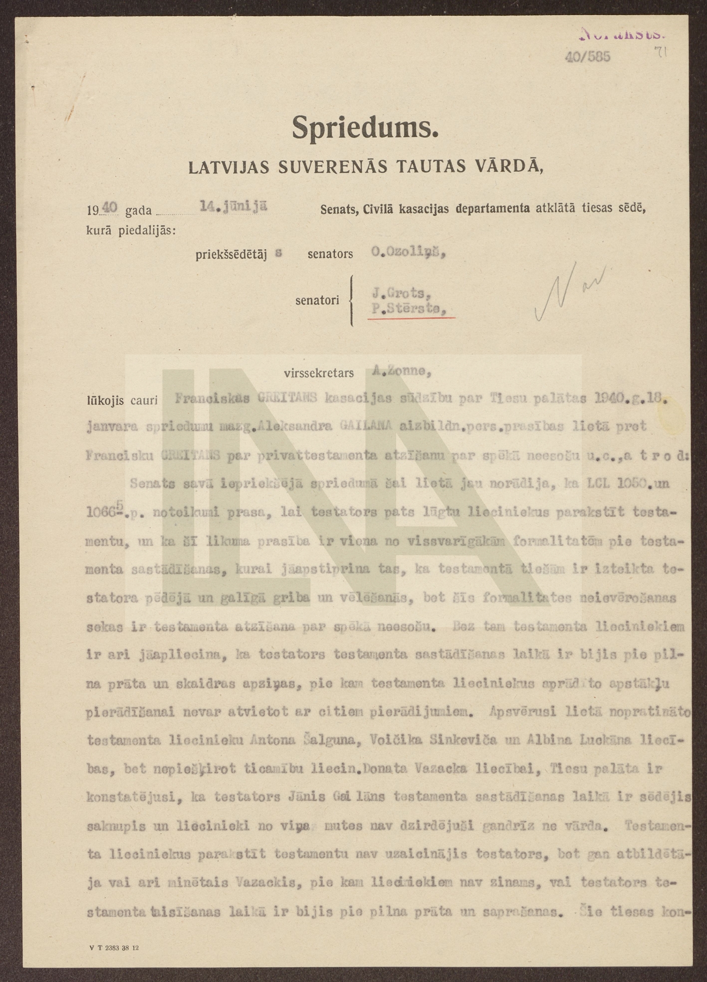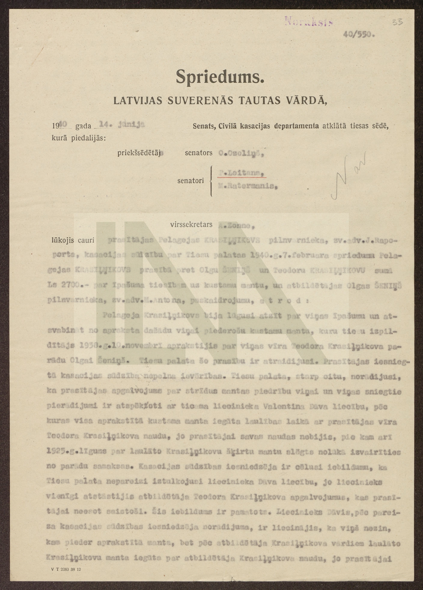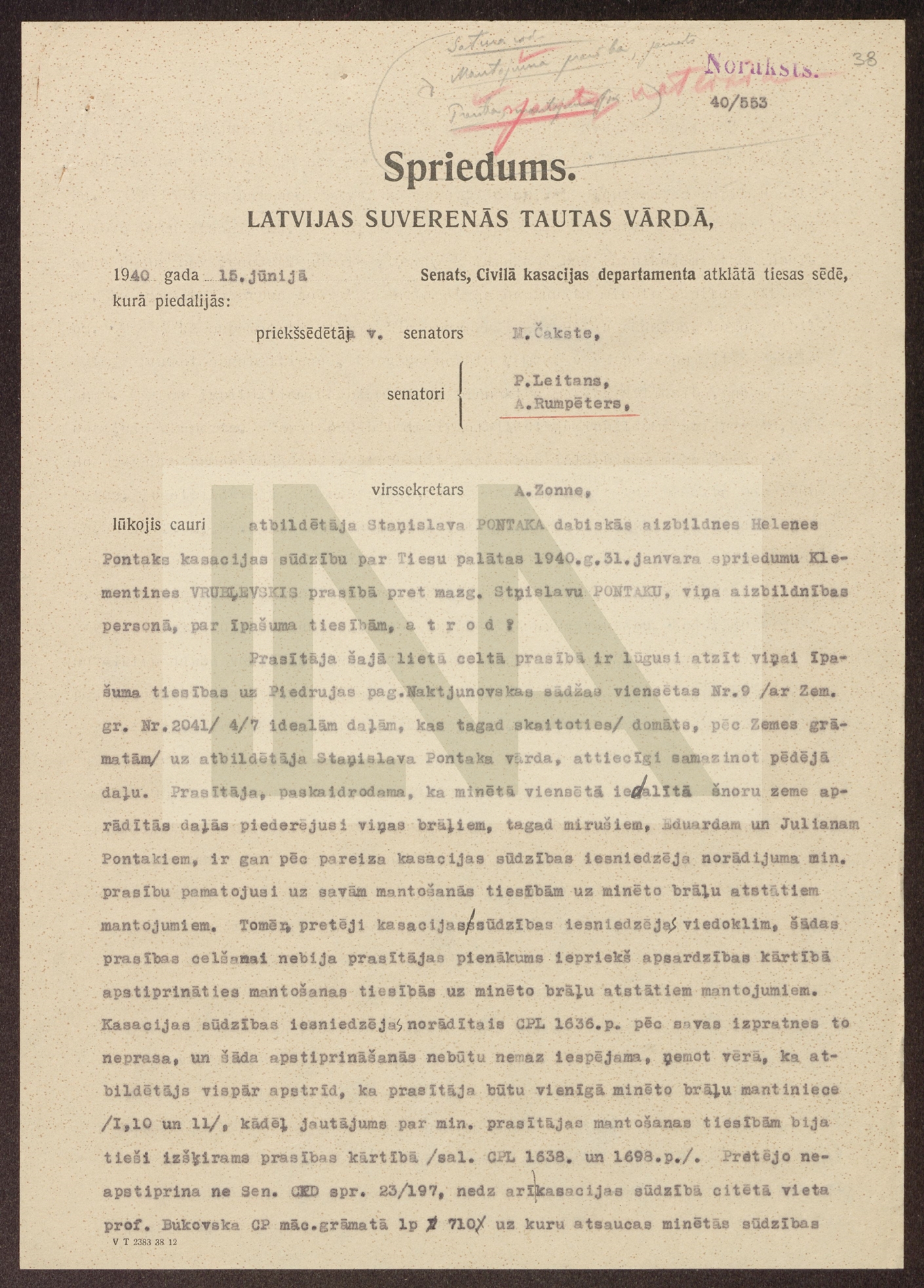 CKD spriedumi 1940.g. jūnijs (LVVA 1535. f. 8. apr. 36. lieta)