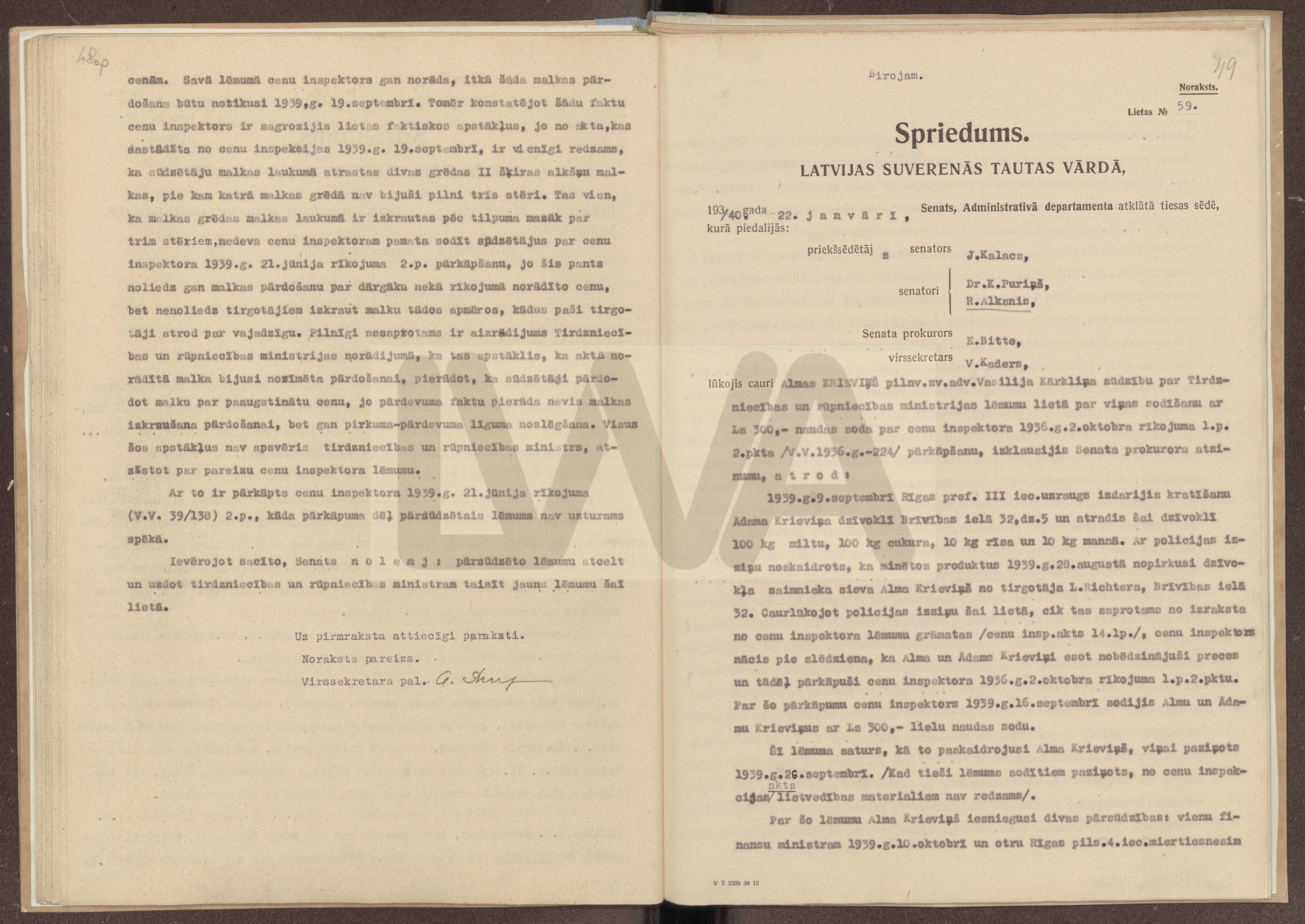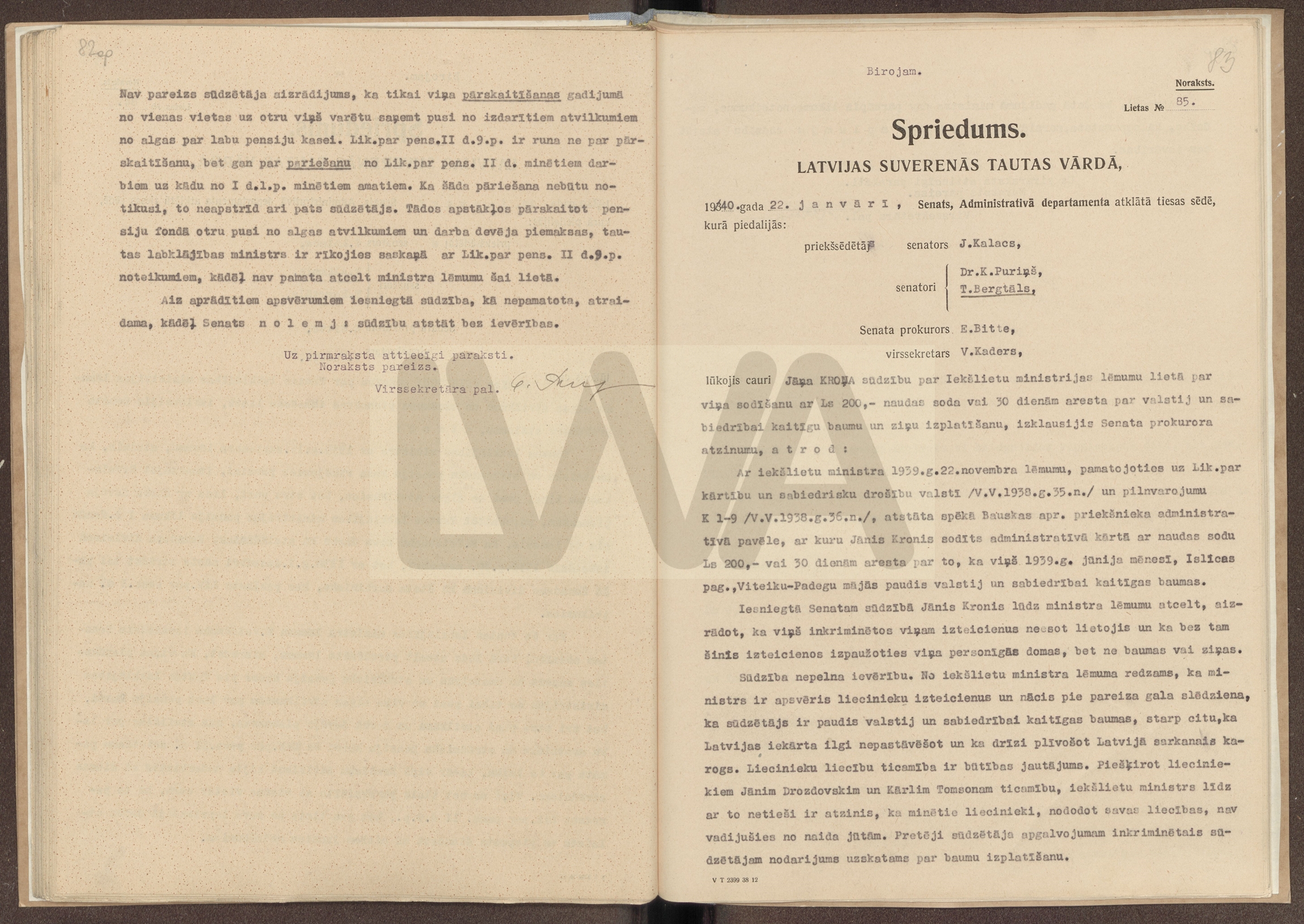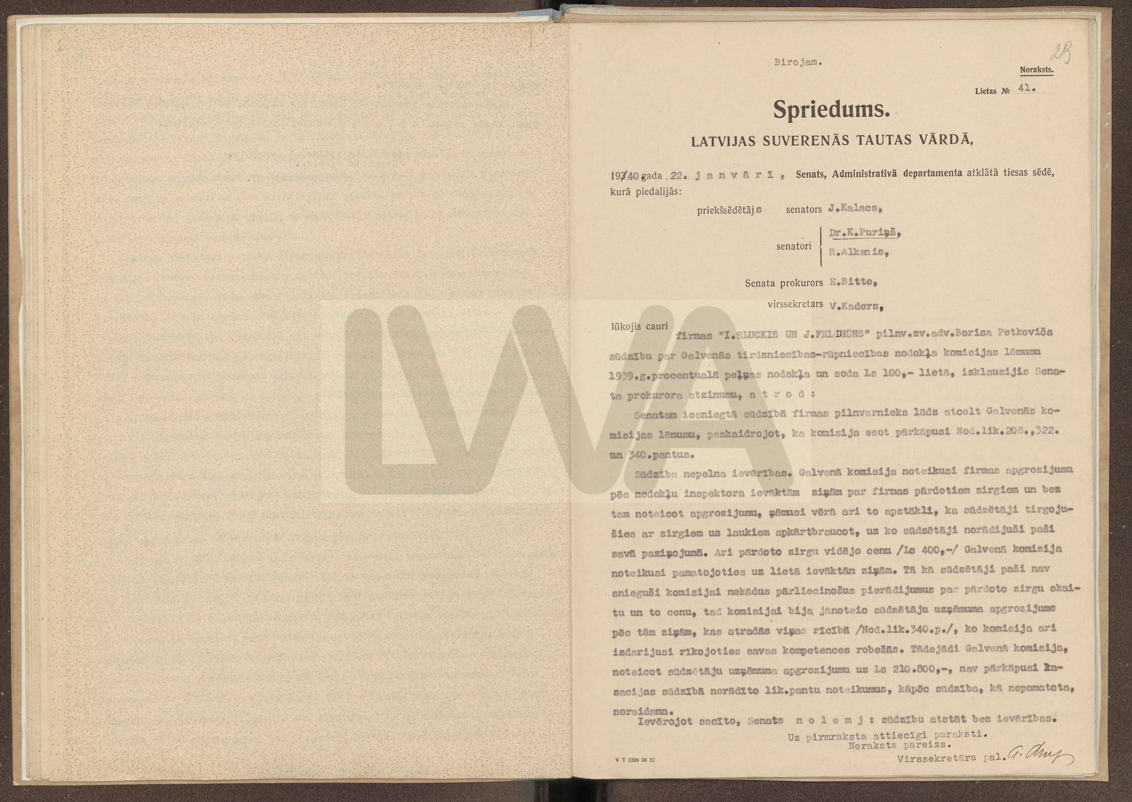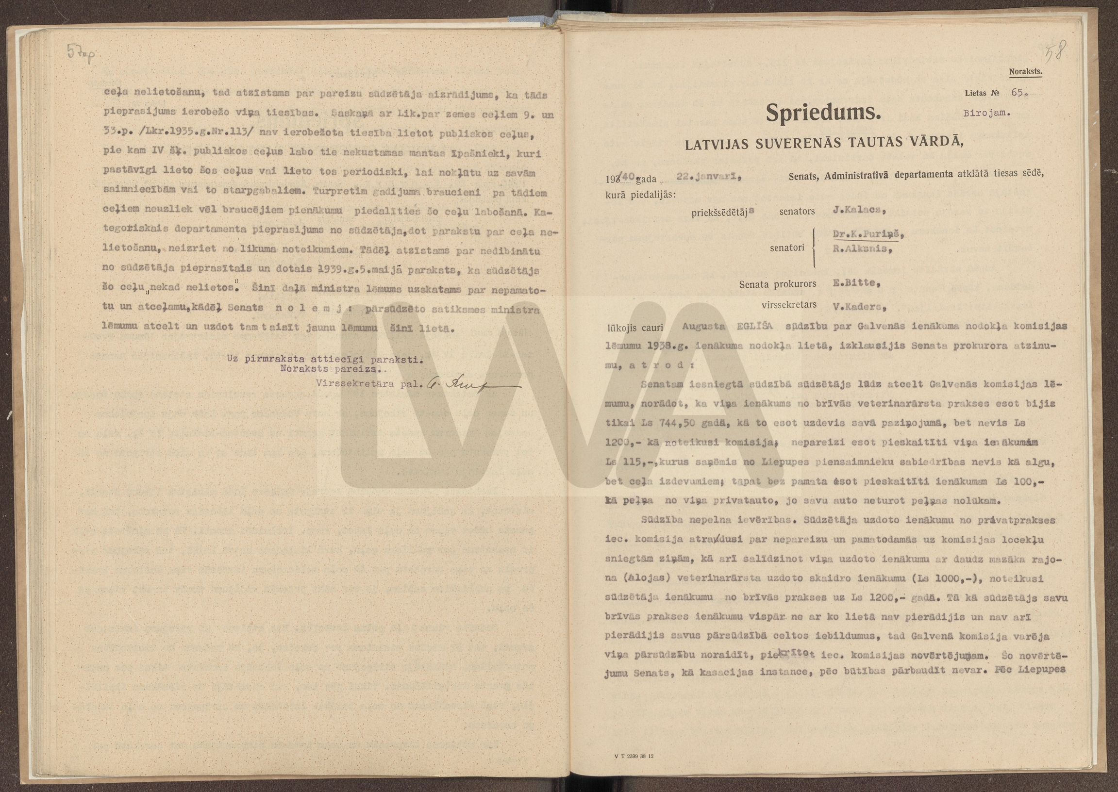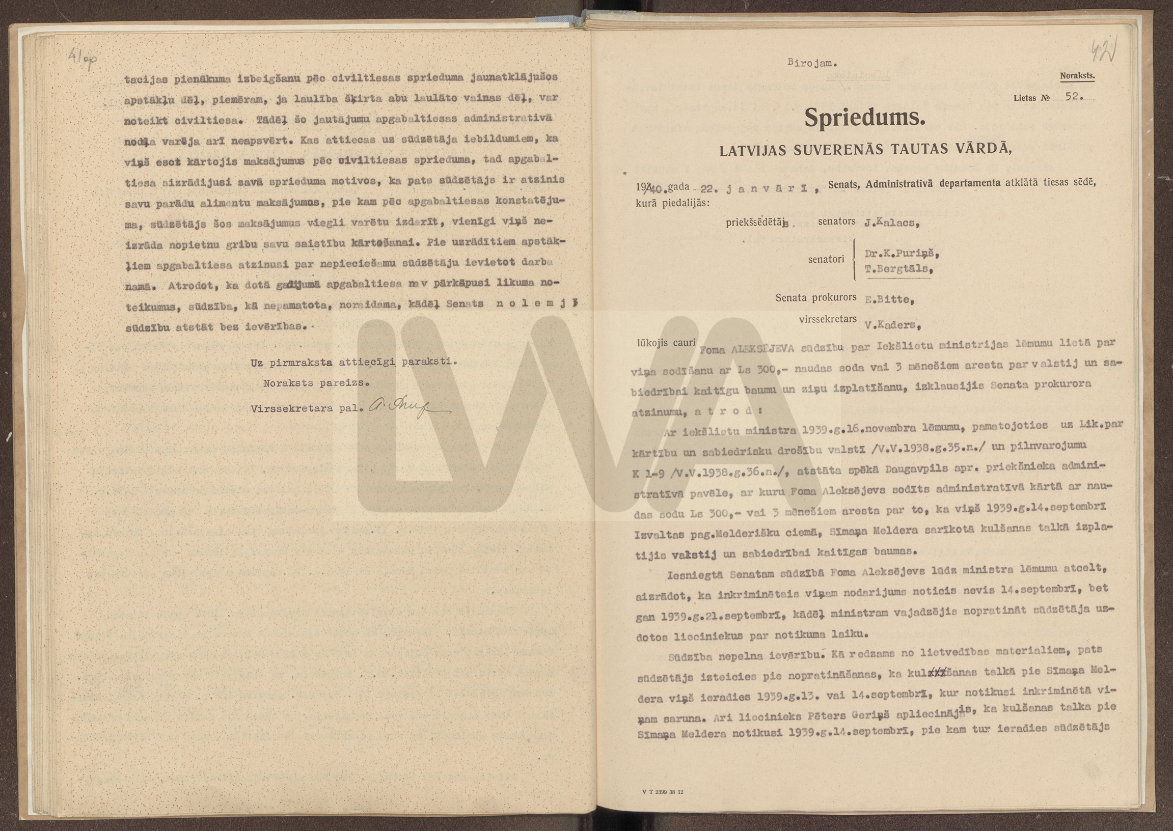 Administratīvā departamenta spriedumi 1940.g. janvāris