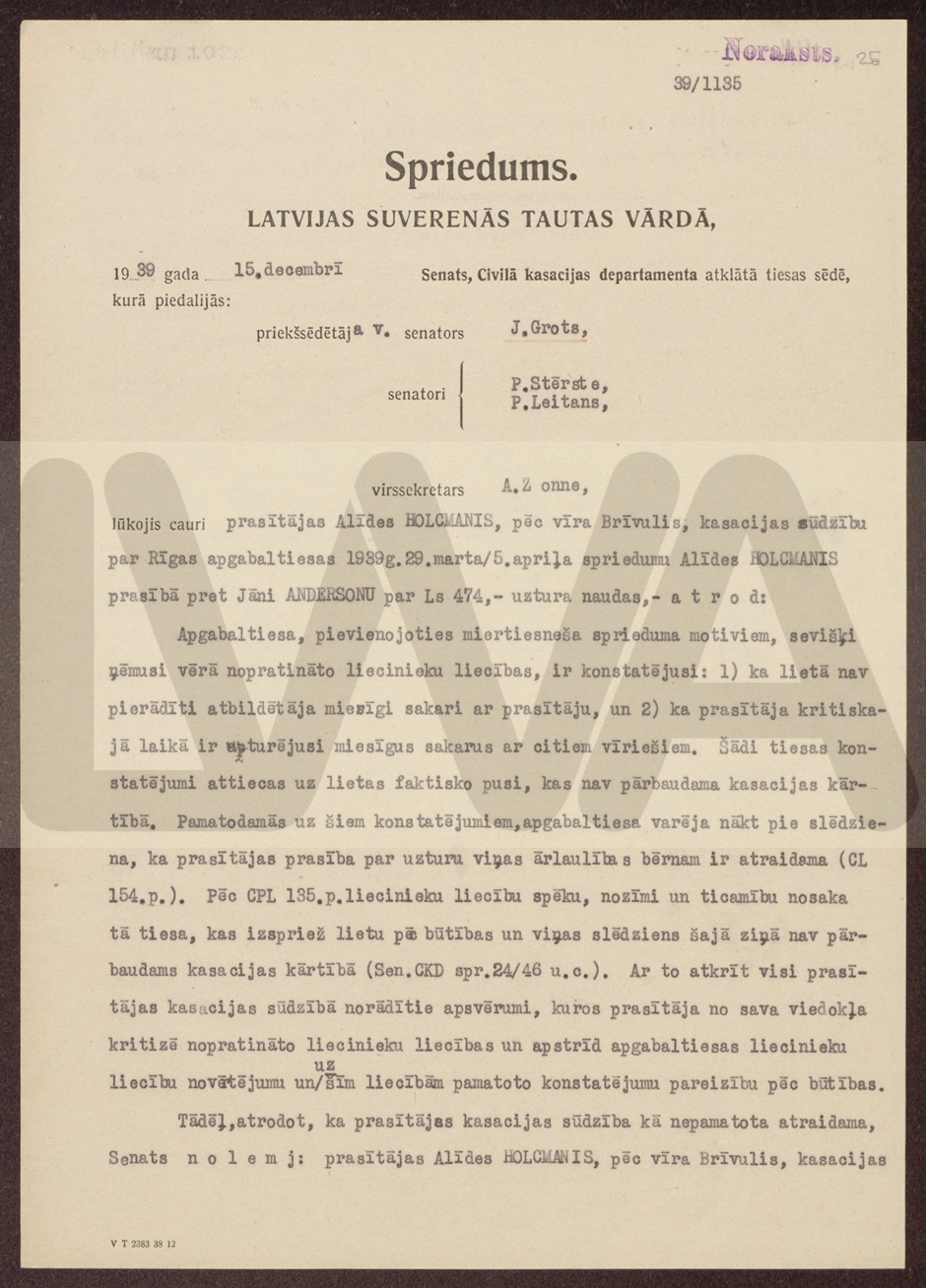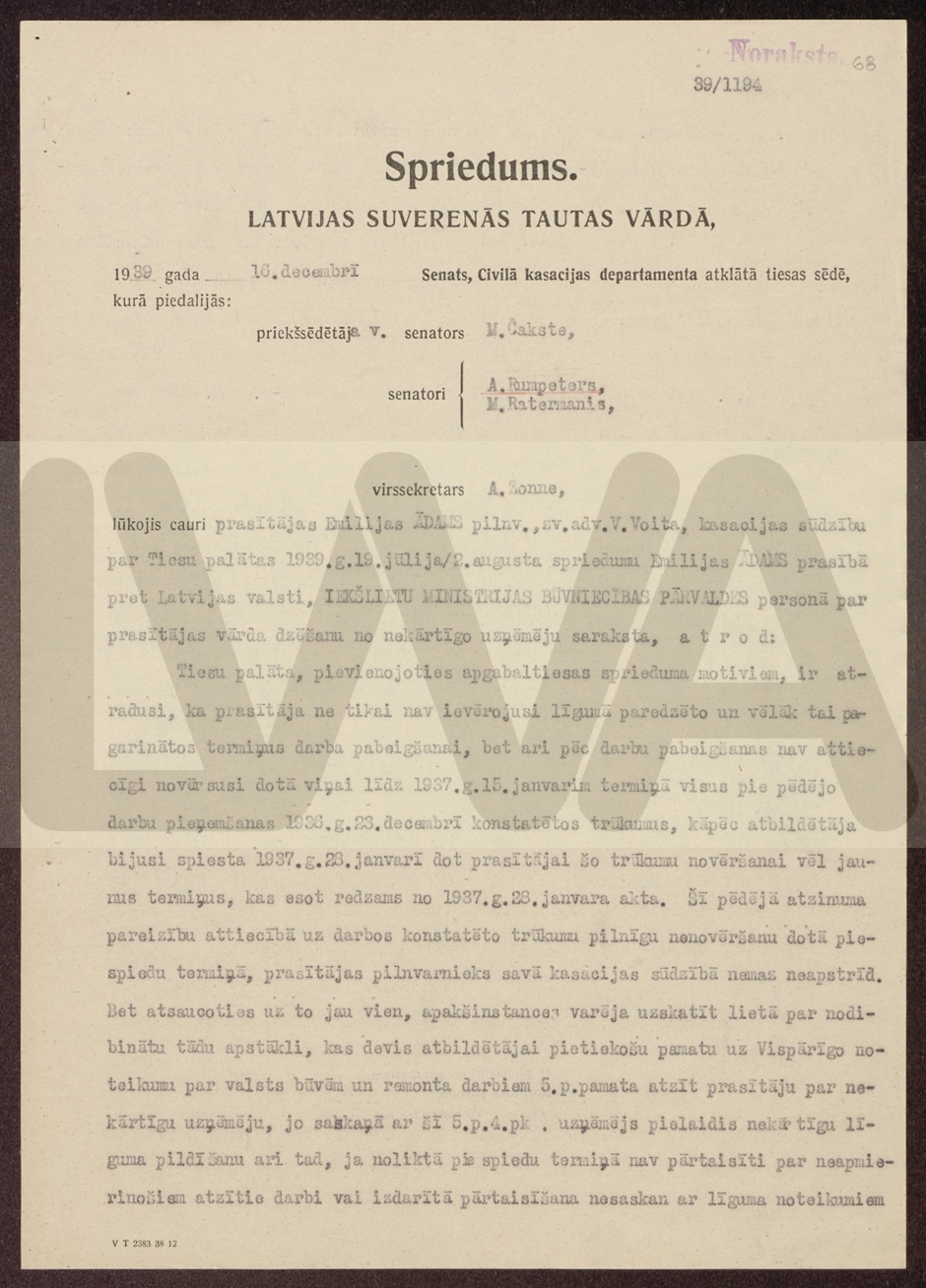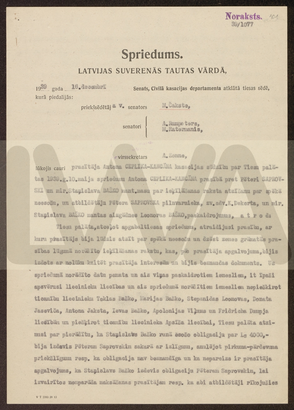 CKD spriedumi 1939.g. decembris (LVVA 1535. f. 8. apr. 30. lieta)