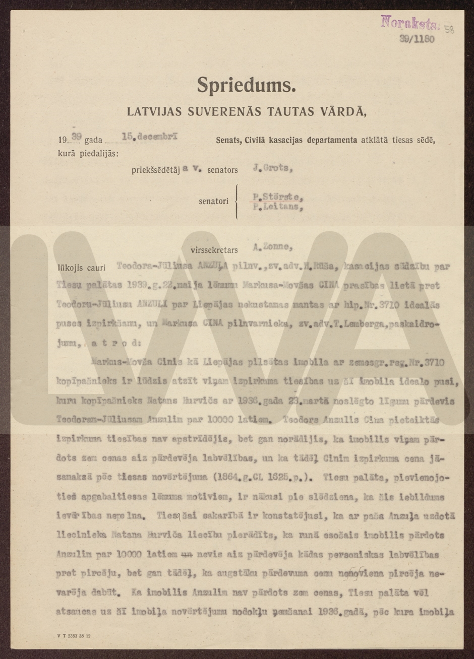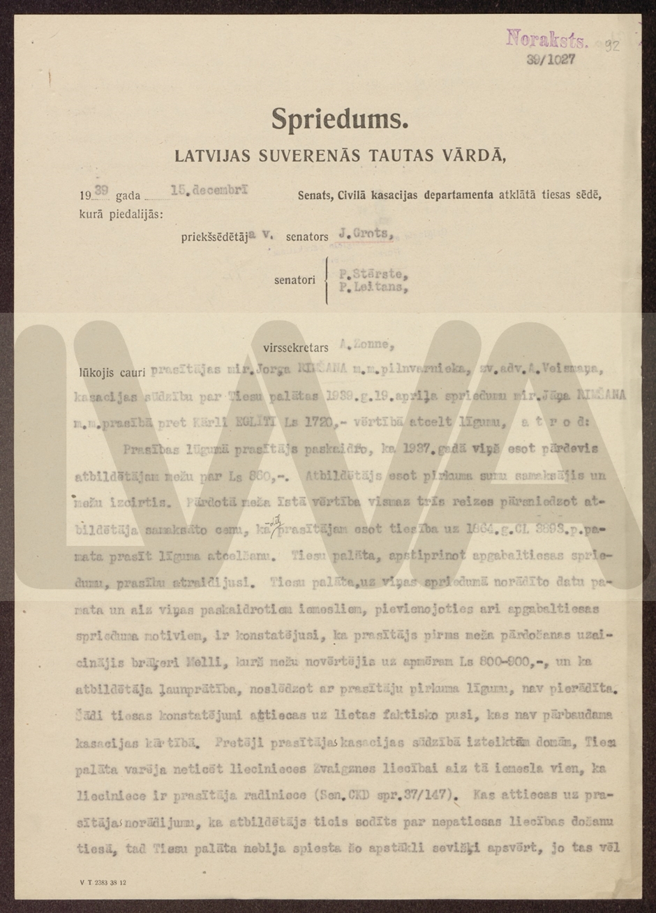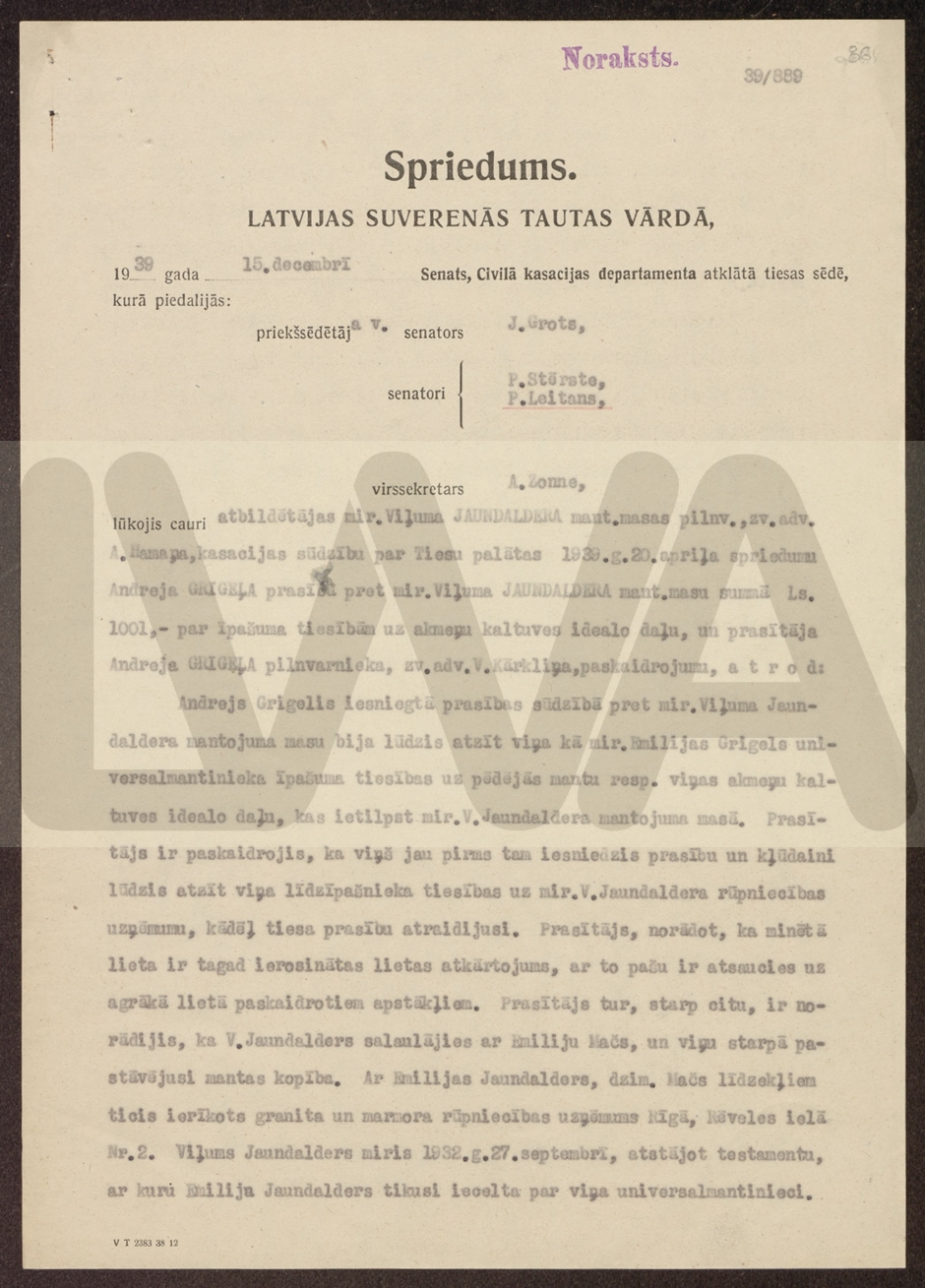 CKD spriedumi 1939.g. decembris (LVVA 1535. f. 8. apr. 30. lieta)