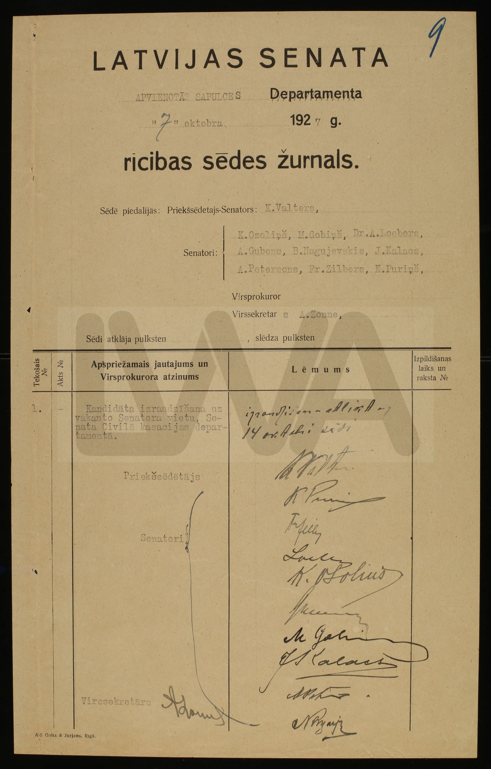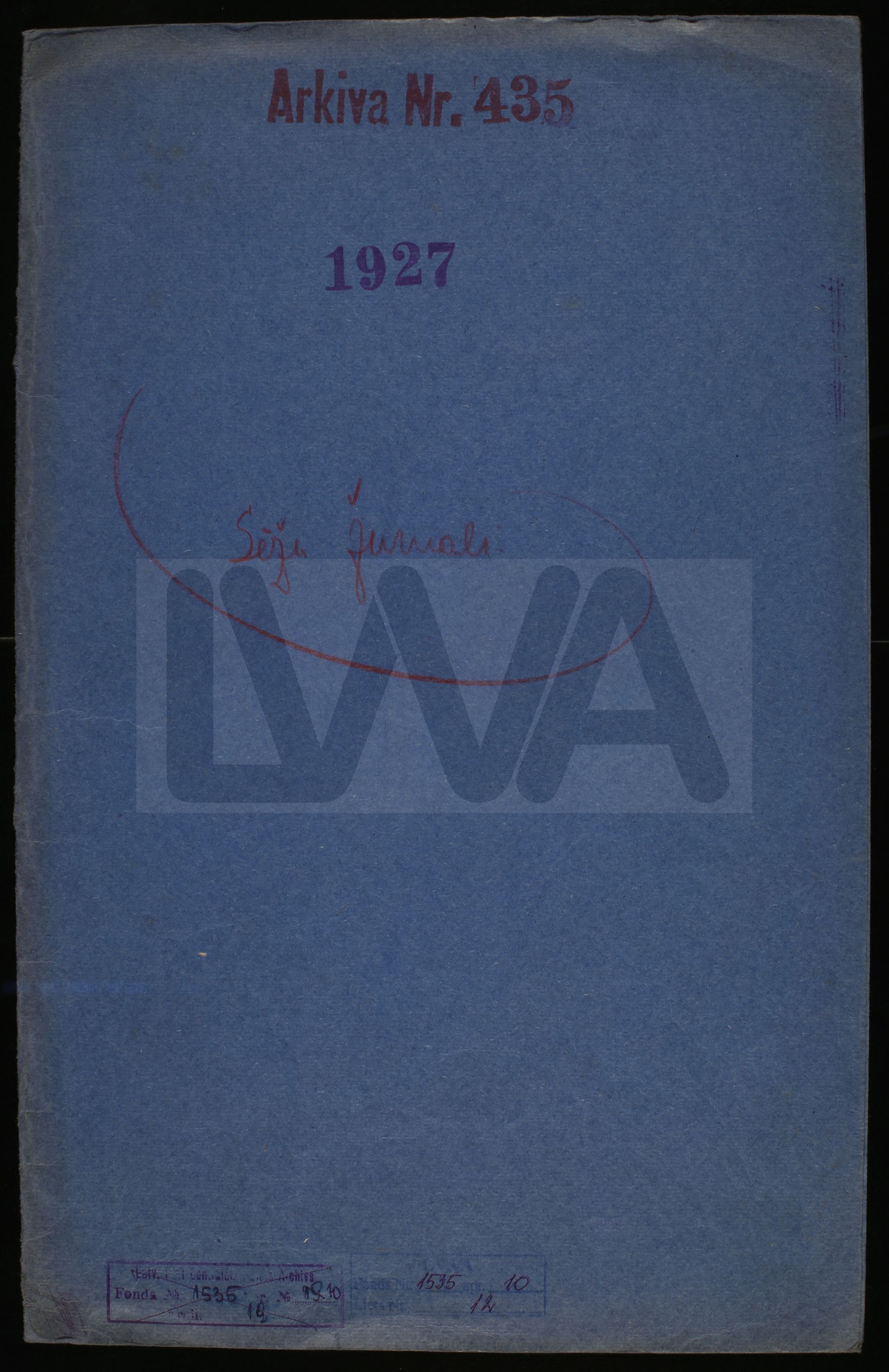 Latvijas Senāta Apvienotās Sapulces 1927. gada tiesas un rīcības sēžu žurnāli (LVVA 1535. f. 10. apr. 12. lieta)