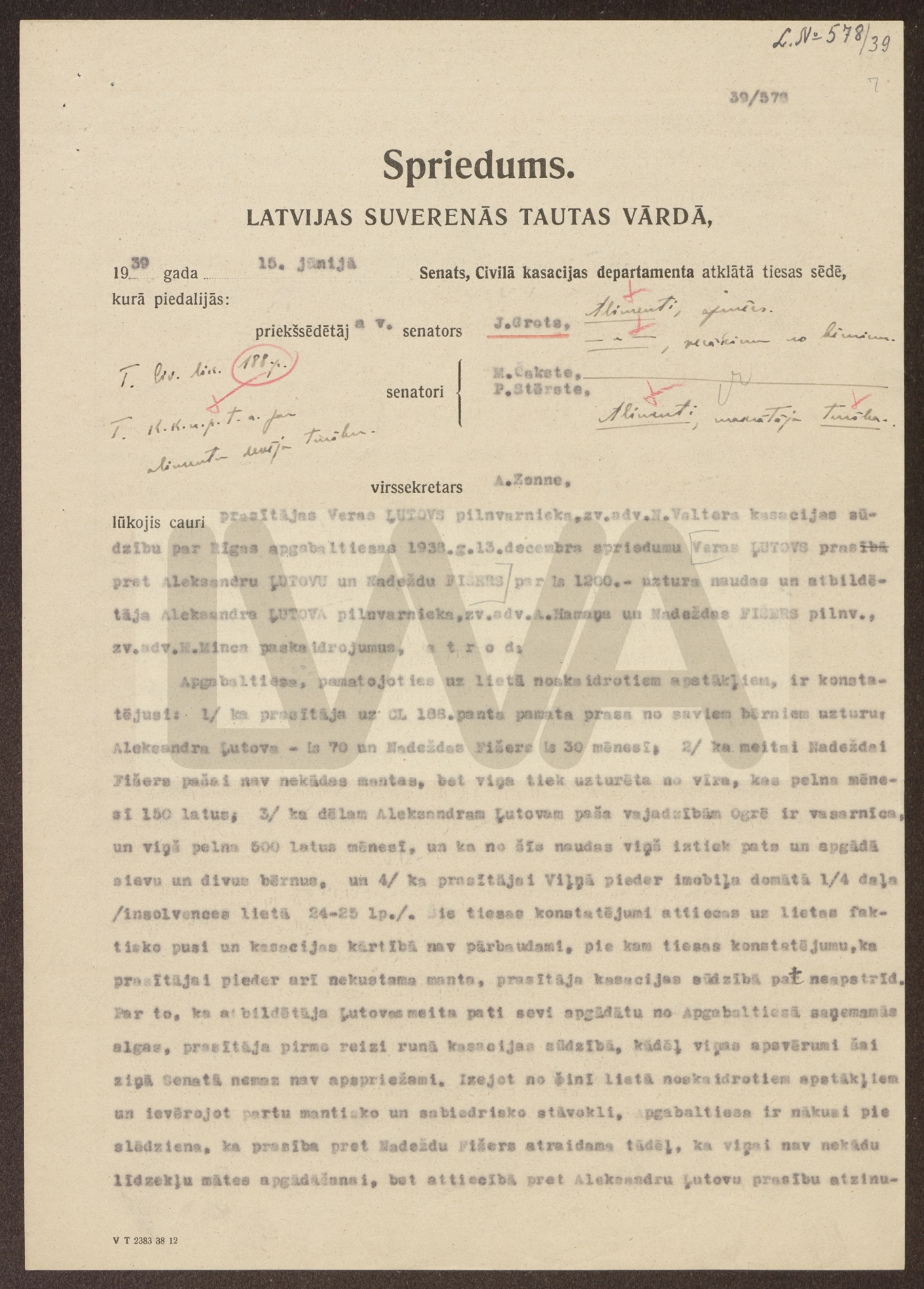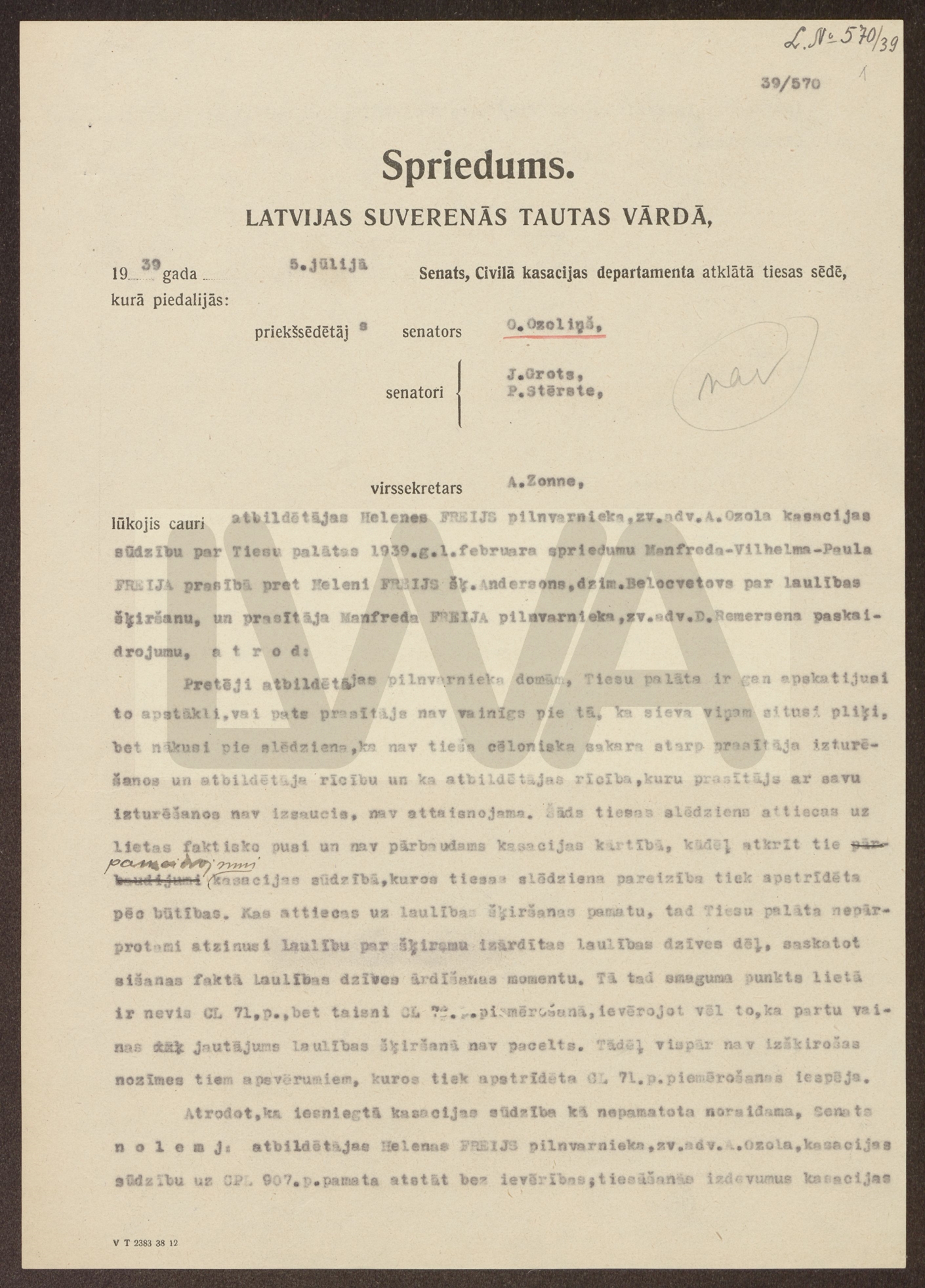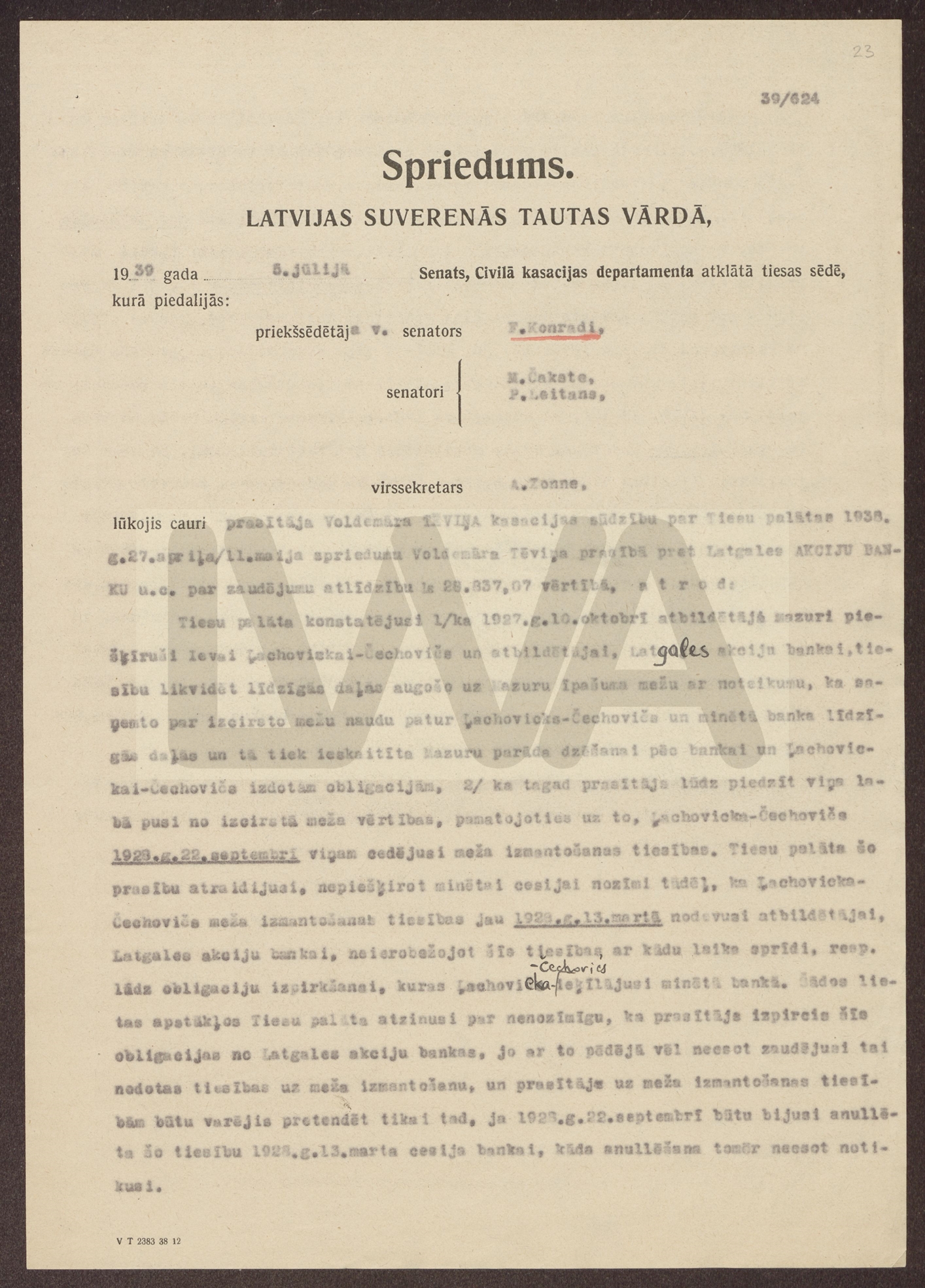 CKD spriedumi 1939.g. jūlijs (LVVA 1535. f. 8. apr. 25. lieta)