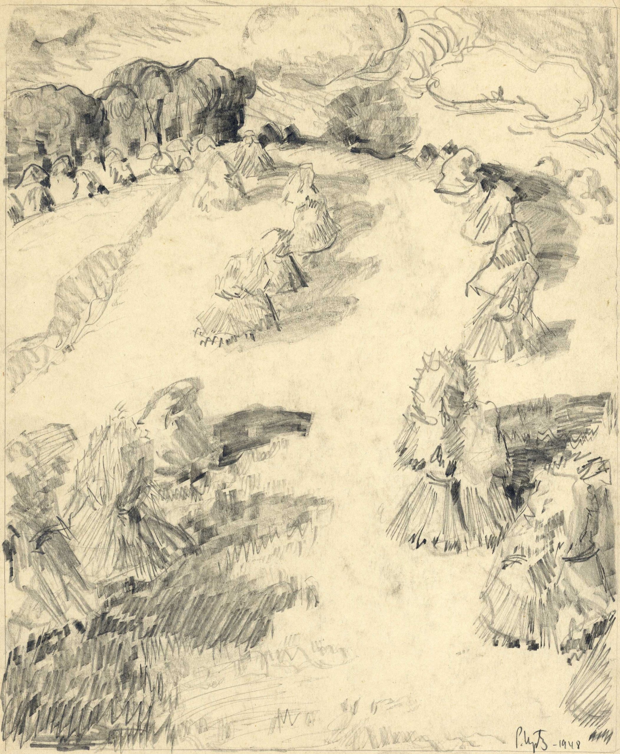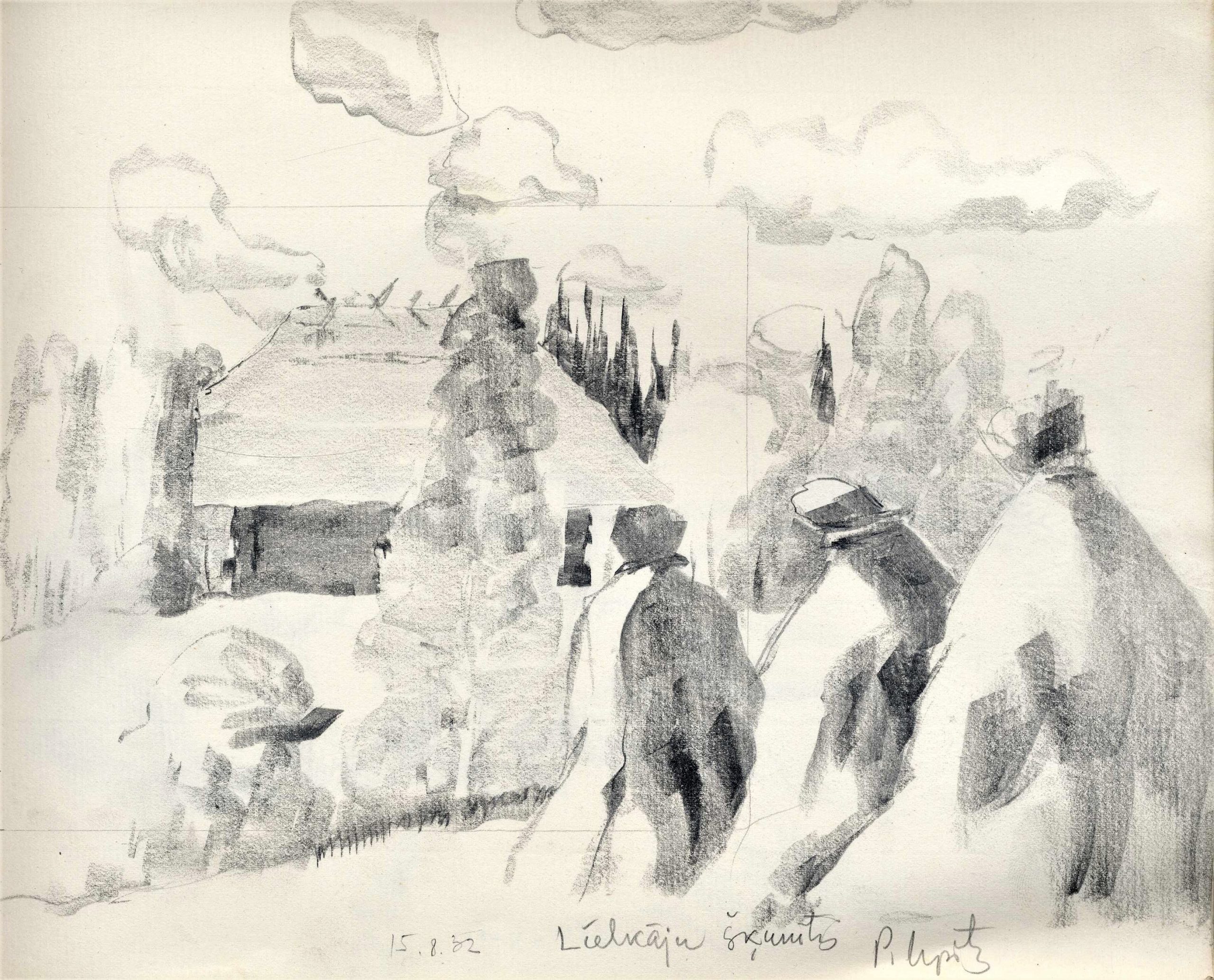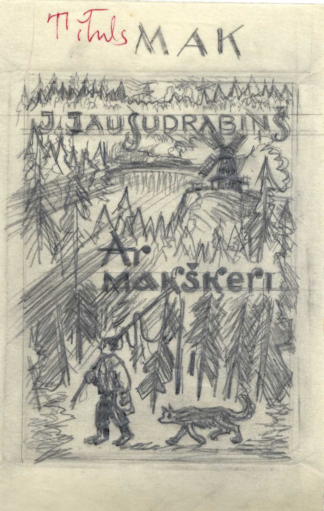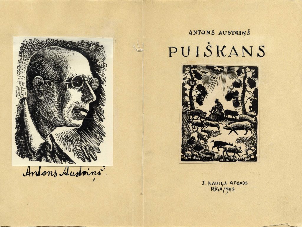 P. Upīša ilustrāciju skices A. Austriņa grāmatai “Puiškans”, 1943. gads. Avots: LNA_LVA_F1839.