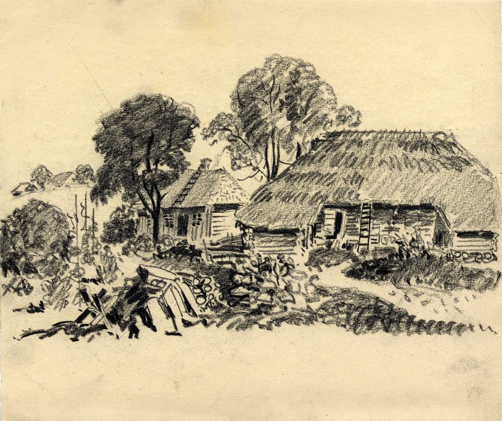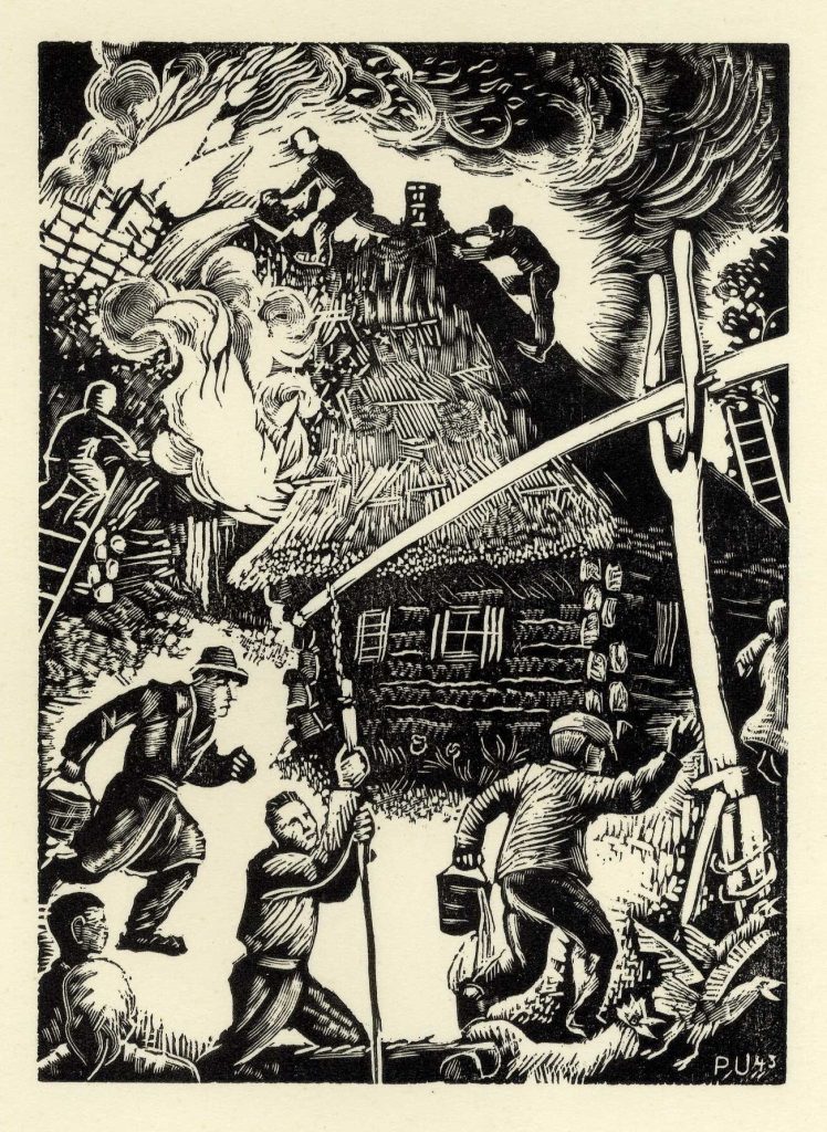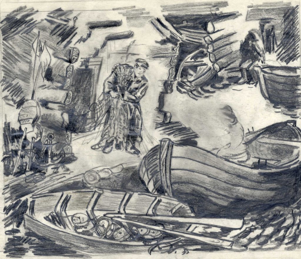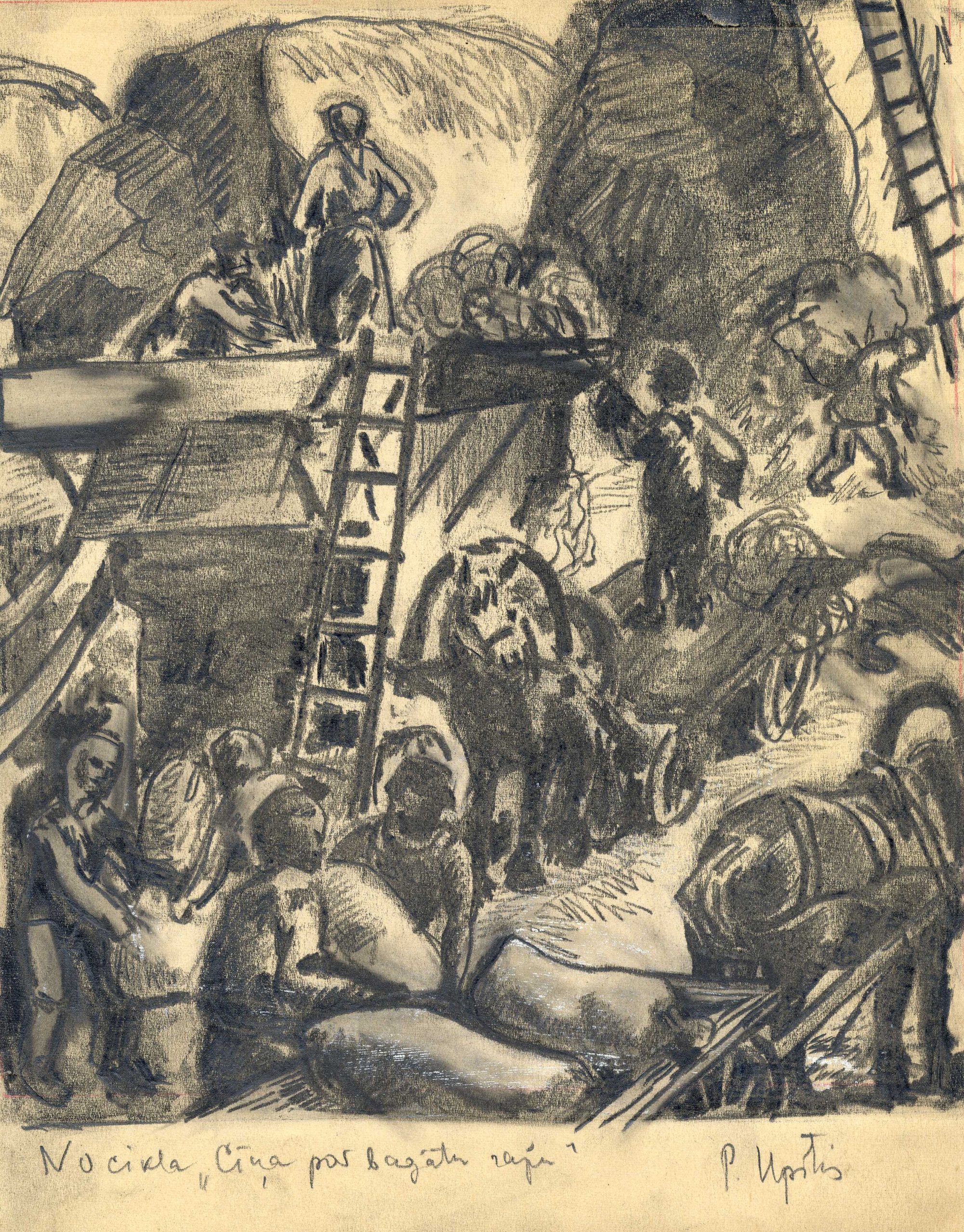 P. Upīša ilustrāciju skices A. Austriņa grāmatai “Puiškans”, 1943. gads. Avots: LNA_LVA_F1839.