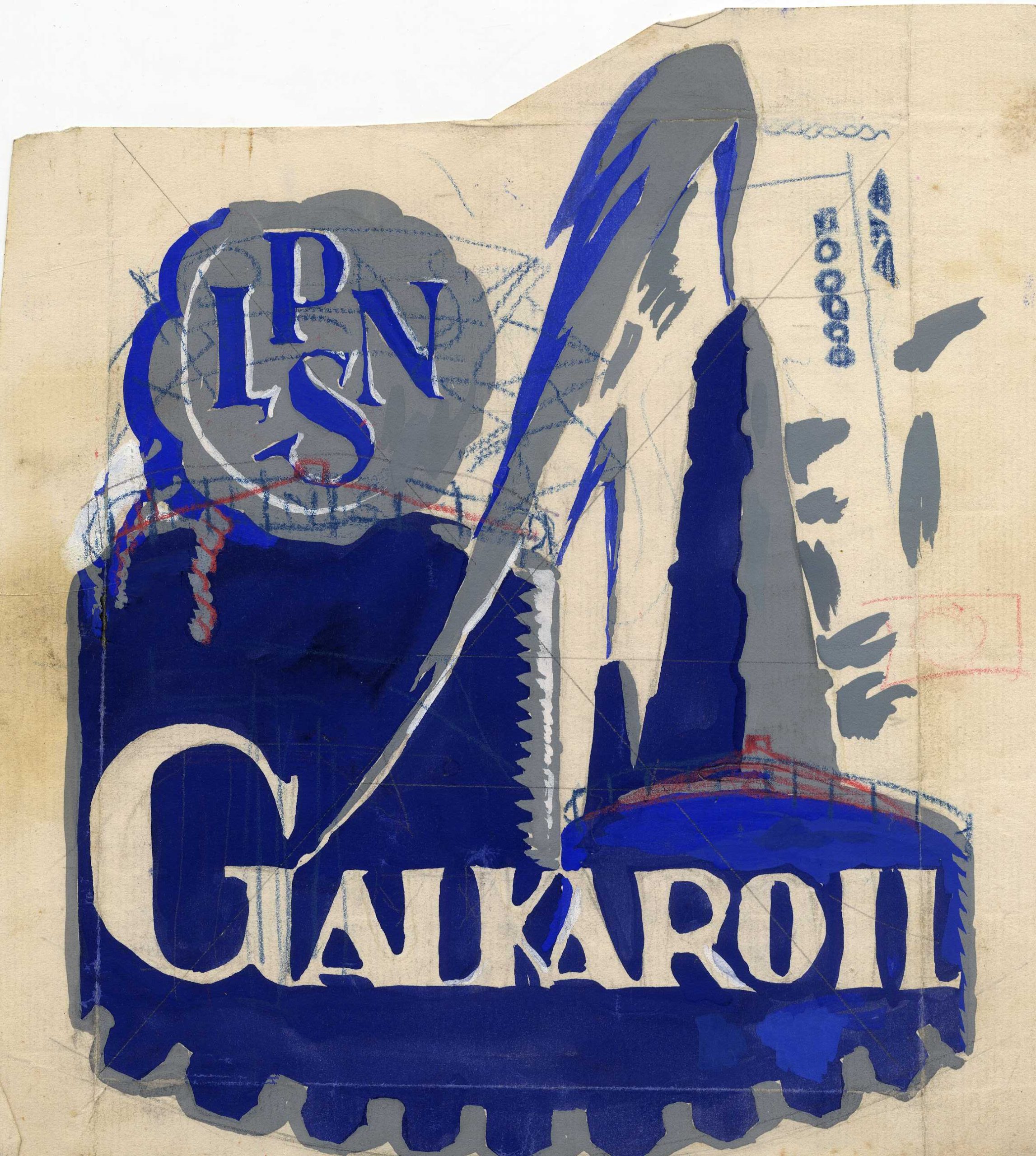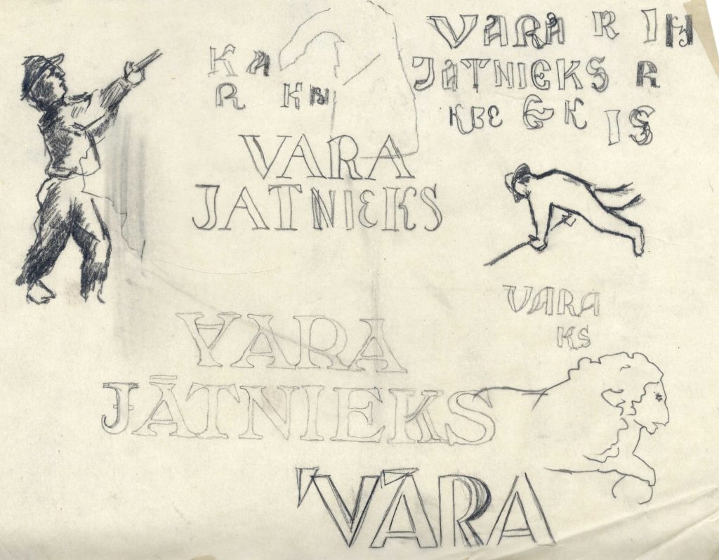 P. Upīša darinātās Jāņa Rozes grāmatu veikala, spiestuves un zīmogu darbnīcas logo skices, 1923.-1928. gads. Avots: LNA_LVA_F1839.