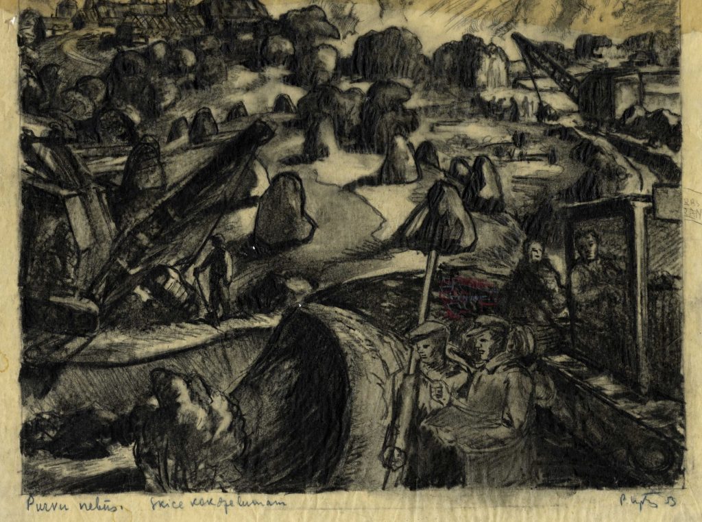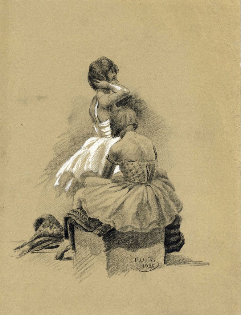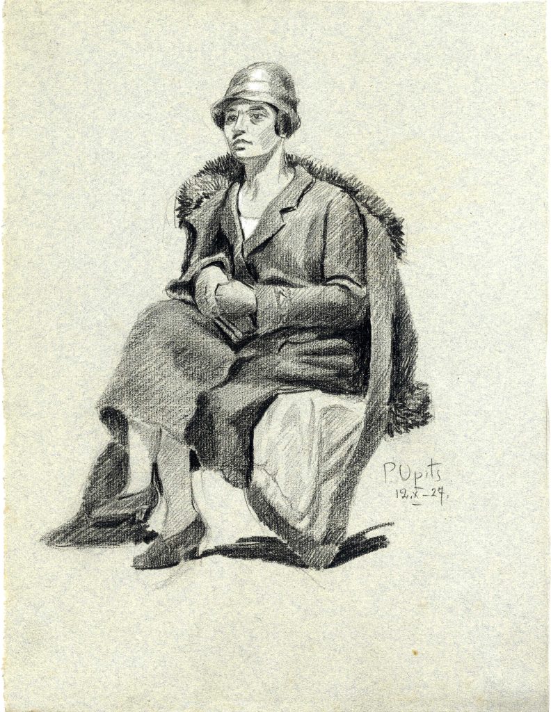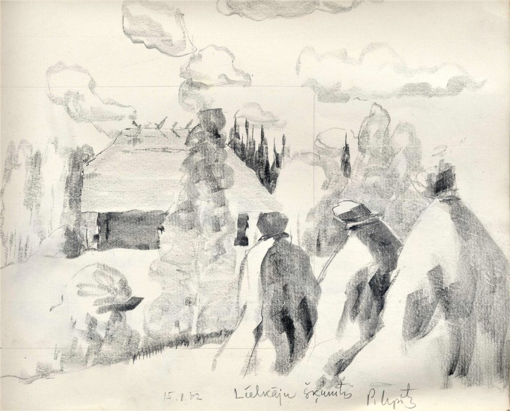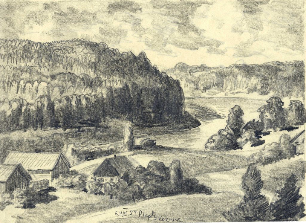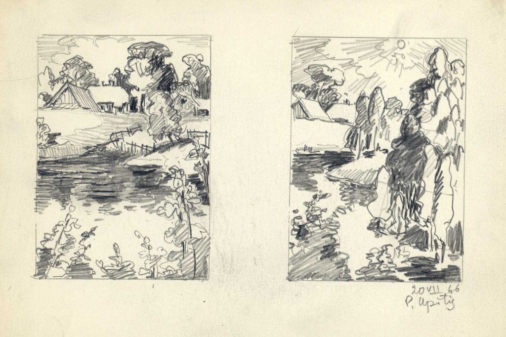 LNA Latvijas Valsts arhīva glabāšanā nodotas P. Upīša darināto dažādu grafikas ciklu skices. 20. gs. 50.-60. gadi. Avots: LNA_LVA_F1839.
