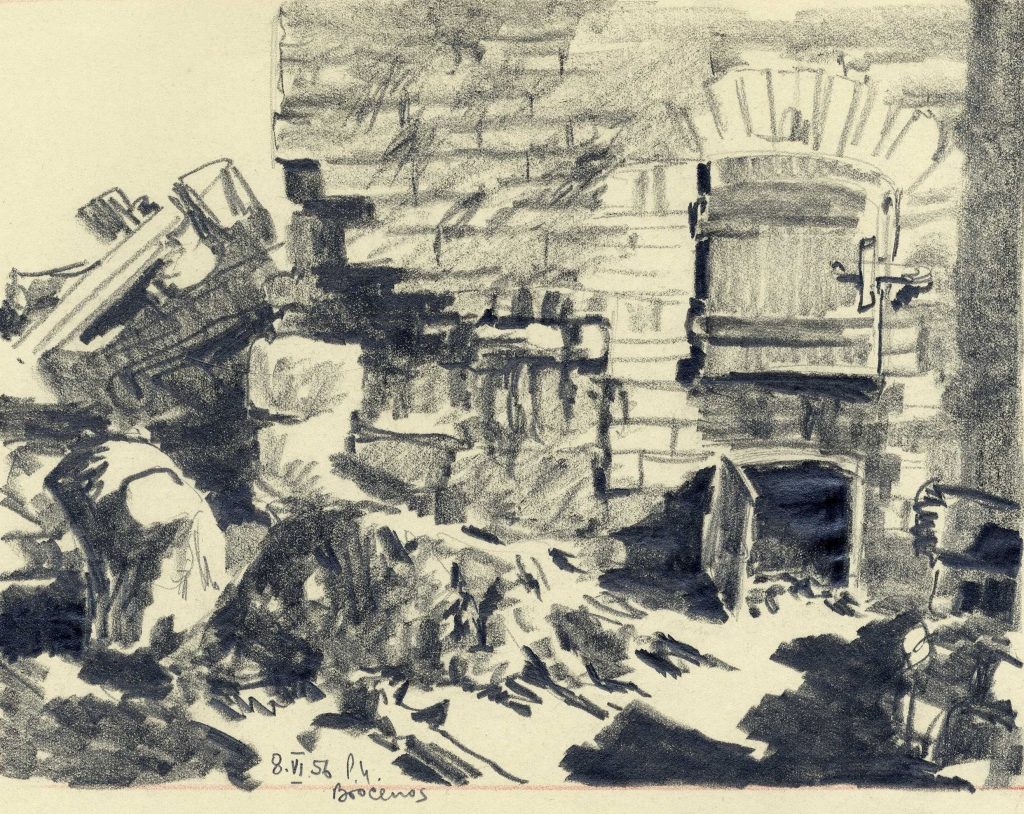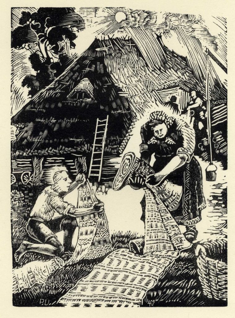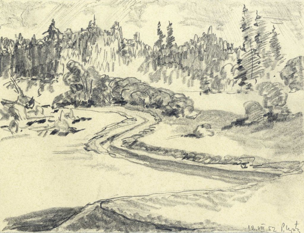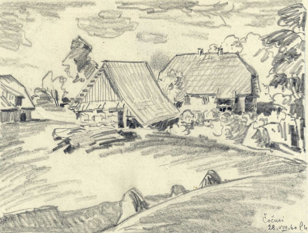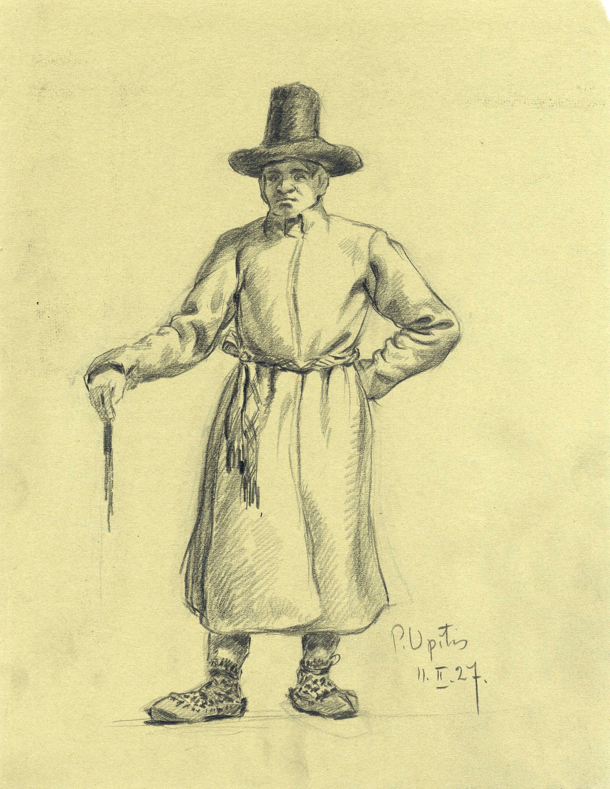 LNA Latvijas Valsts arhīva glabāšanā nodotas P. Upīša darināto dažādu grafikas ciklu skices. 20. gs. 50.-60. gadi. Avots: LNA_LVA_F1839.